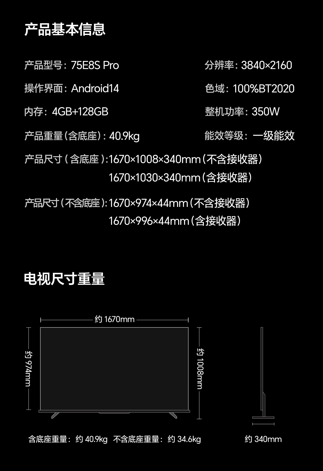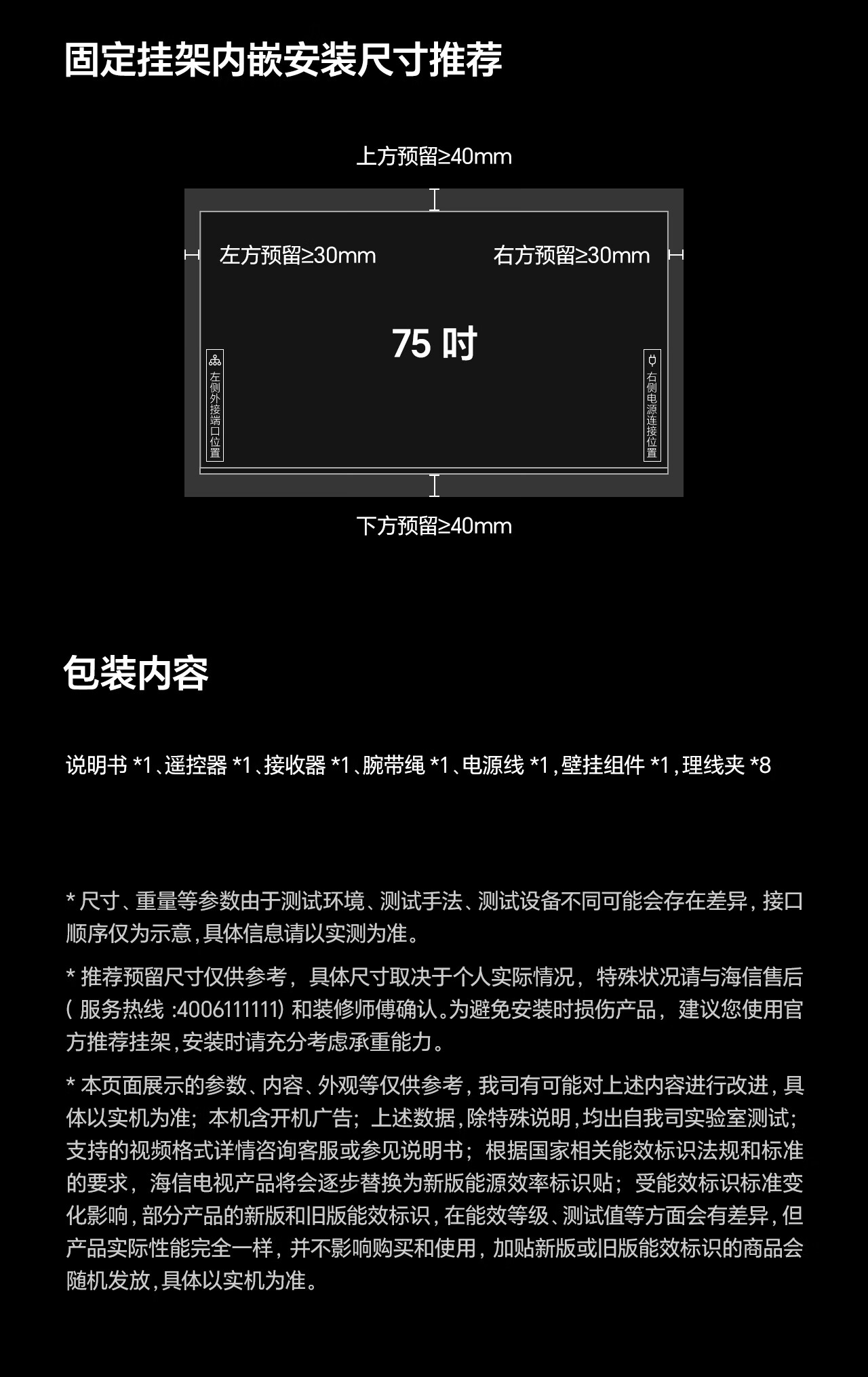 海信RGB-MiniLED电视 E8S Pro 75吋 4200分区 H7芯片 黑曜屏Ultra 170Hz高刷 国家补贴 世界杯指定电视