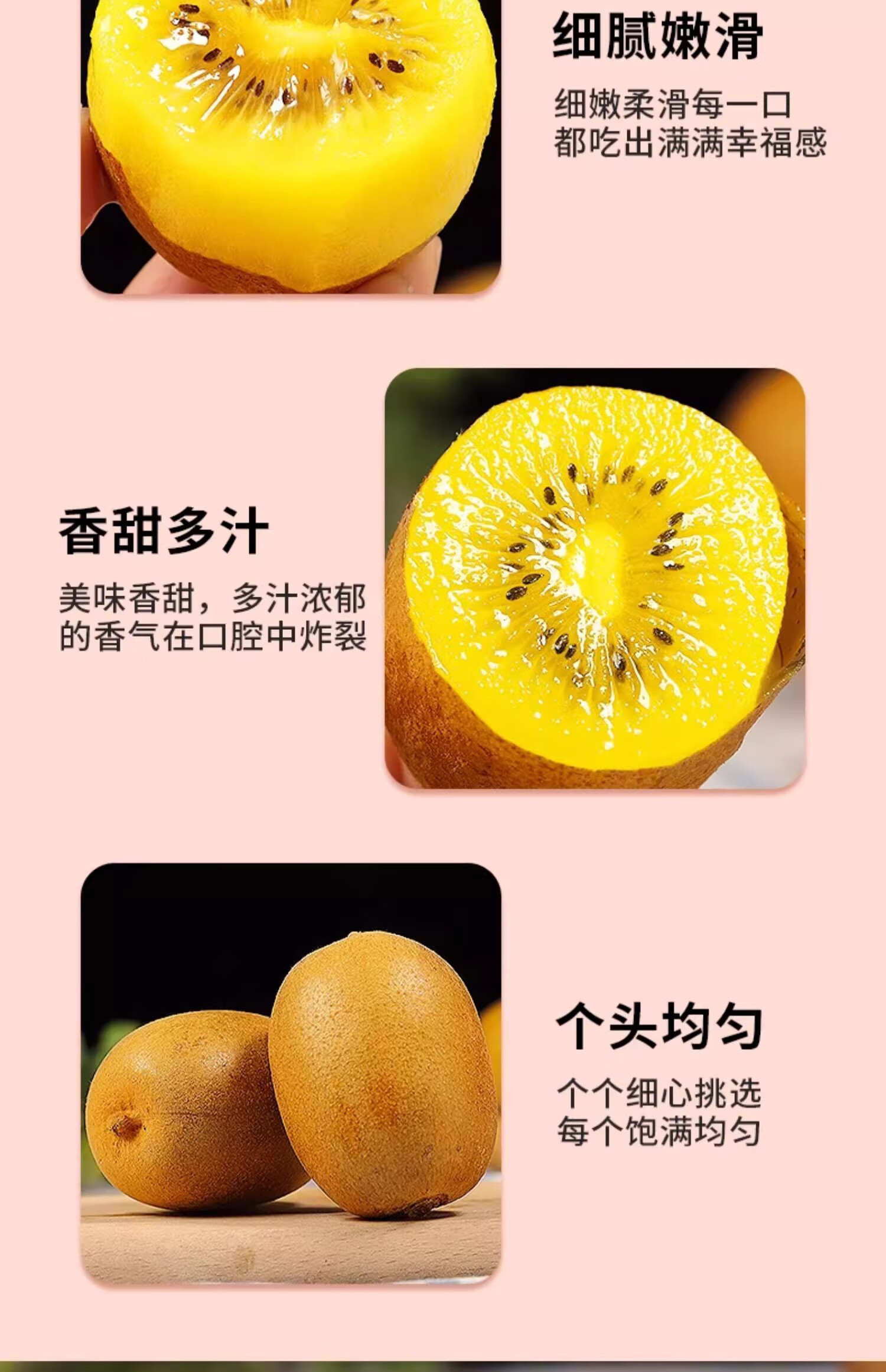 草帽奶奶【精选】黄心猕猴桃水果金奇异果金果新鲜弥猕桃迷糊桃 12枚单果50-70g