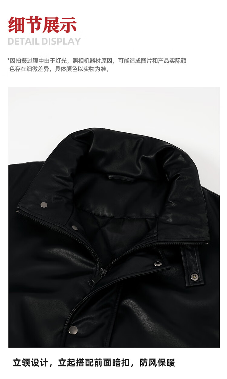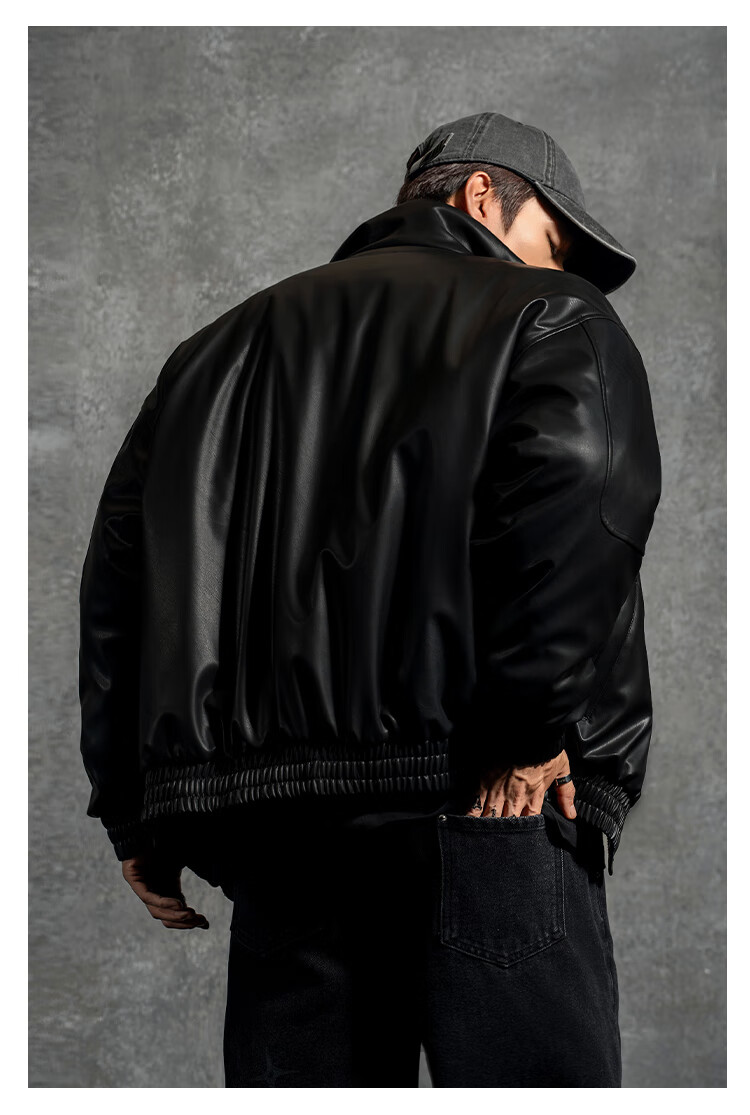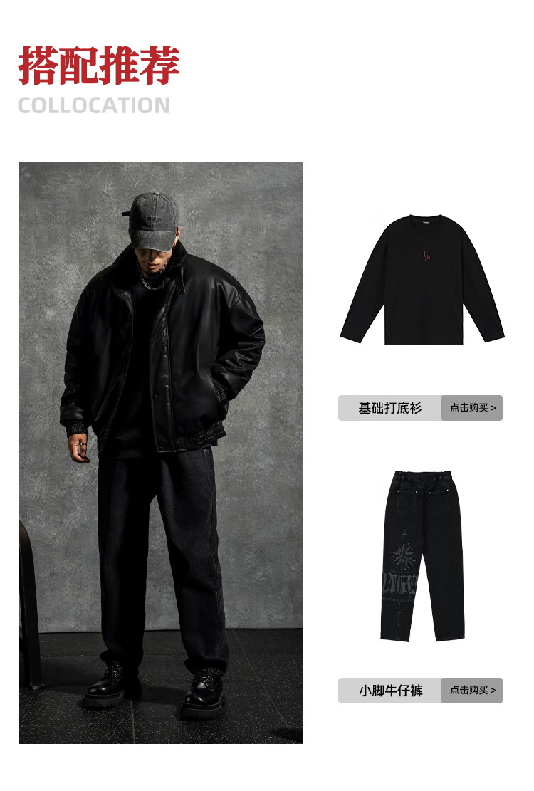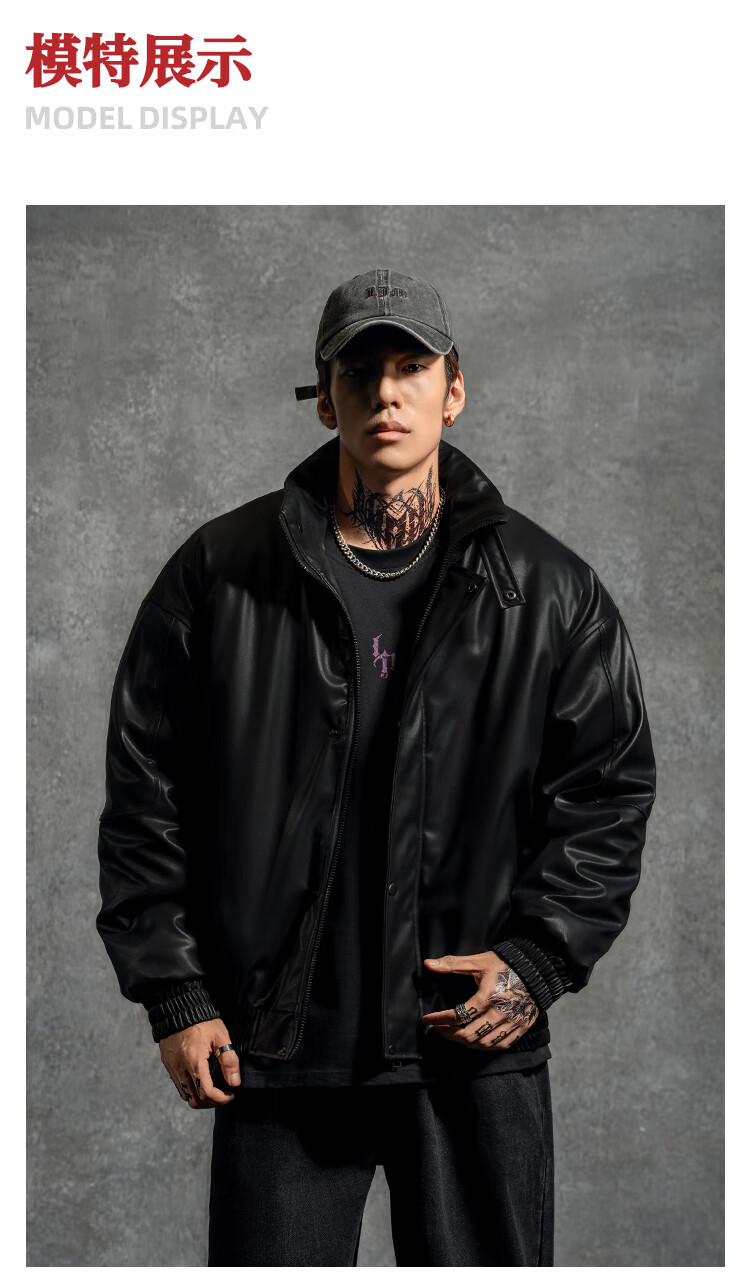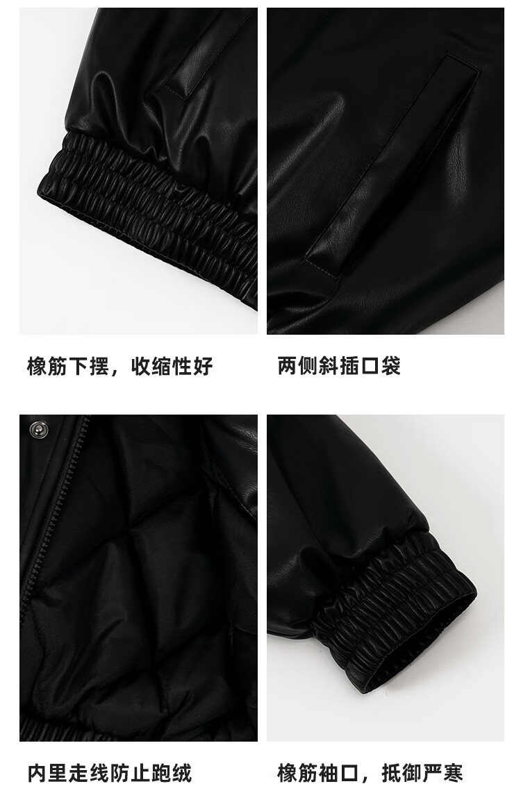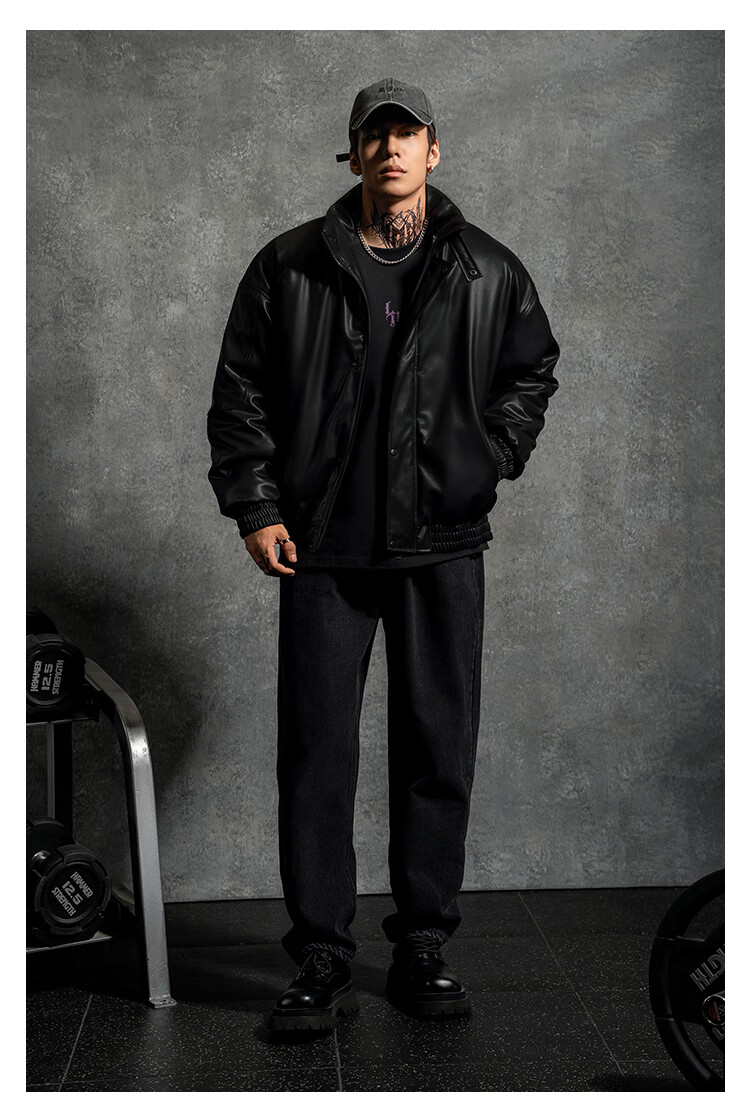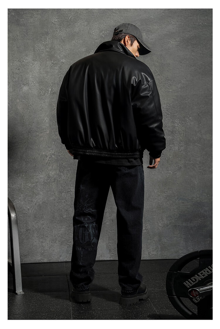 鹿家门新款宽松大码保暖皮夹克棉衣百搭运动健身PU皮棉服秋冬男 黑色(棉服) (尺码偏小建议拍大一码) 2XL (推荐180-220斤)