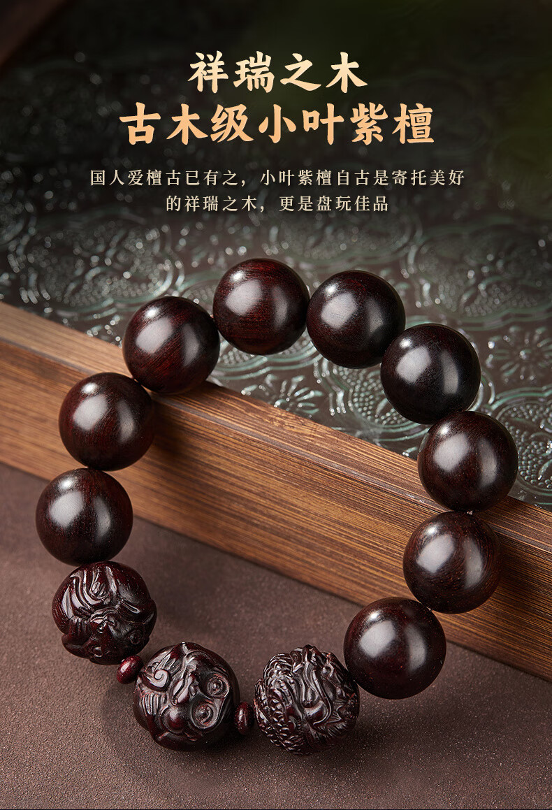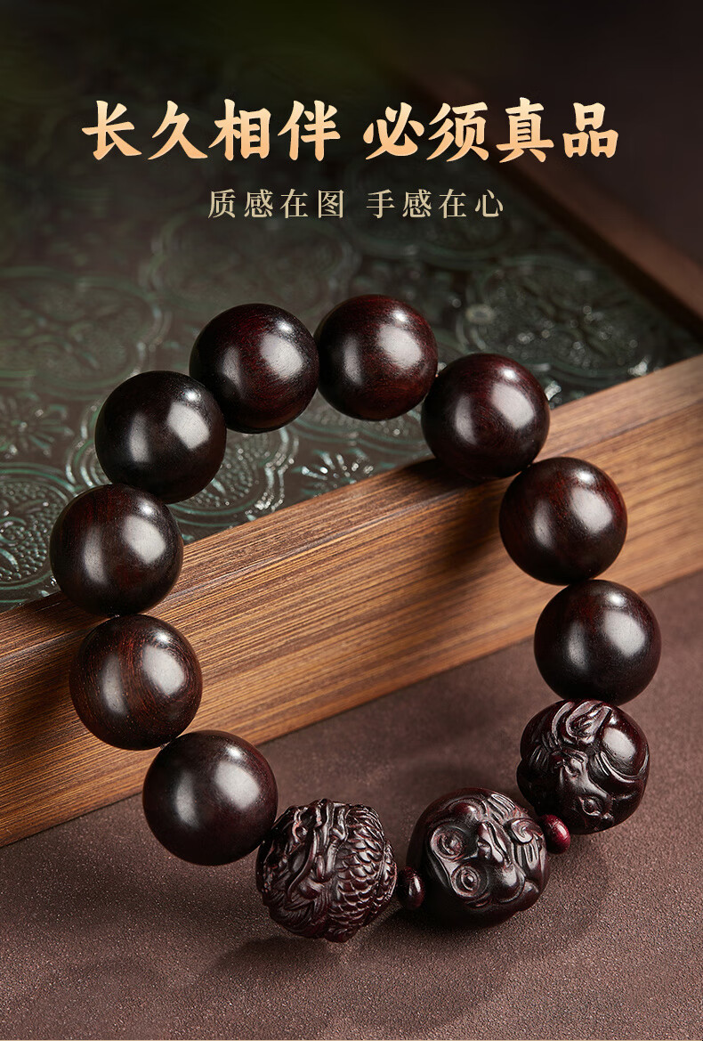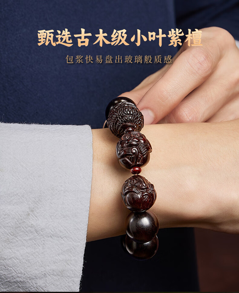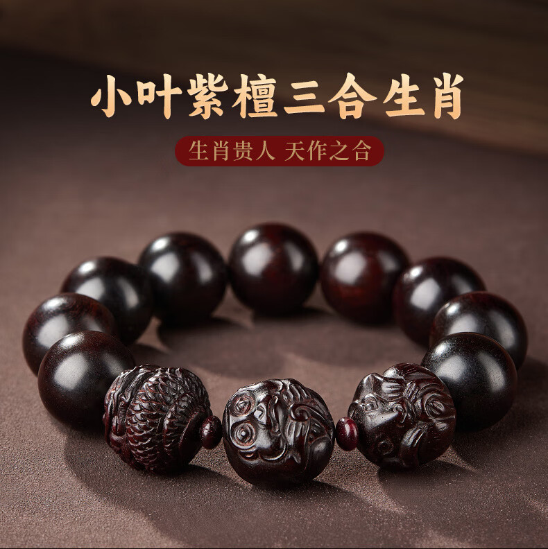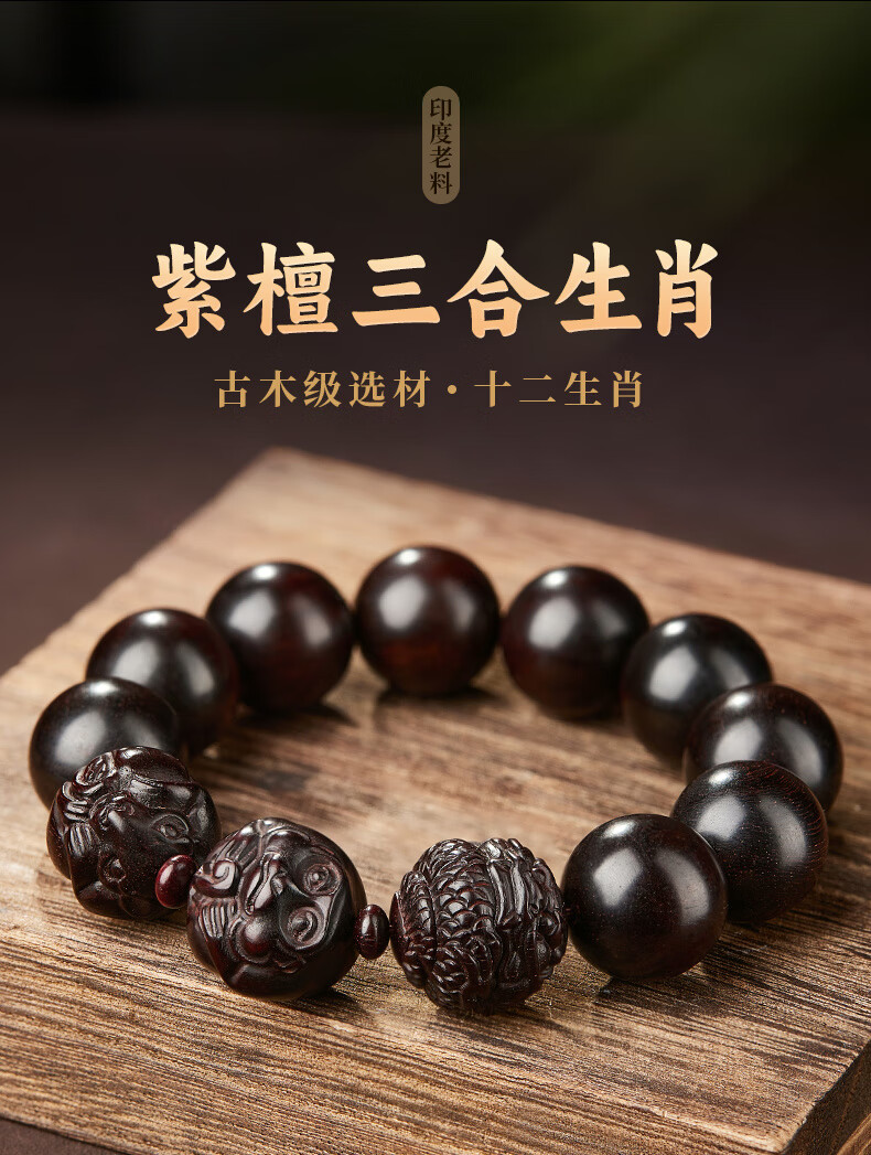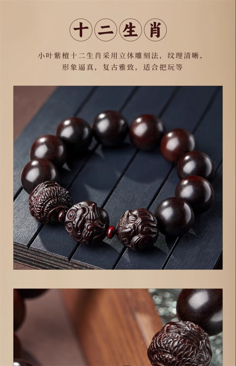 罗梅达尔小叶紫檀手串男十二生肖三合大颗文玩檀香木佛珠手串手链生日礼物 【属龙】吉祥三合小叶紫檀手串