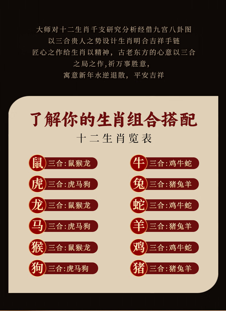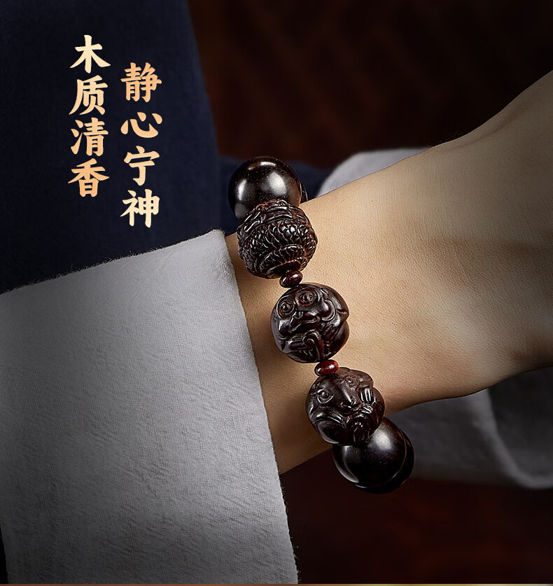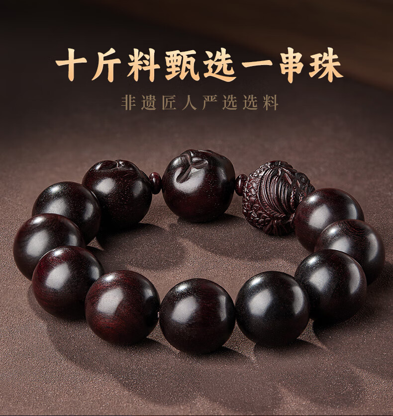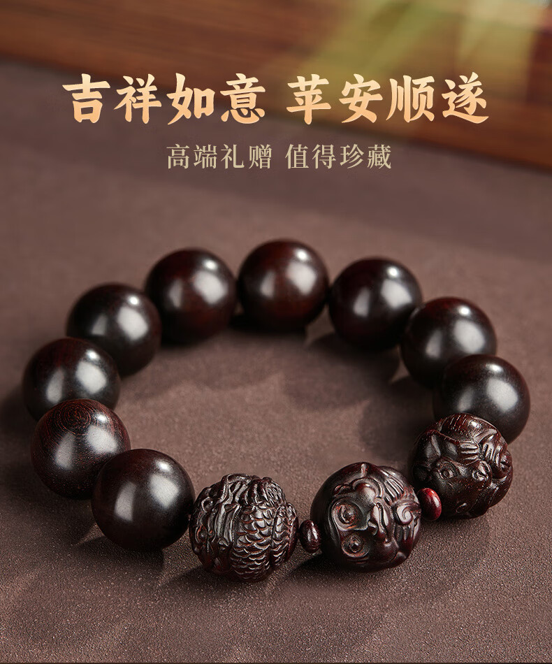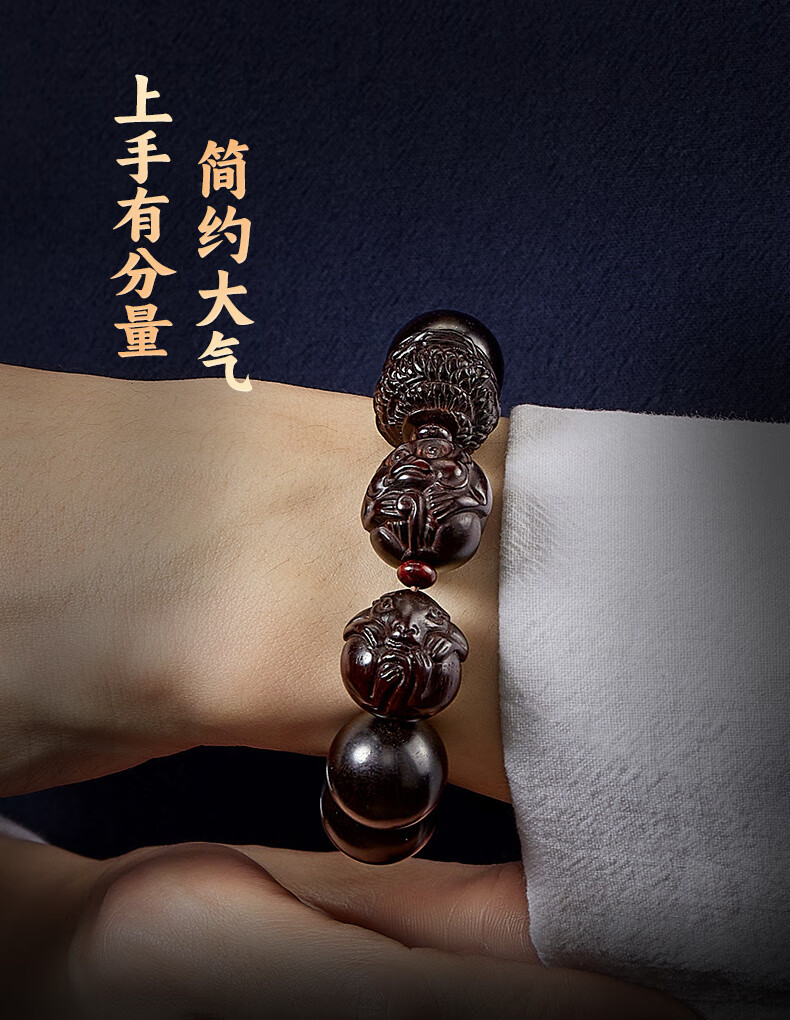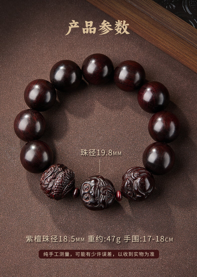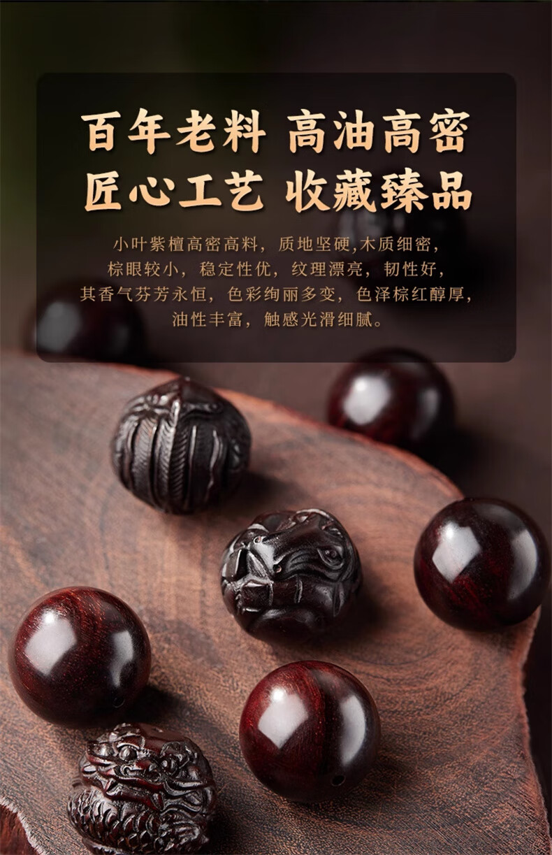 罗梅达尔小叶紫檀手串男十二生肖三合大颗文玩檀香木佛珠手串手链生日礼物 【属龙】吉祥三合小叶紫檀手串