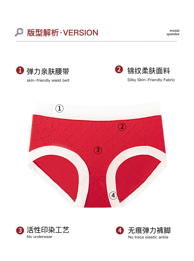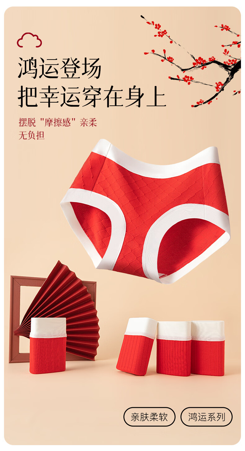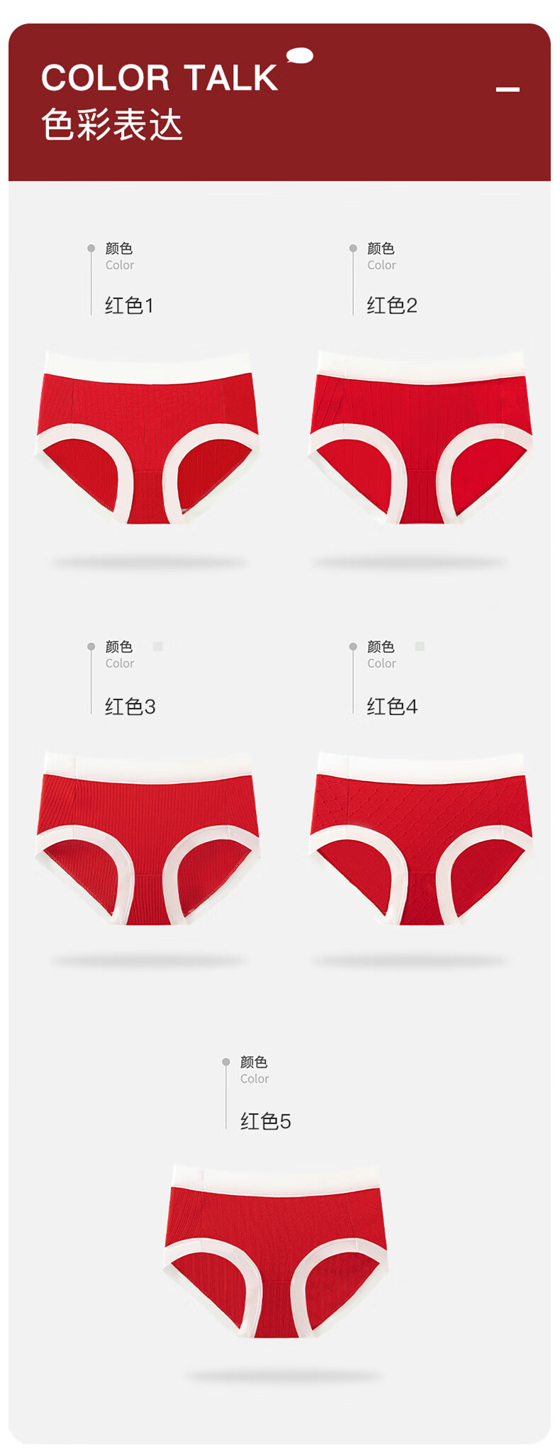 都市丽人鸿运本命年红色内裤女7A全棉抑菌底档柔软舒适高弹无痕中腰短裤 红色1号+红色2号+红色3号 3条 XL 建议【110-130】