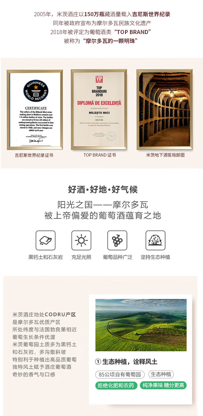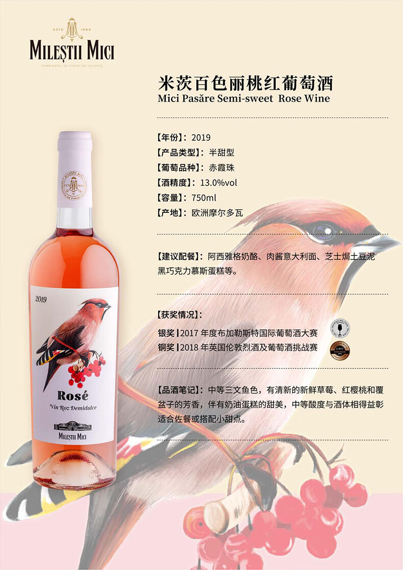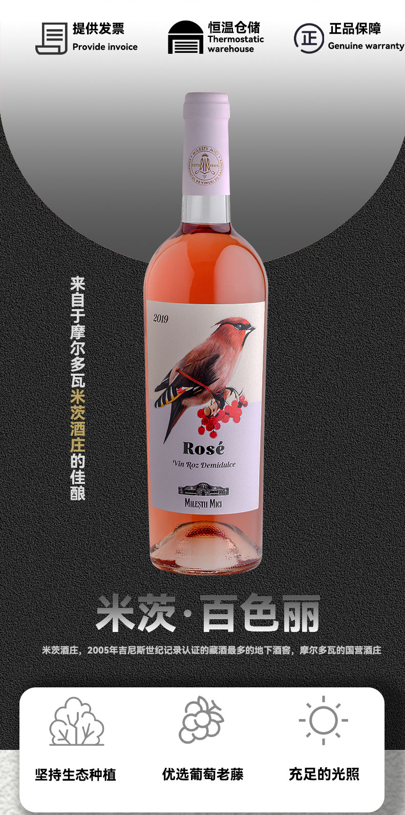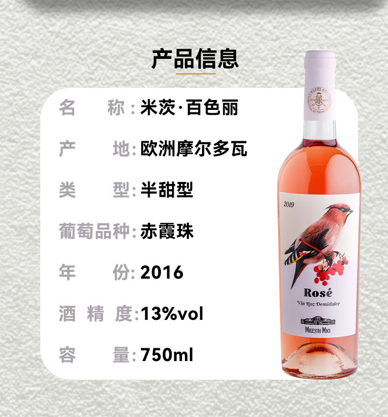 米茨百色丽桃红半甜红葡萄酒 欧洲原装原瓶进口红酒 摩尔多瓦国家馆 750ml*整箱6支装