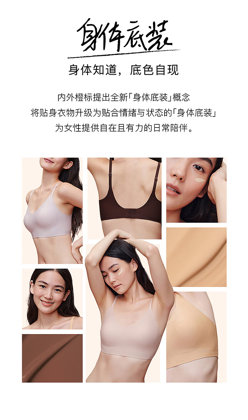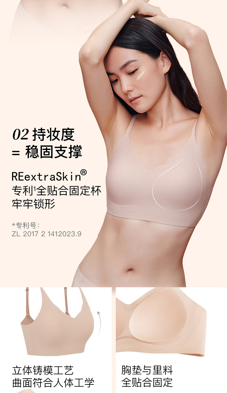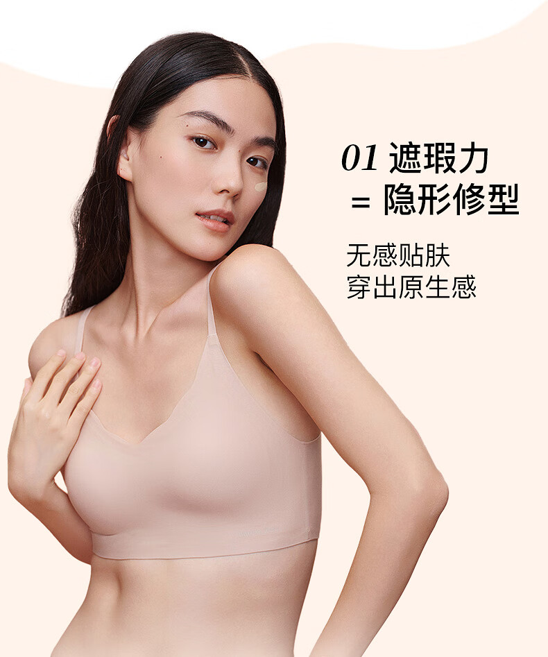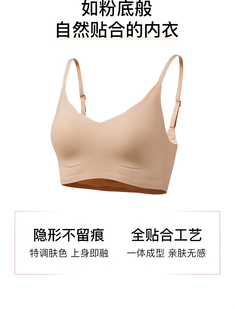 内外橙标张小婉同款抱抱粉底杯软支撑文胸内衣女固定杯无钢圈承托圣诞 背心款-自在裸 (杏仁粉/特调肤色) L (L-XL)