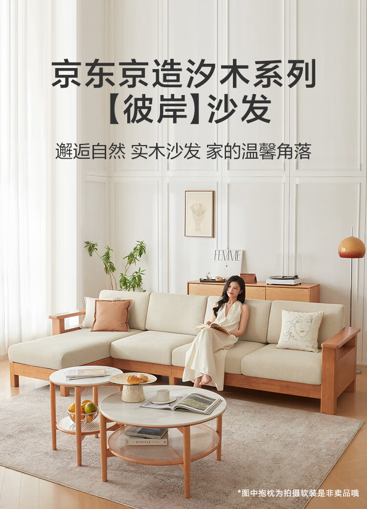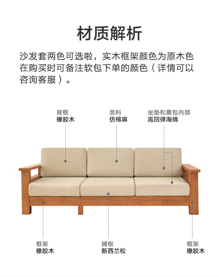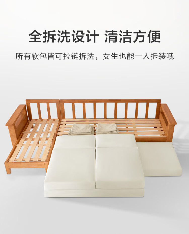 京东京造家居彼岸布艺沙发 现代客厅大户型一体两用实木沙发床 大三人位