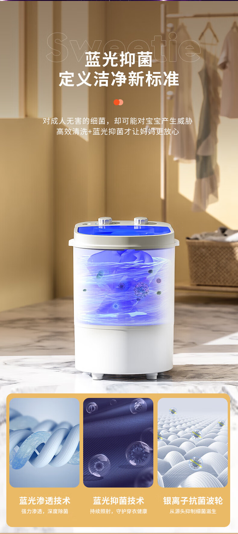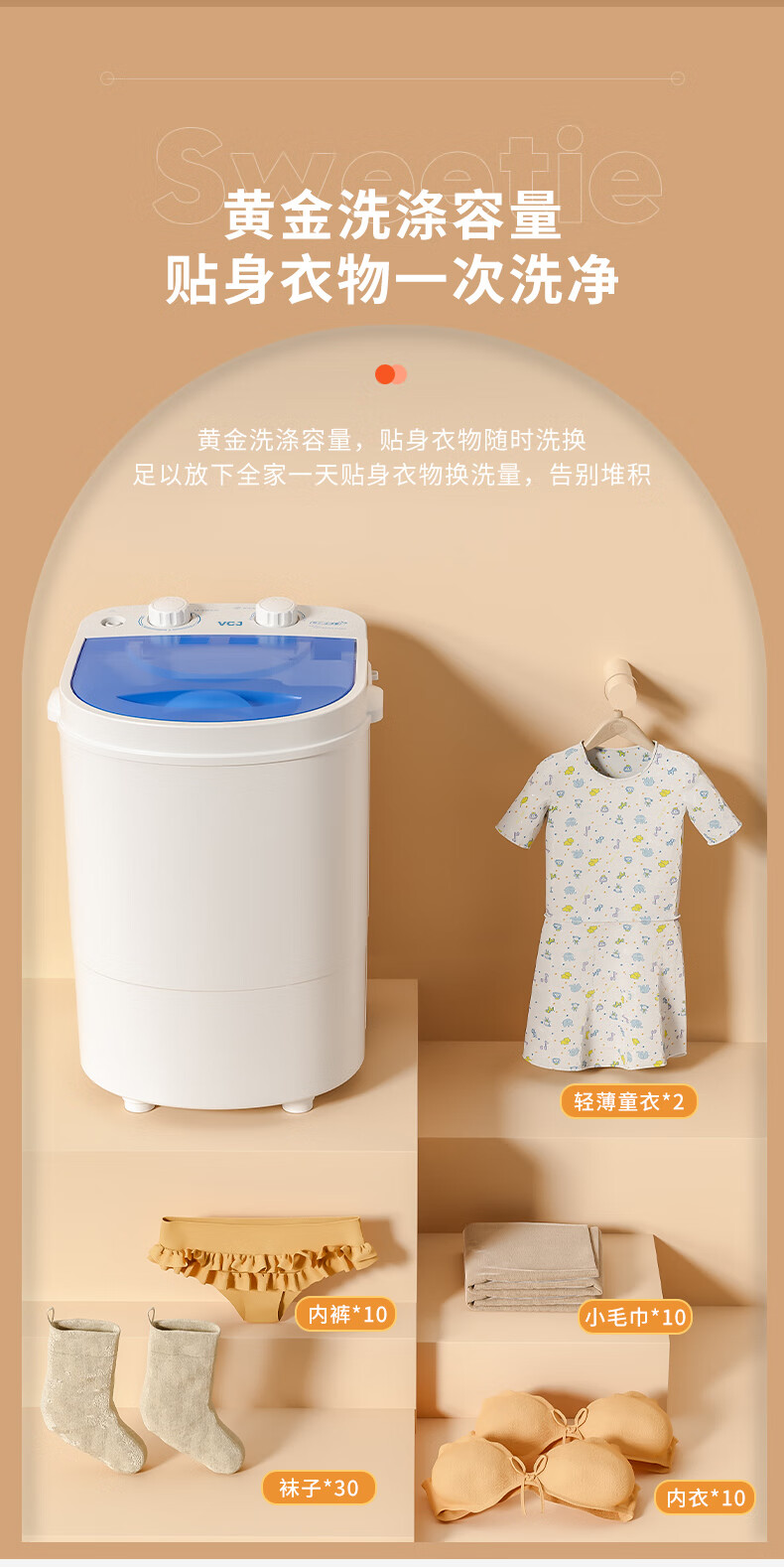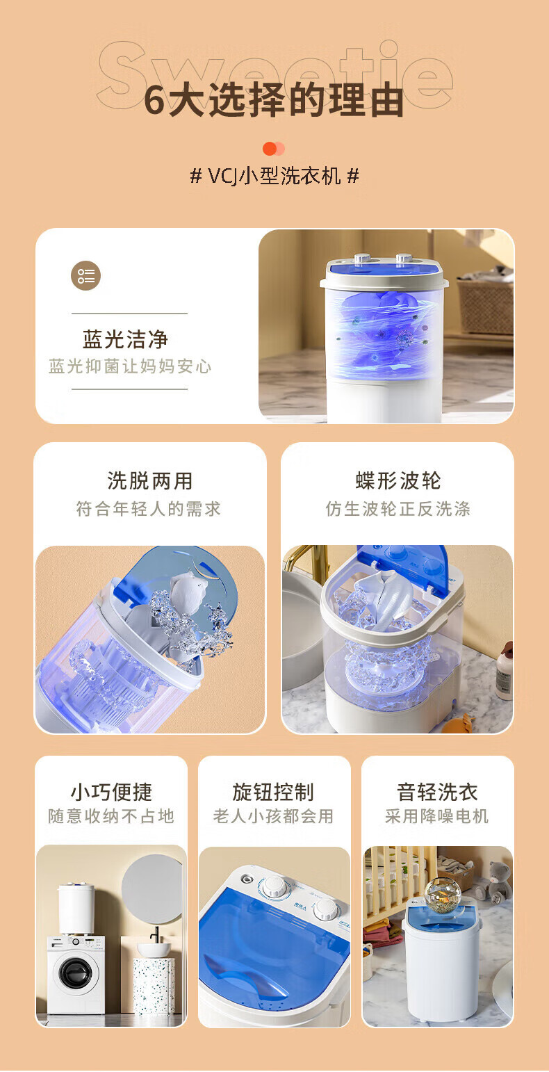 VCJ迷你洗衣机半全自动洗衣机小型洗脱一体小型家用母婴内衣裤洗袜子机神器儿童单身人宿舍出租房必备 4.5KG【普通款】单旋钮
