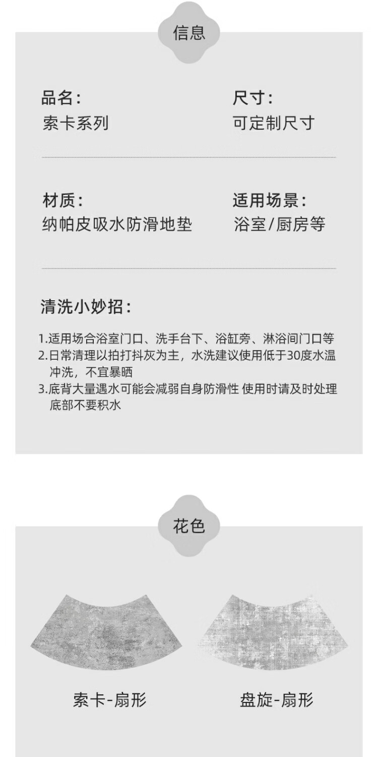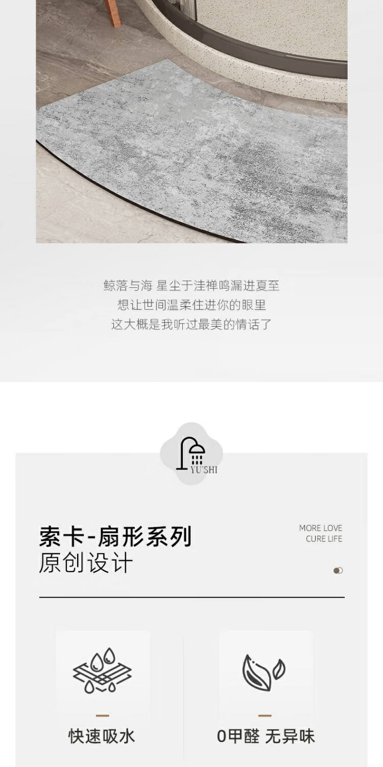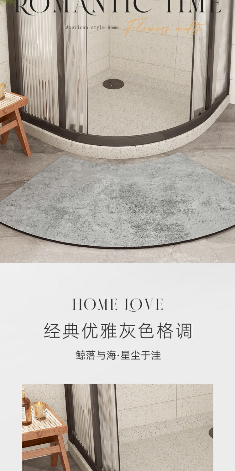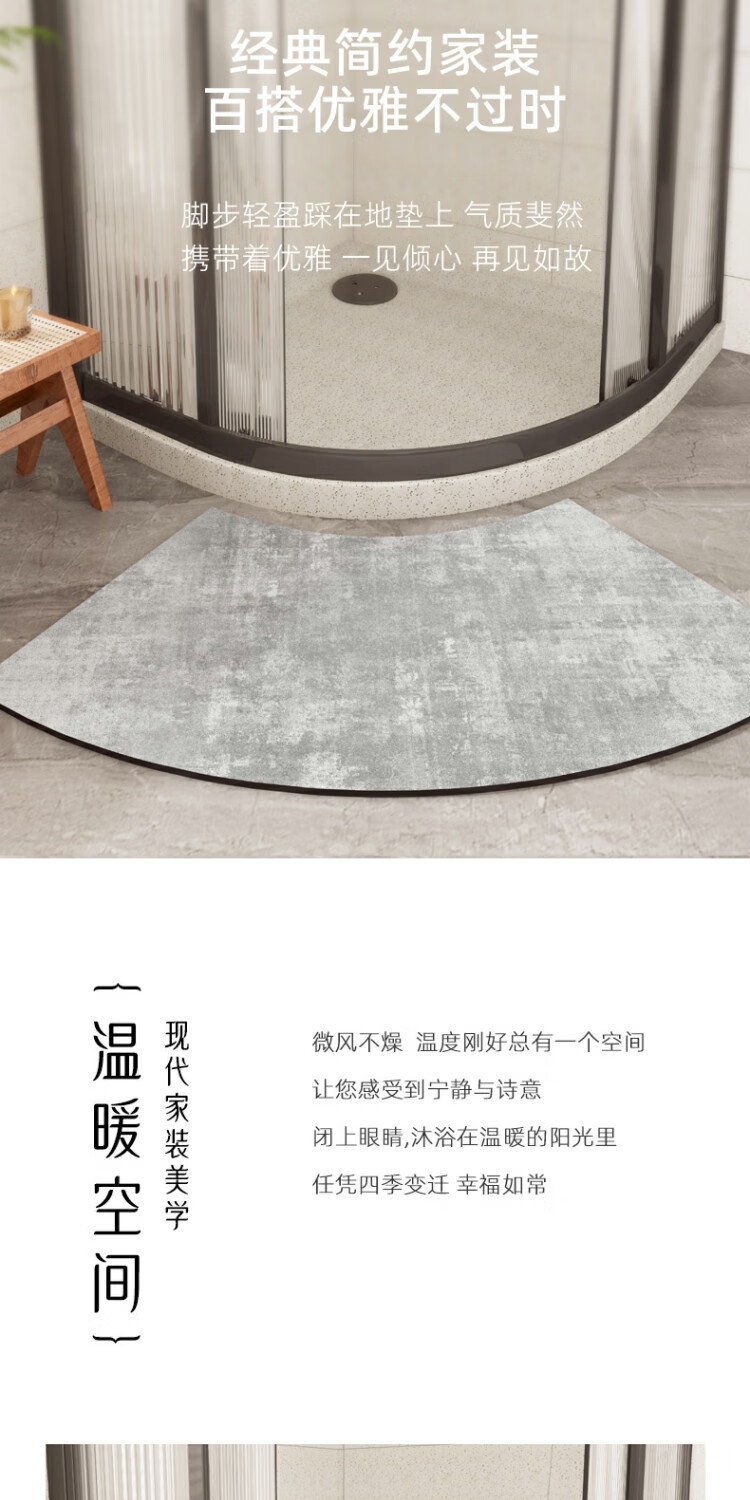 京华浴室门口吸水地垫现代简约卫生间防滑脚垫吸水速干好打理耐脏地垫 贝拉-扇形 30cm*70cm