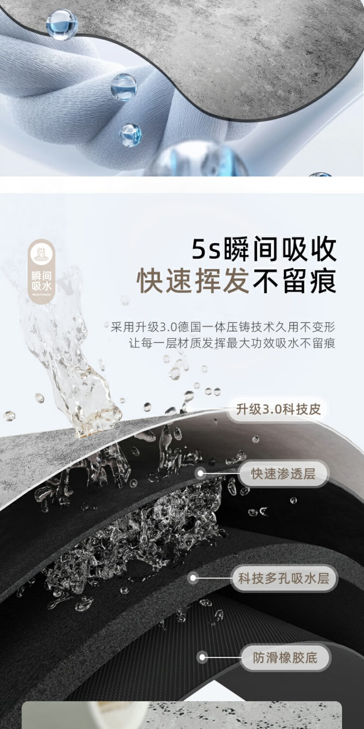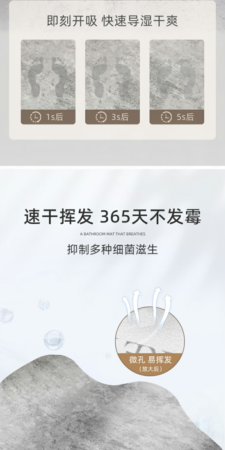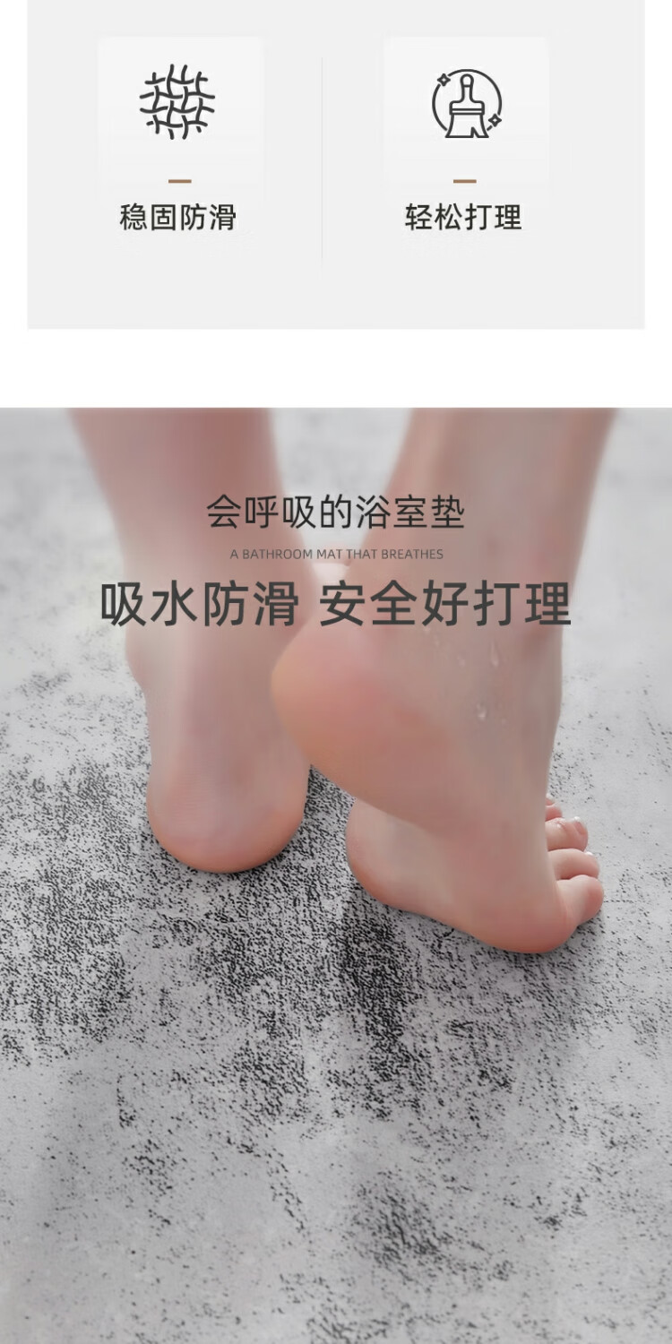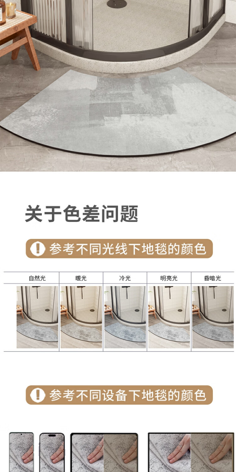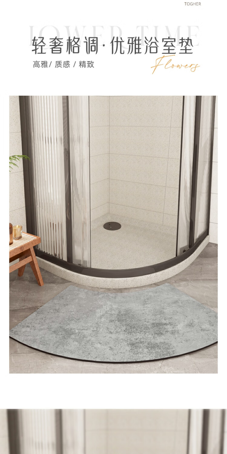 京华浴室门口吸水地垫现代简约卫生间防滑脚垫吸水速干好打理耐脏地垫 贝拉-扇形 30cm*70cm