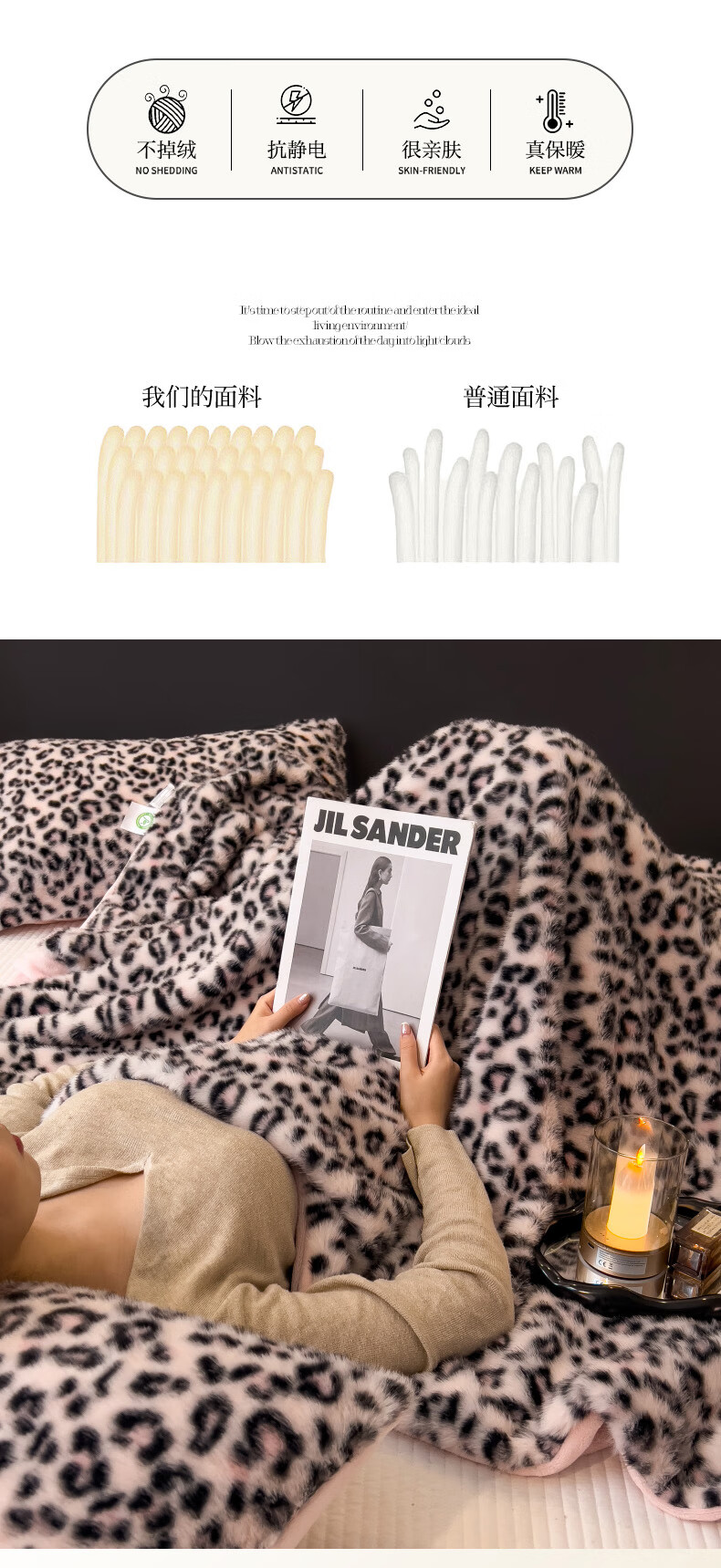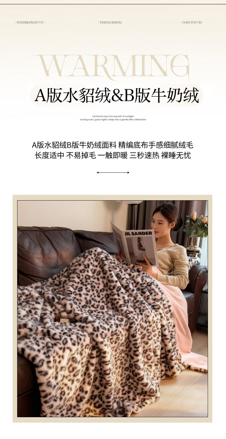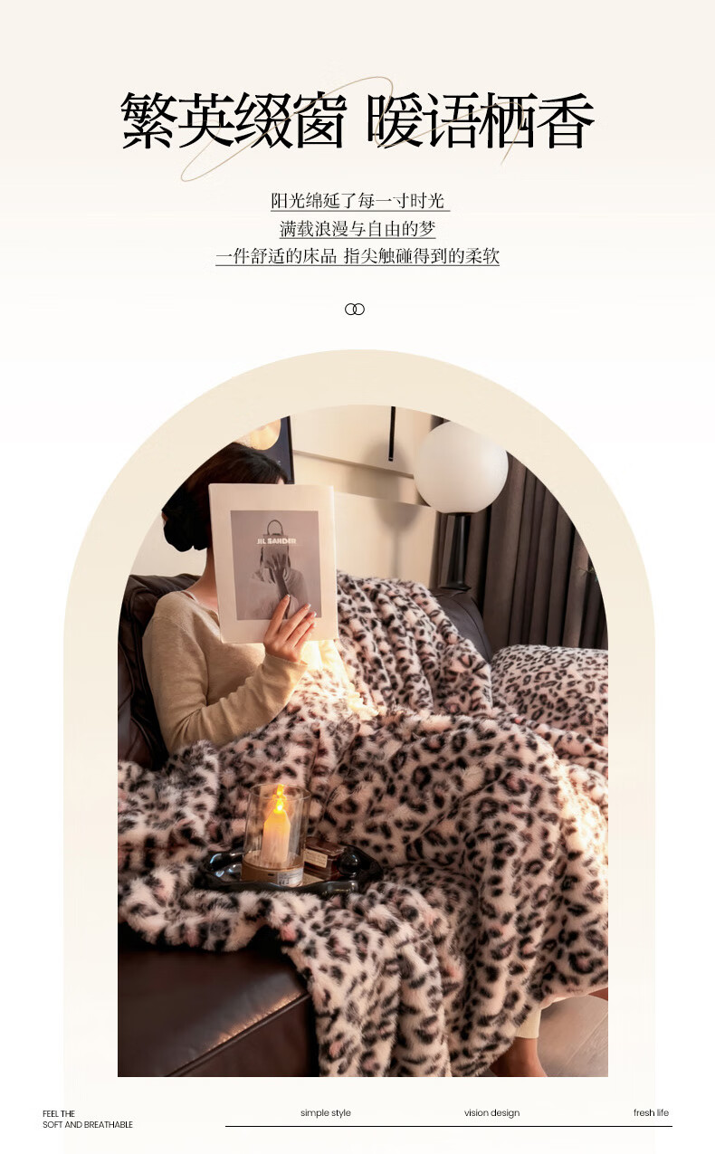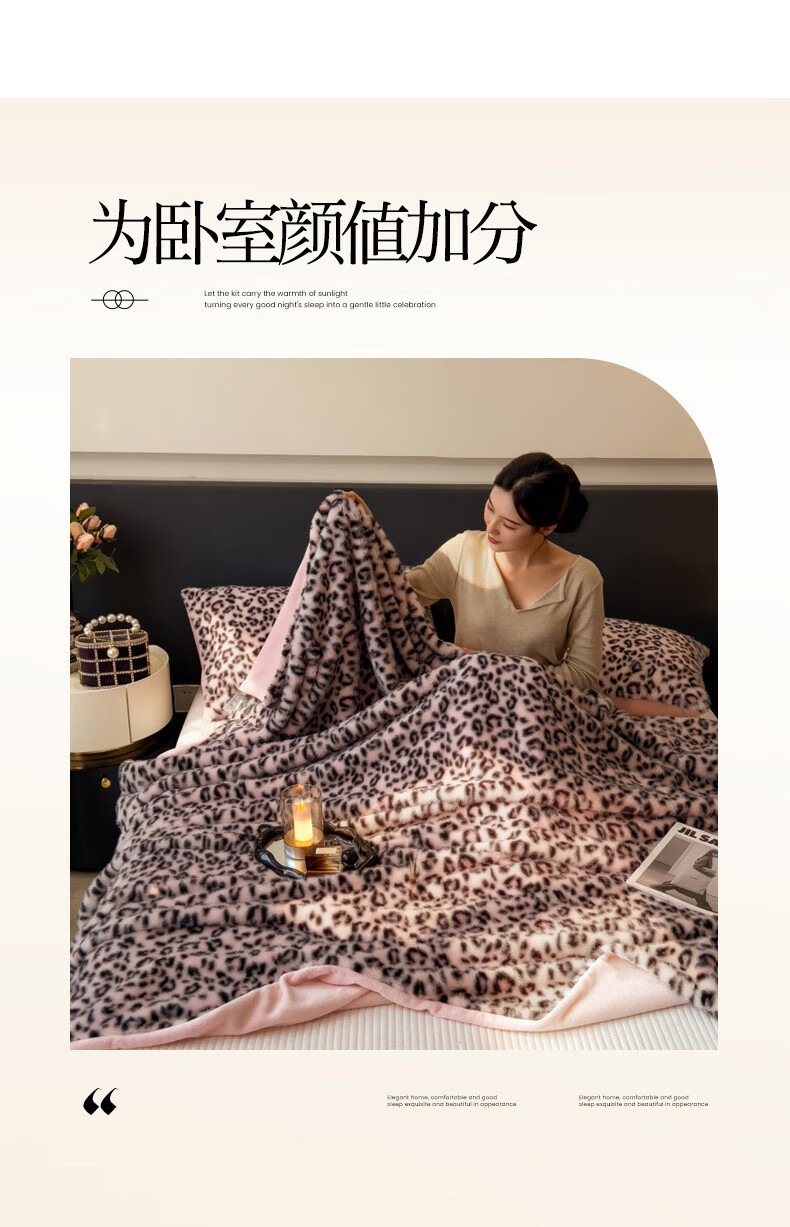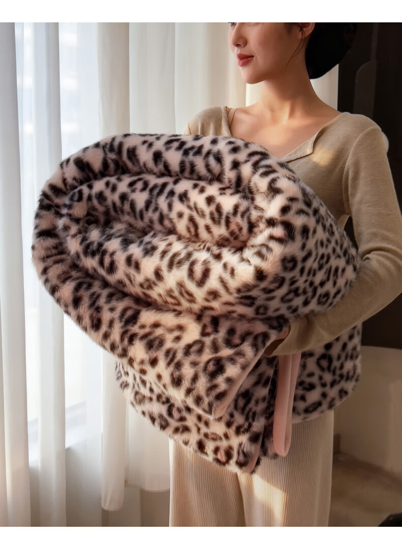猫人(MiiOW)轻奢豹纹仿兔绒毛毯 加厚沙发盖毯午睡毯办公室披肩小毛毯 豹纹粉 150*200cm【双层加厚不易掉绒】