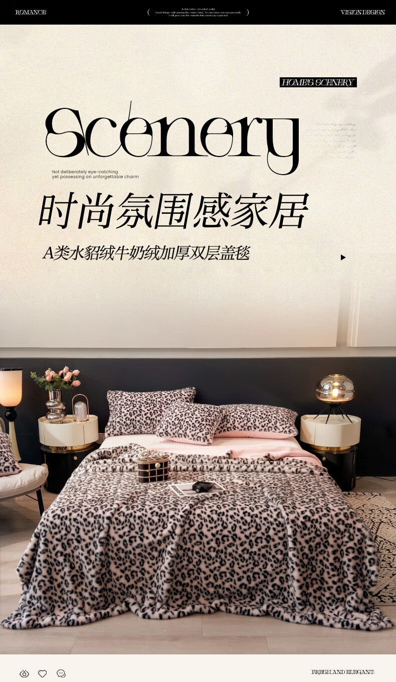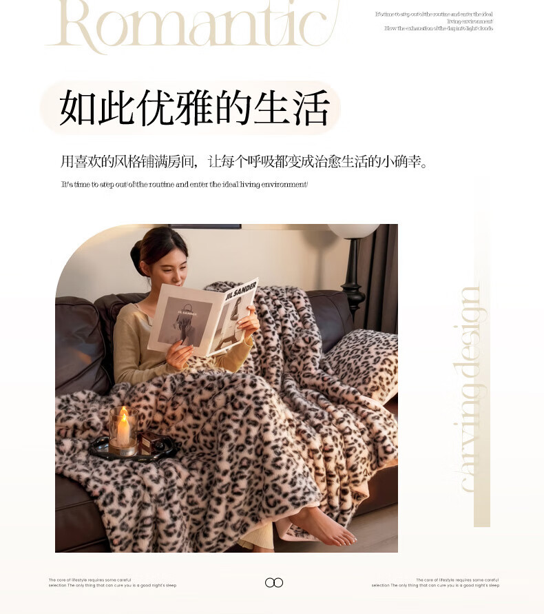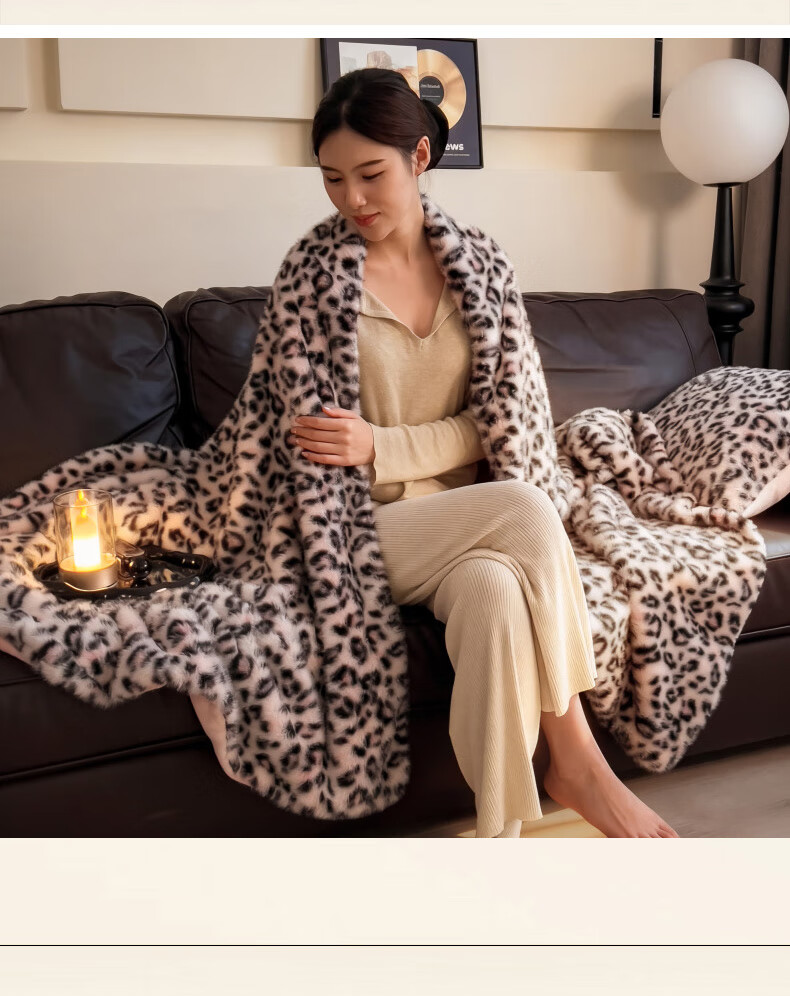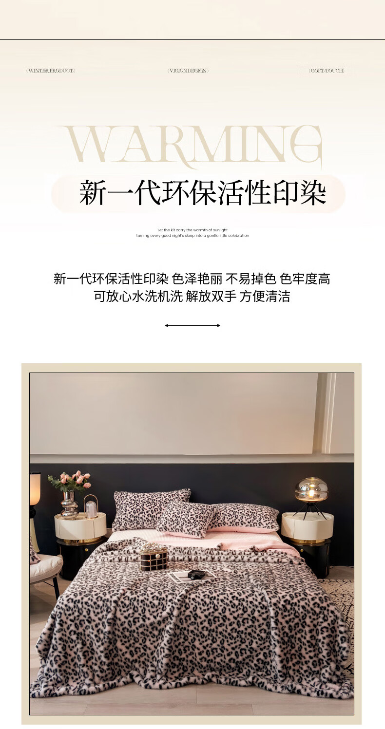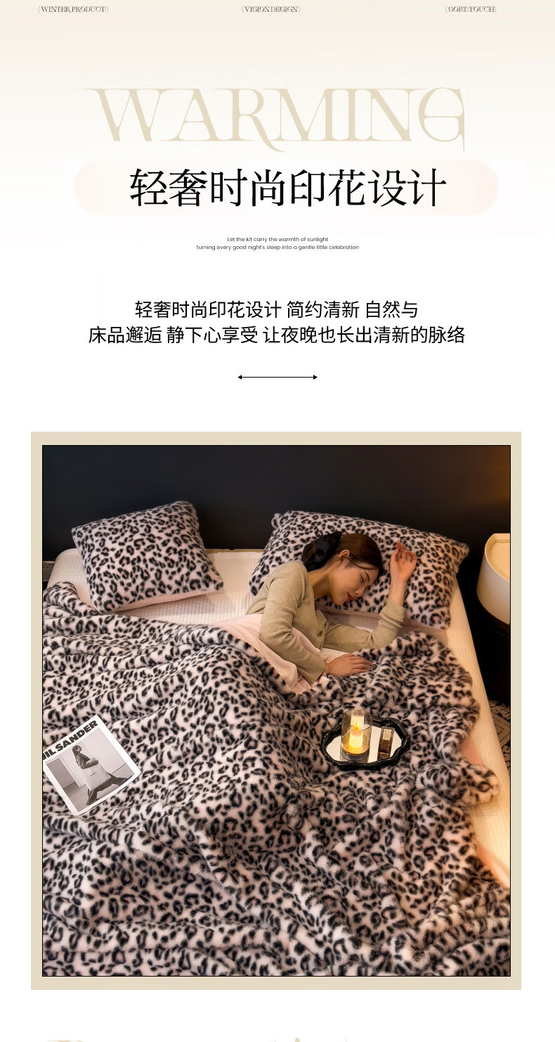 猫人(MiiOW)轻奢豹纹仿兔绒毛毯 加厚沙发盖毯午睡毯办公室披肩小毛毯 豹纹粉 150*200cm【双层加厚不易掉绒】