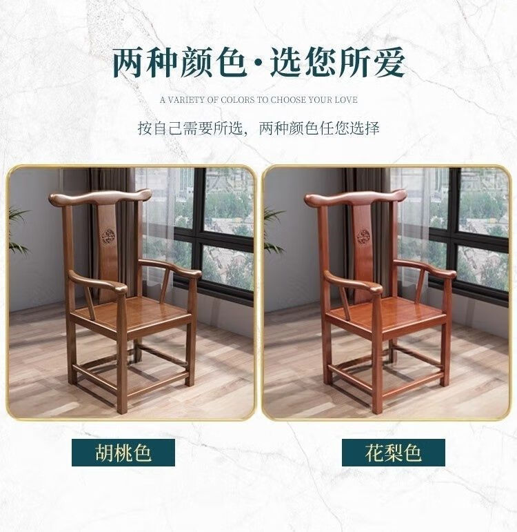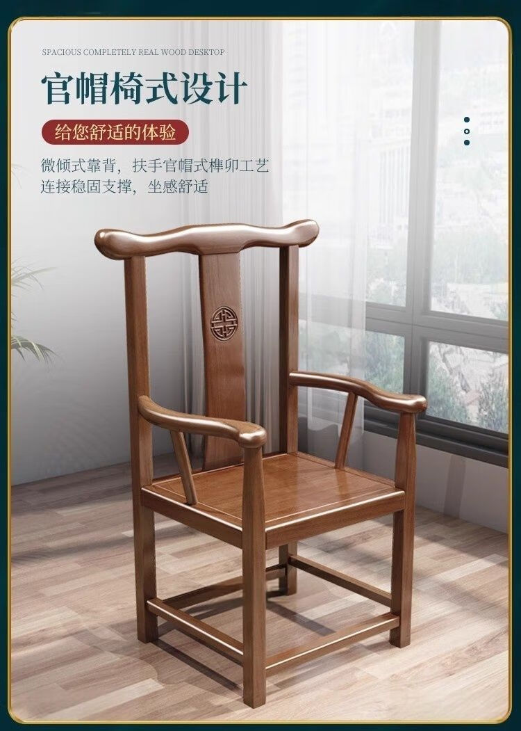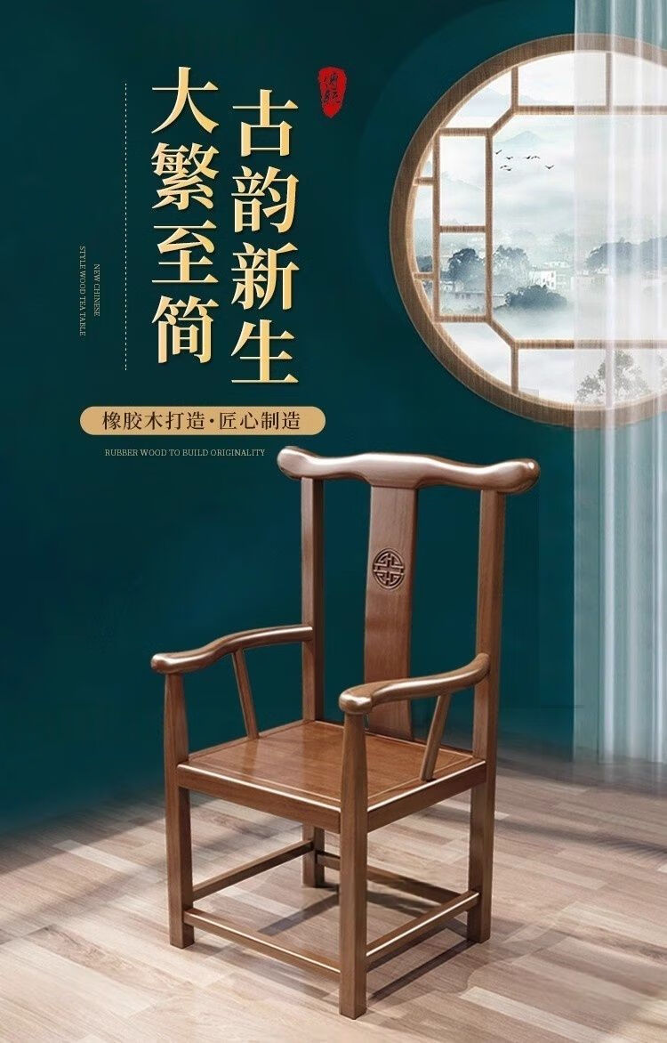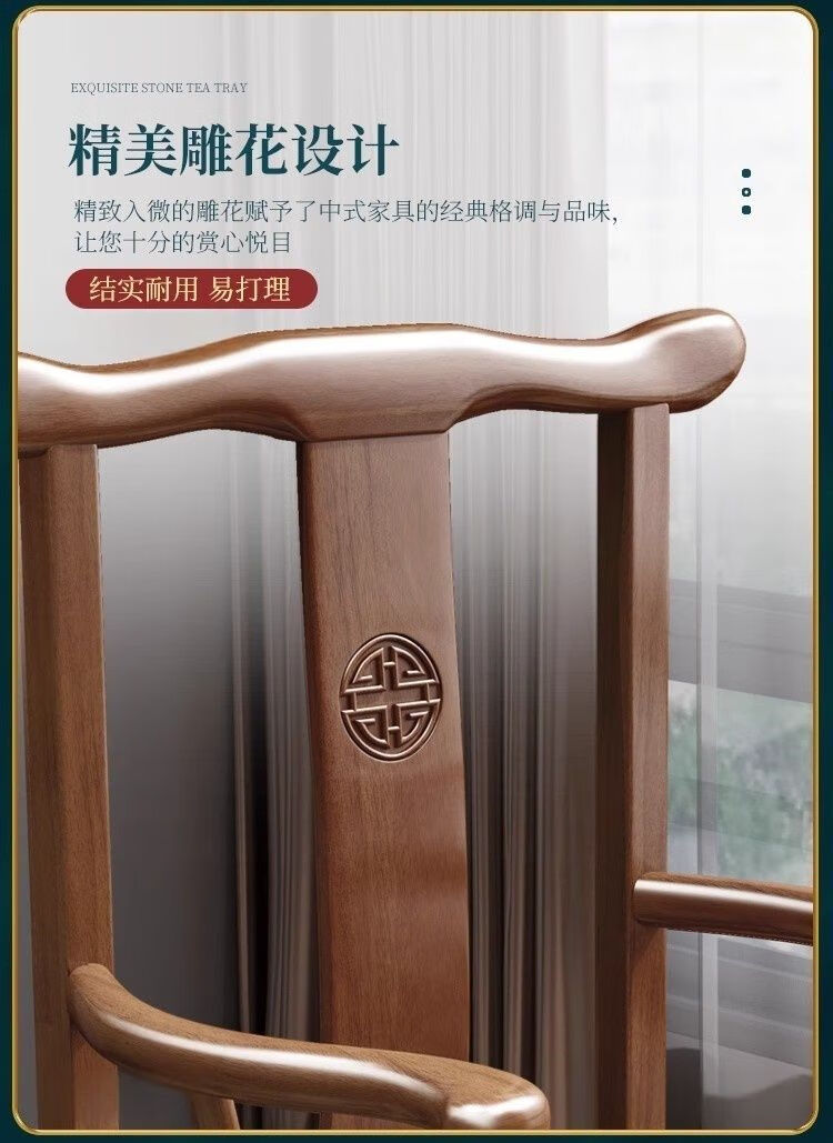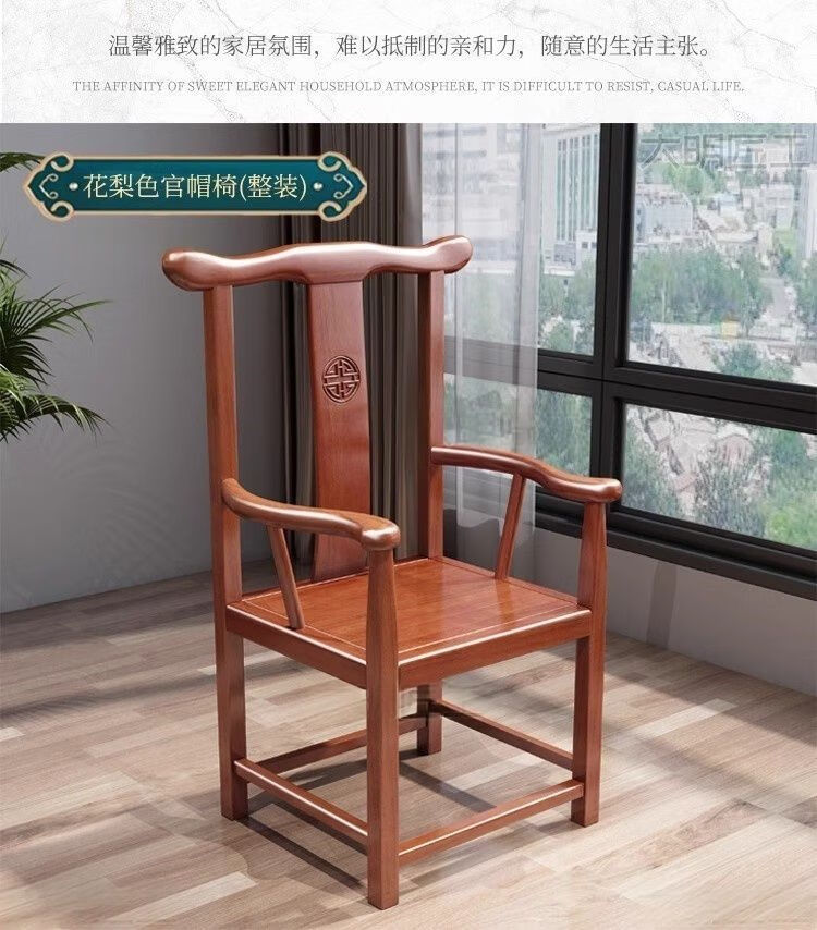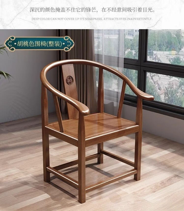 迈途森仿古风椅子中国风实木椅子围椅圈椅三件套新中式带扶手椅子靠背椅 花梨色 围椅x1+月牙椅(拆装)x4