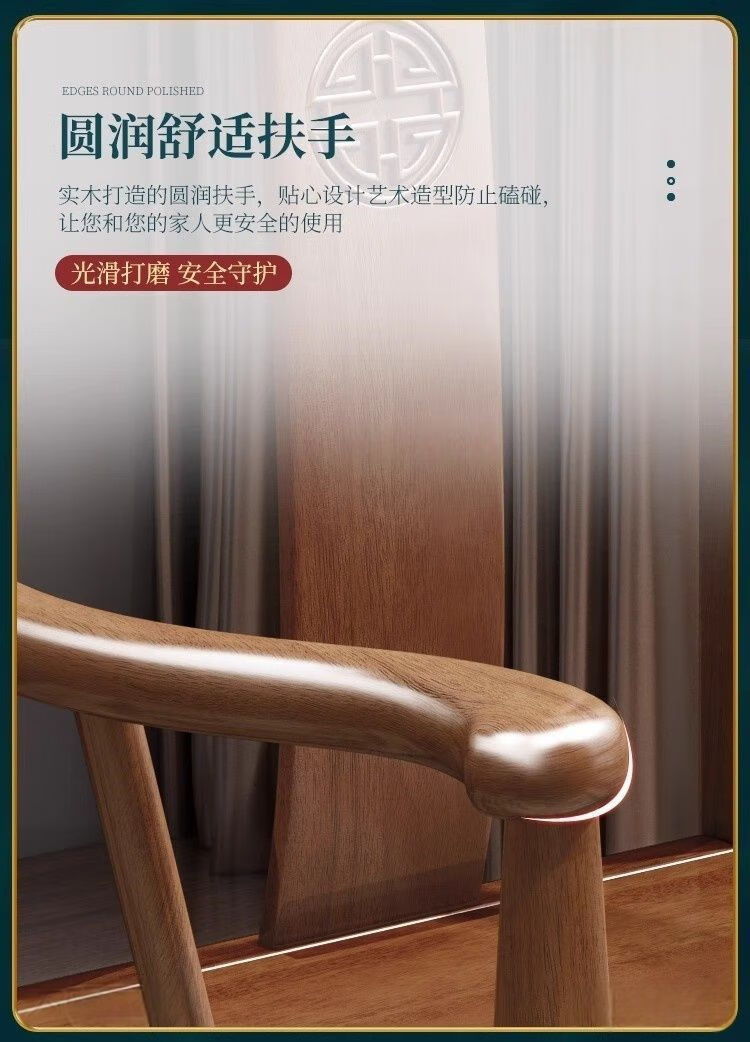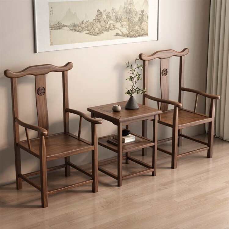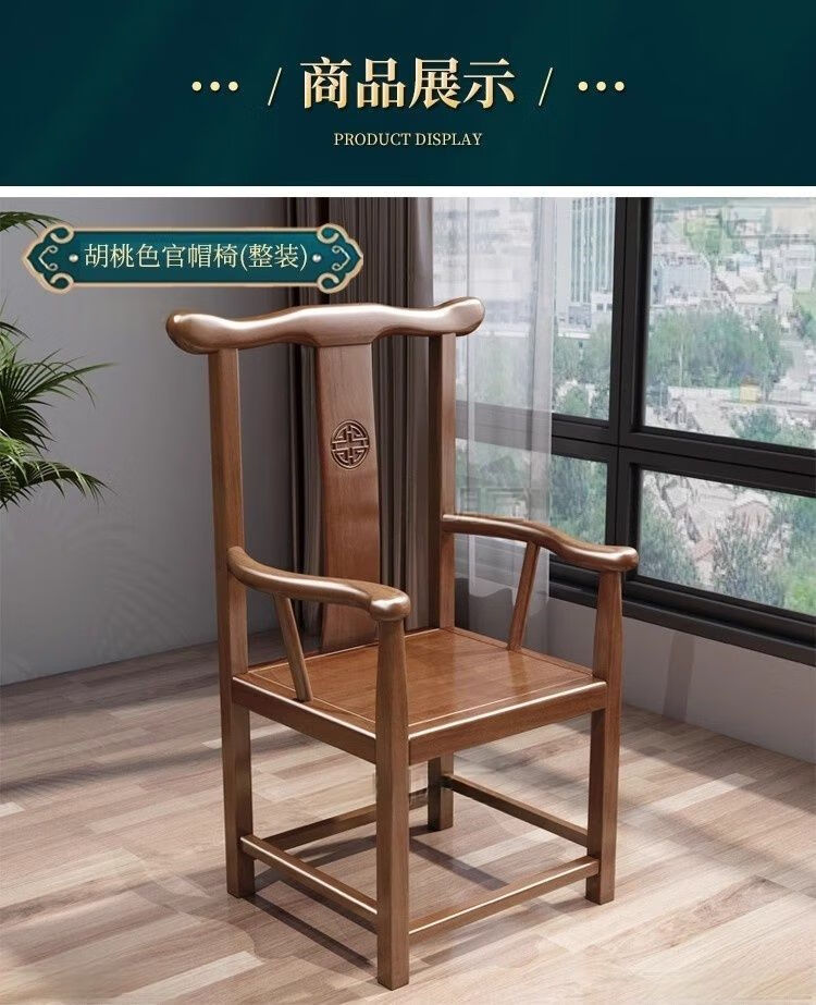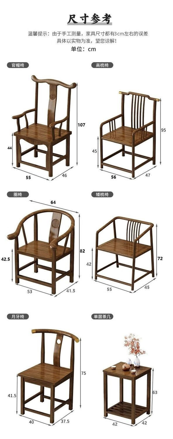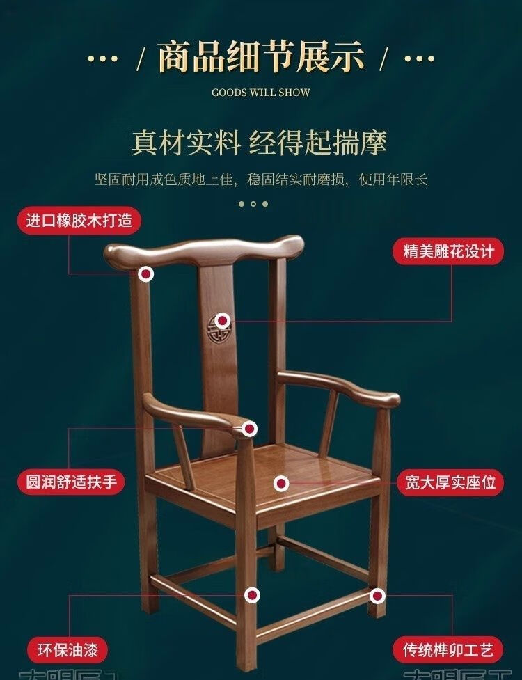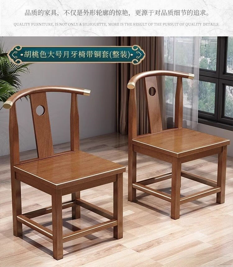 迈途森仿古风椅子中国风实木椅子围椅圈椅三件套新中式带扶手椅子靠背椅 花梨色 围椅x1+月牙椅(拆装)x4