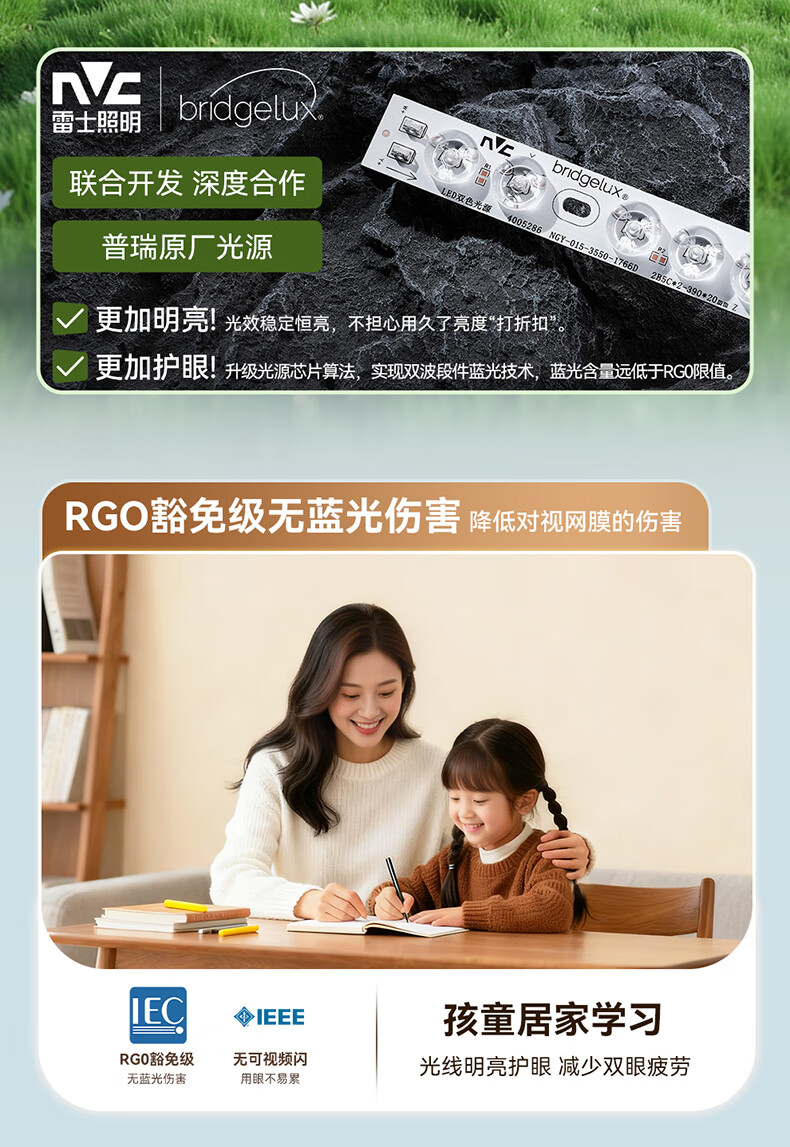 雷士(NVC)未来光母婴漫反射吸顶灯全光谱护眼背光卧室灯具明悦母婴灯 72W 20㎡内适用 4158lm 母婴漫反射圆灯