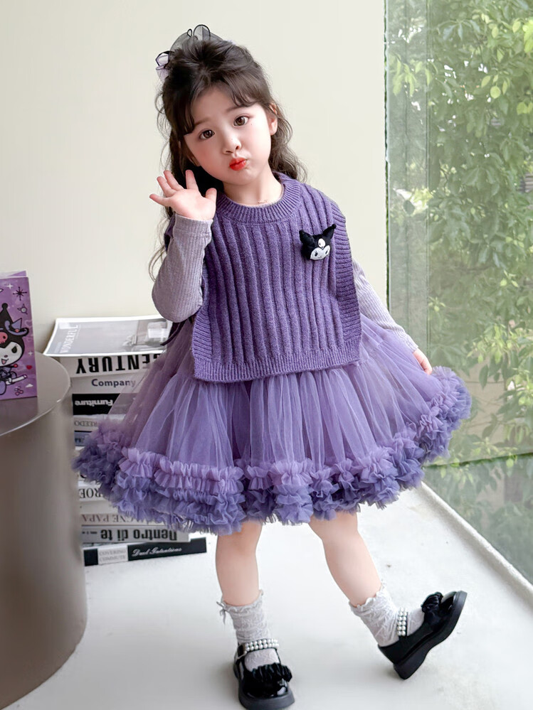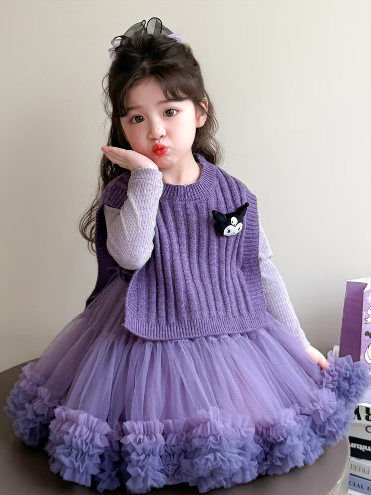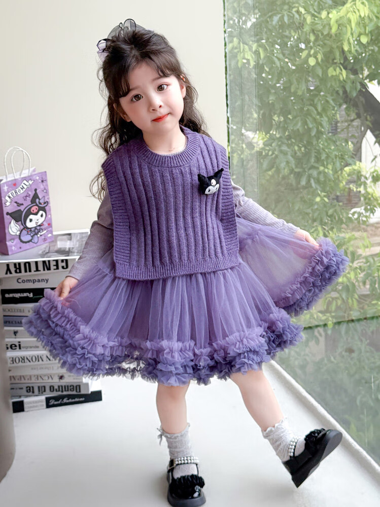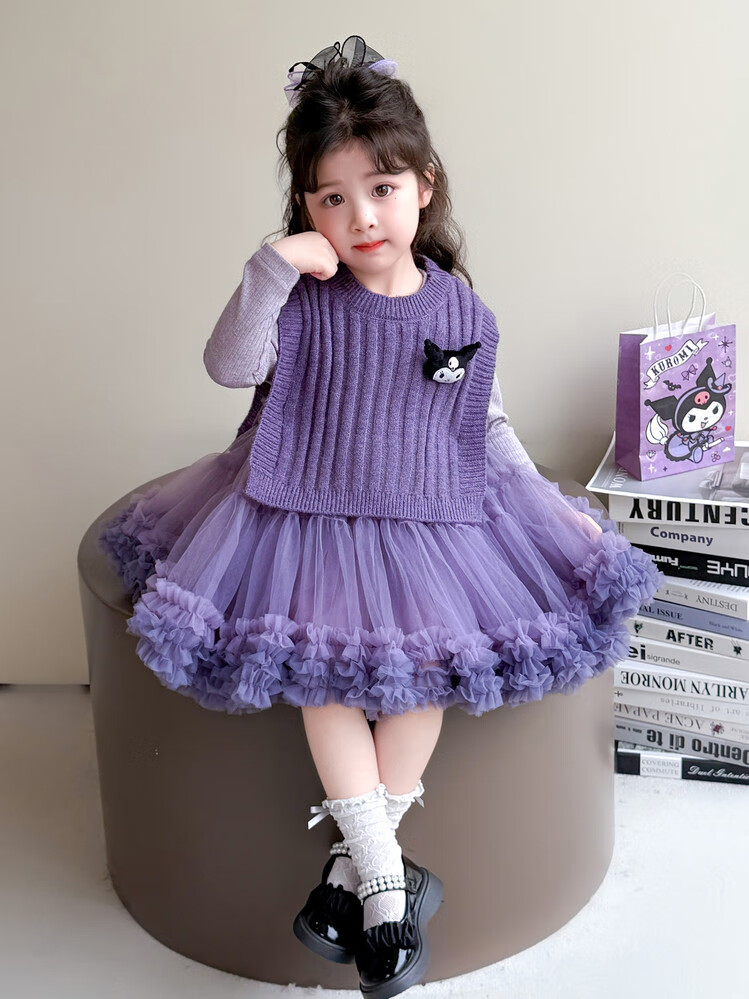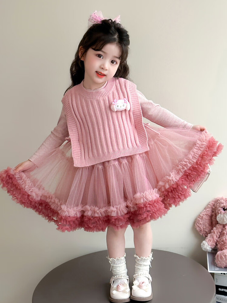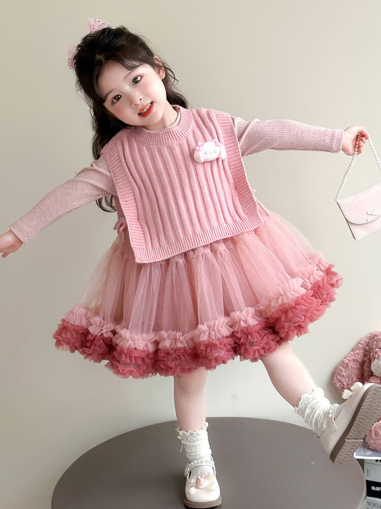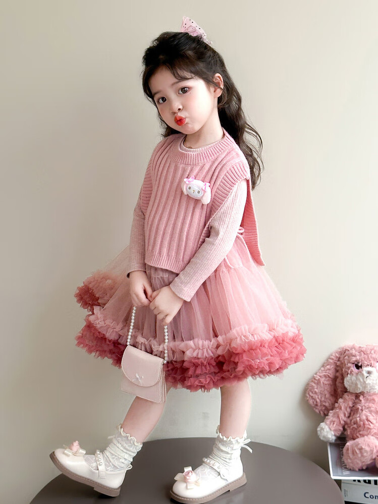 G.duck库洛米女童连衣裙春秋新款女宝宝公主裙美乐蒂儿童毛衣马甲两件套 粉色+发夹 110 (建议身高100cm 4-5岁)