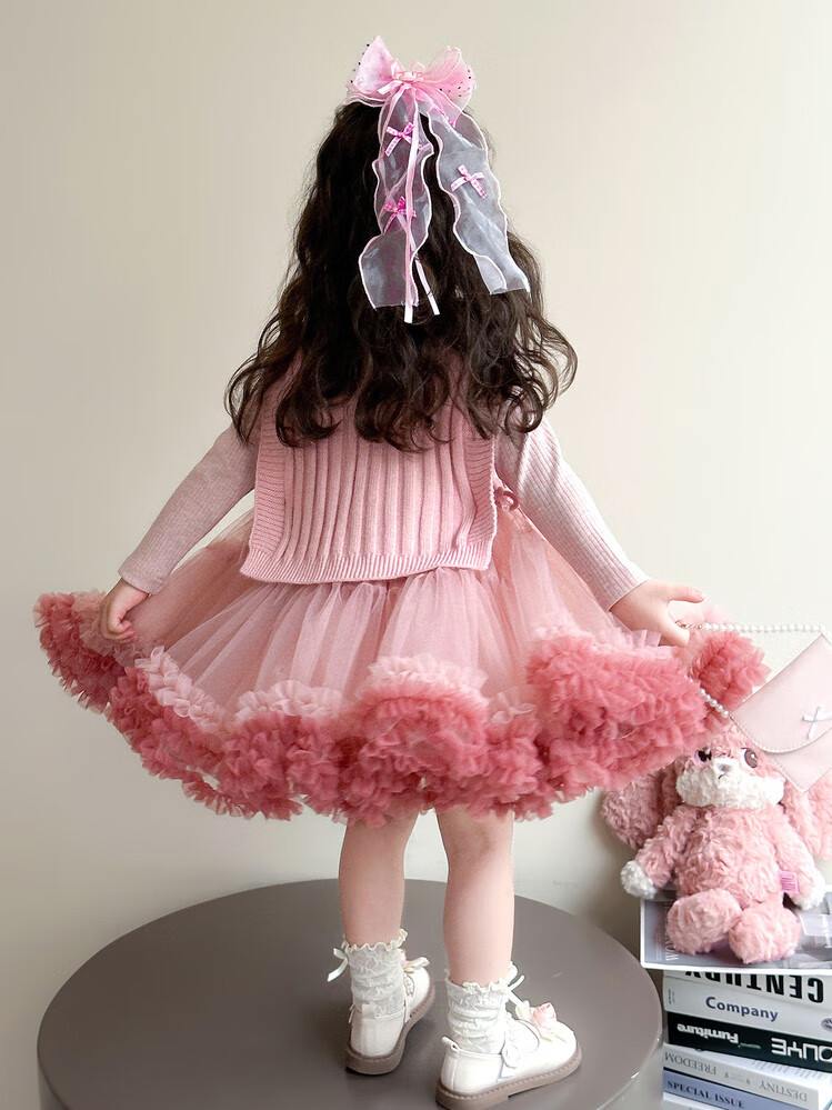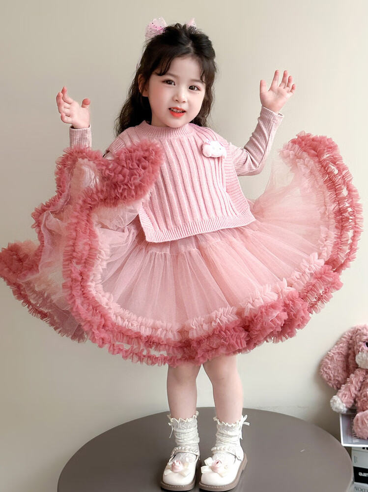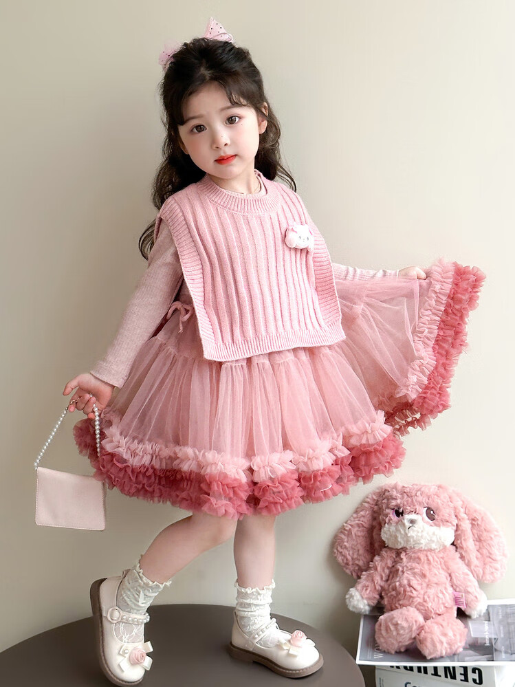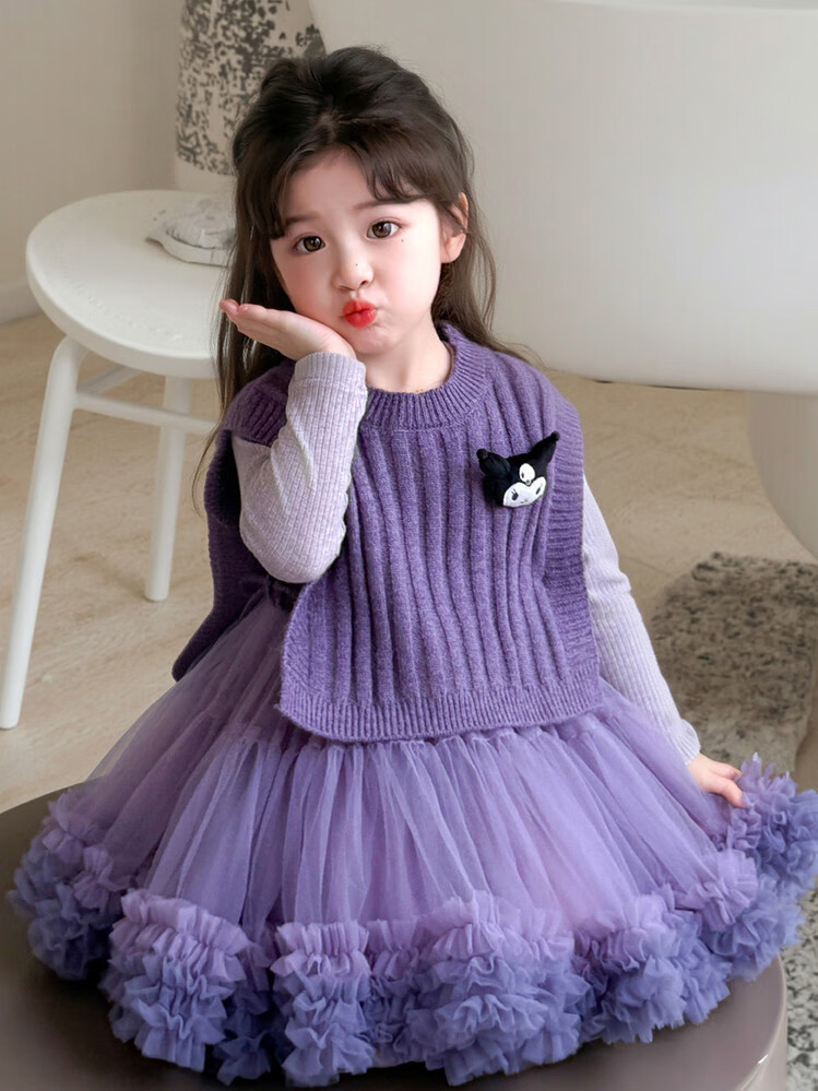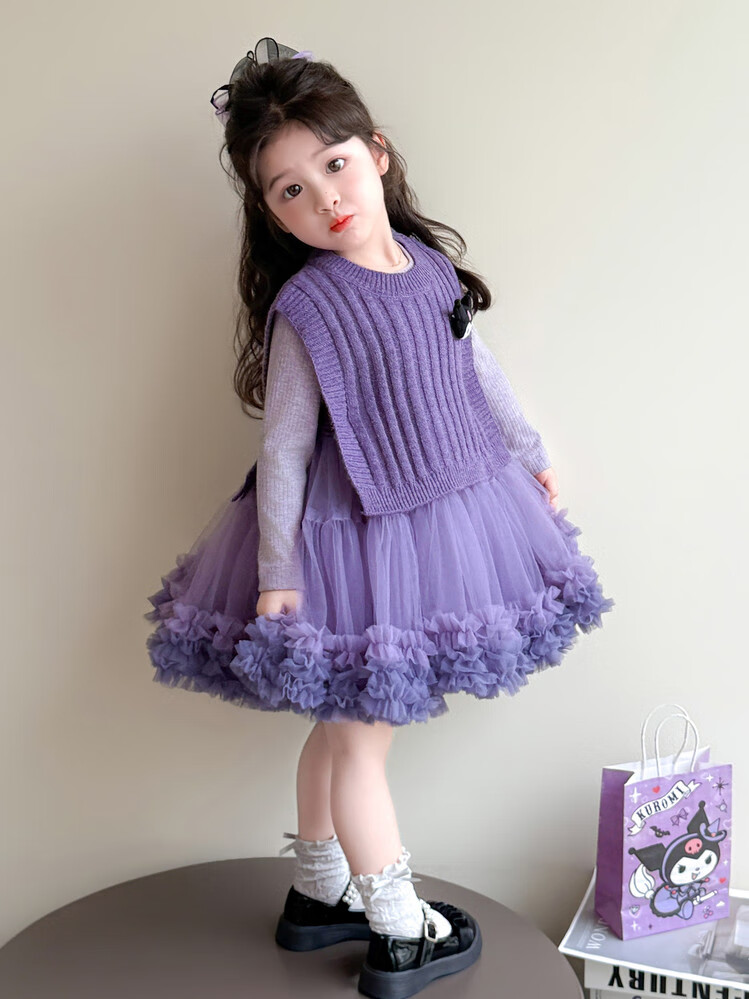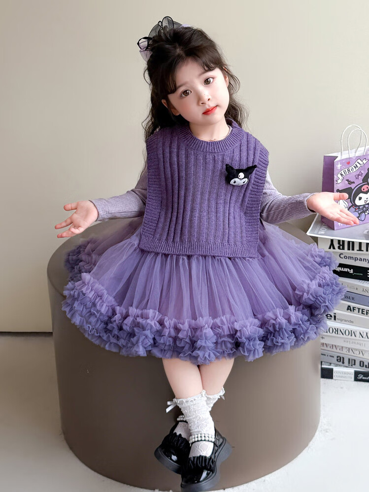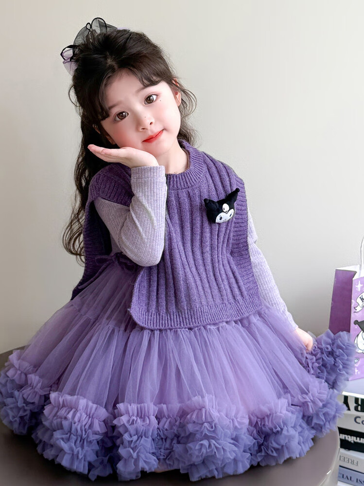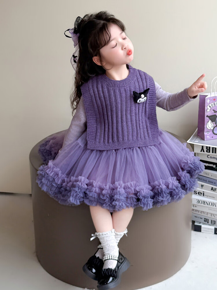 G.duck库洛米女童连衣裙春秋新款女宝宝公主裙美乐蒂儿童毛衣马甲两件套 粉色+发夹 110 (建议身高100cm 4-5岁)