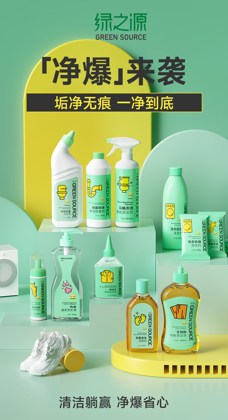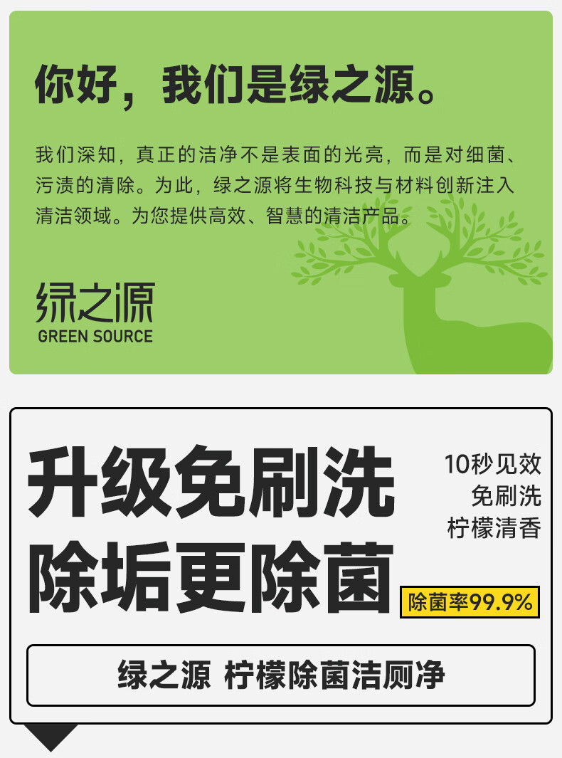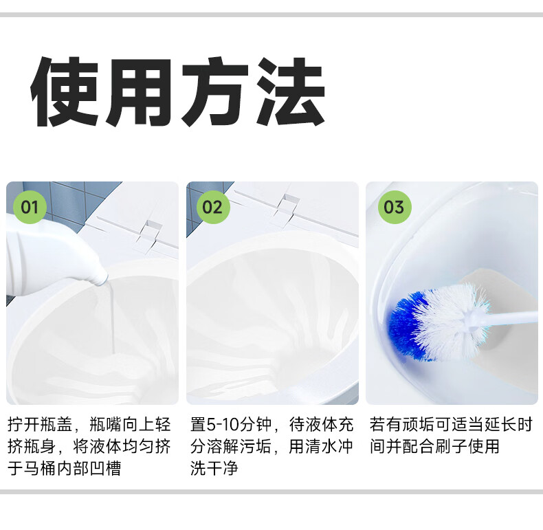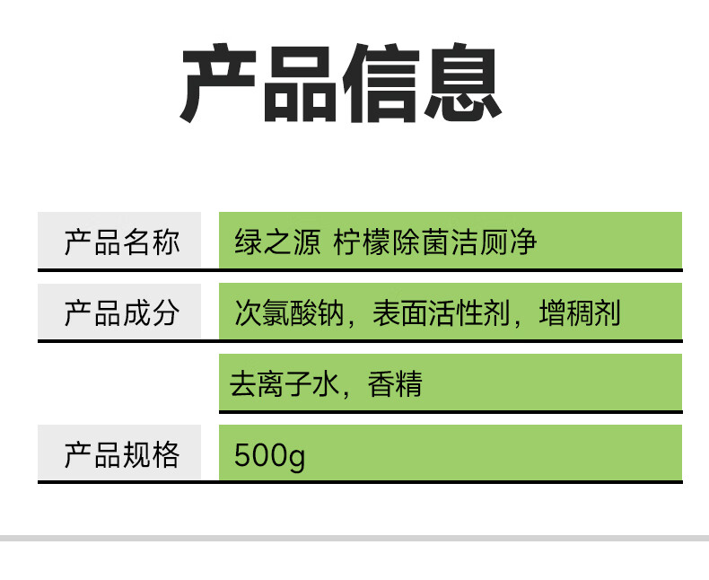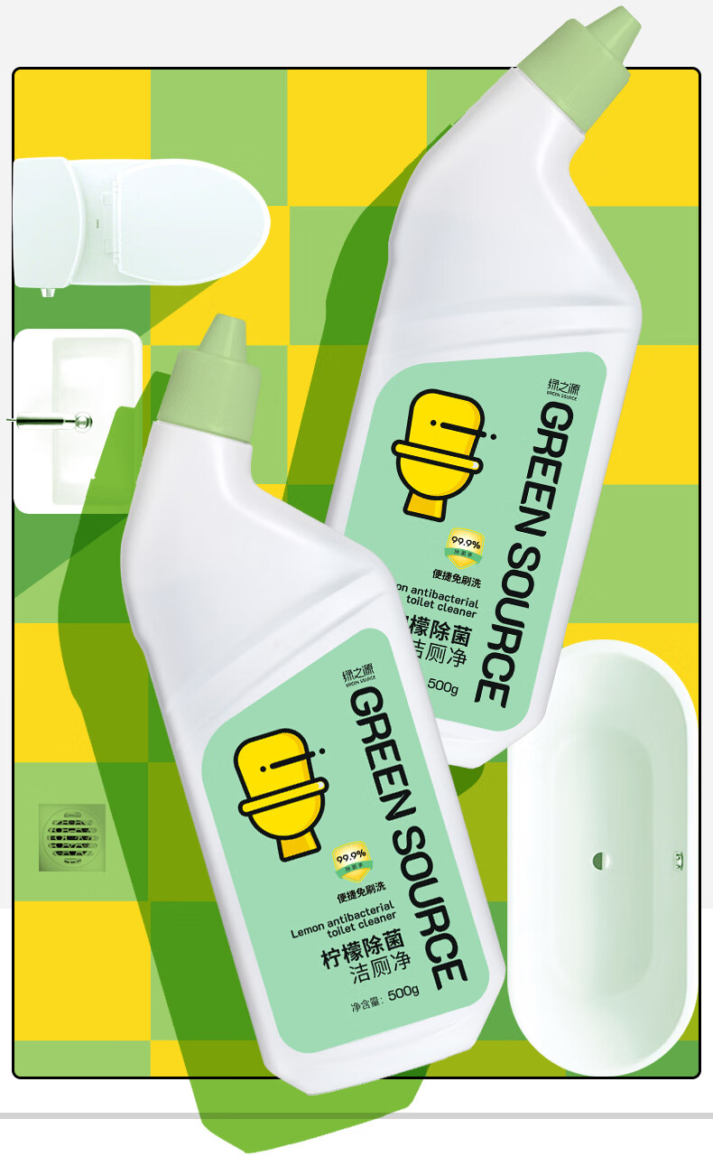 绿之源马桶清洁剂厕所香氛洁厕灵管道疏通剂墙体除霉油烟机油污清洗剂 免刷洗除菌洁厕灵500ml【2瓶装】