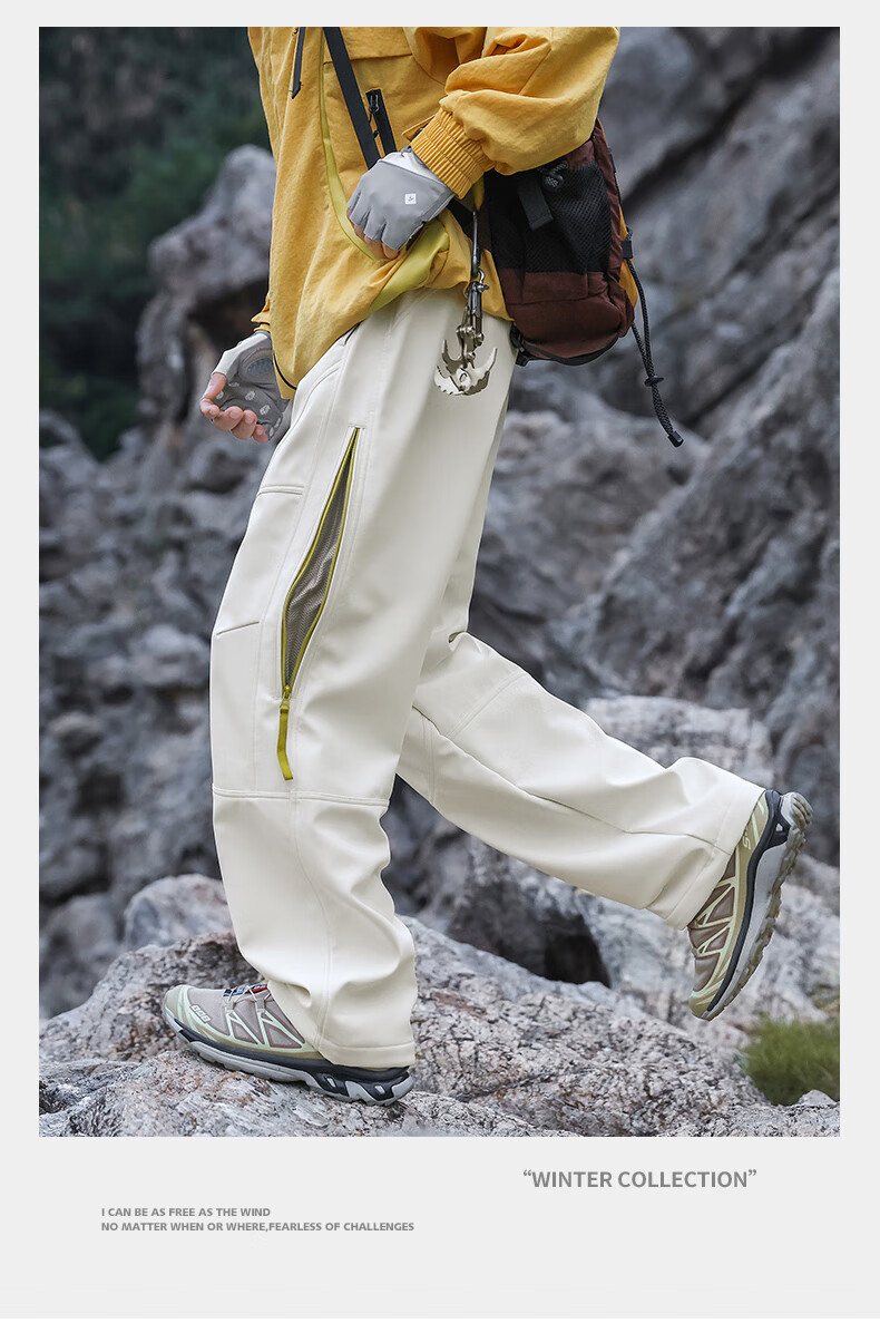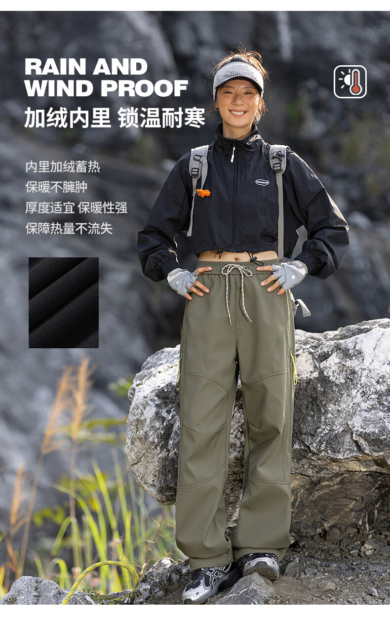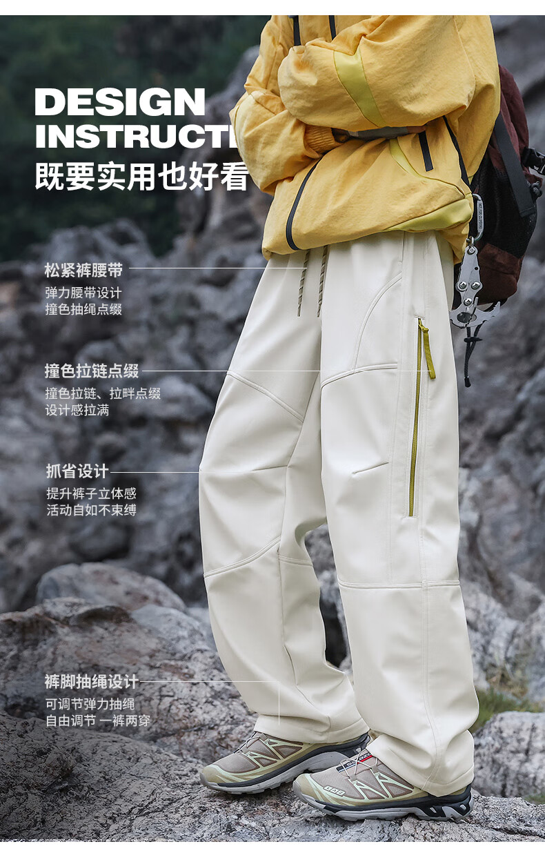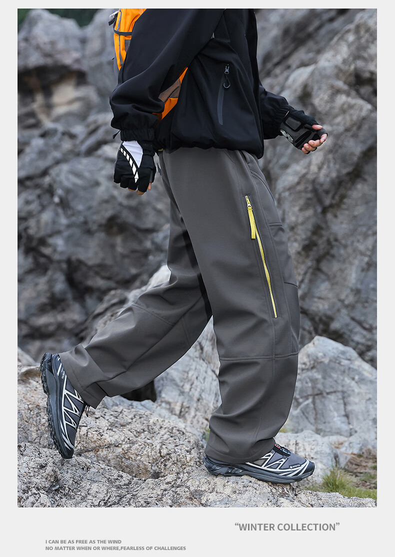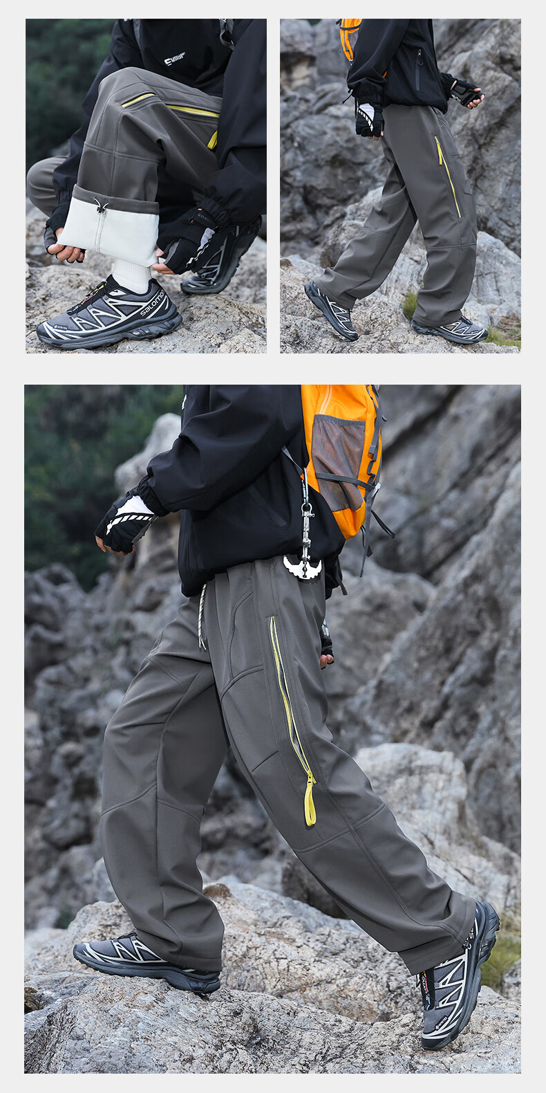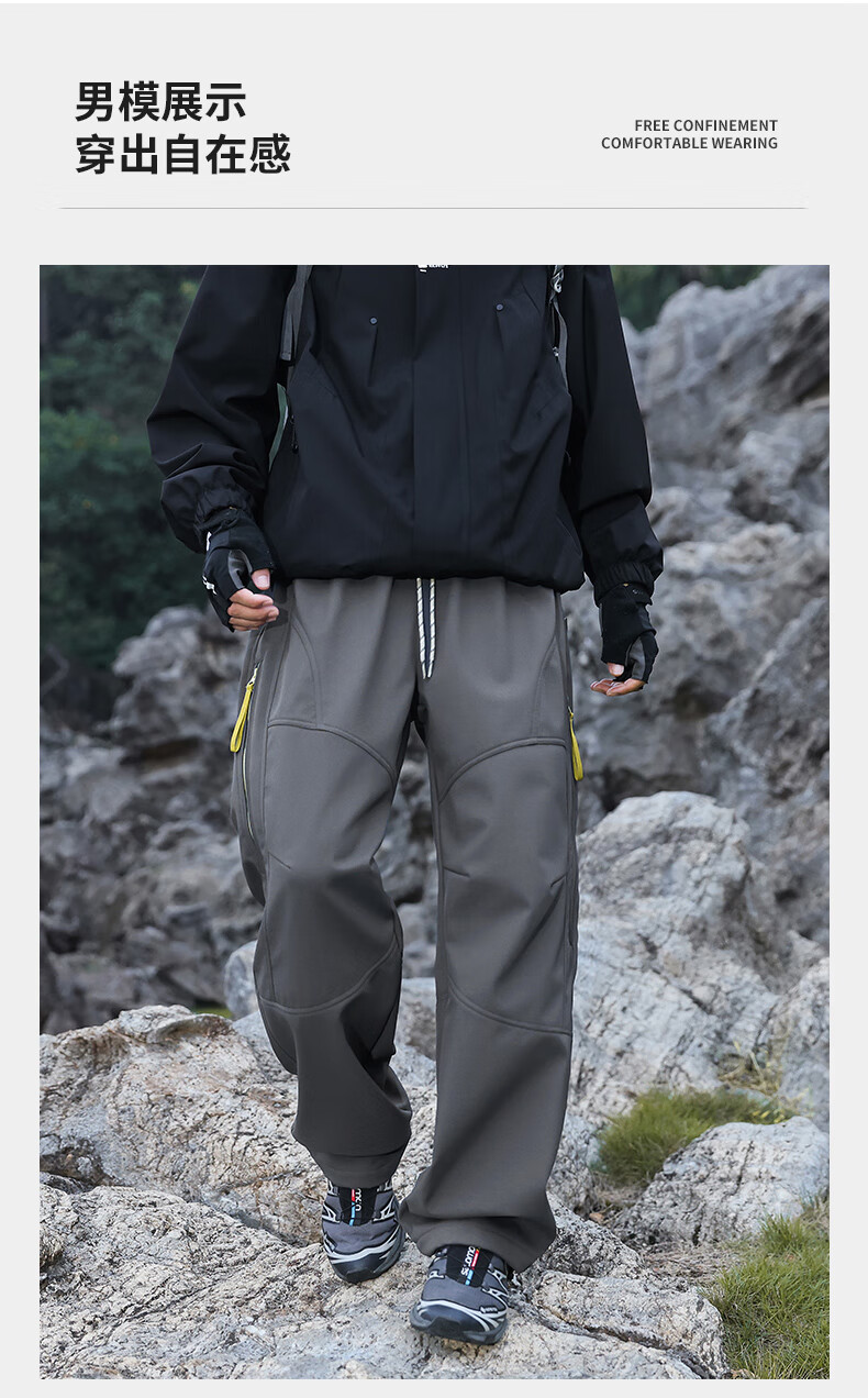 PPGE新款冬季加绒冲锋裤男女同款户外防风防水加厚徒步登山裤 岩石灰 加绒保暖 M