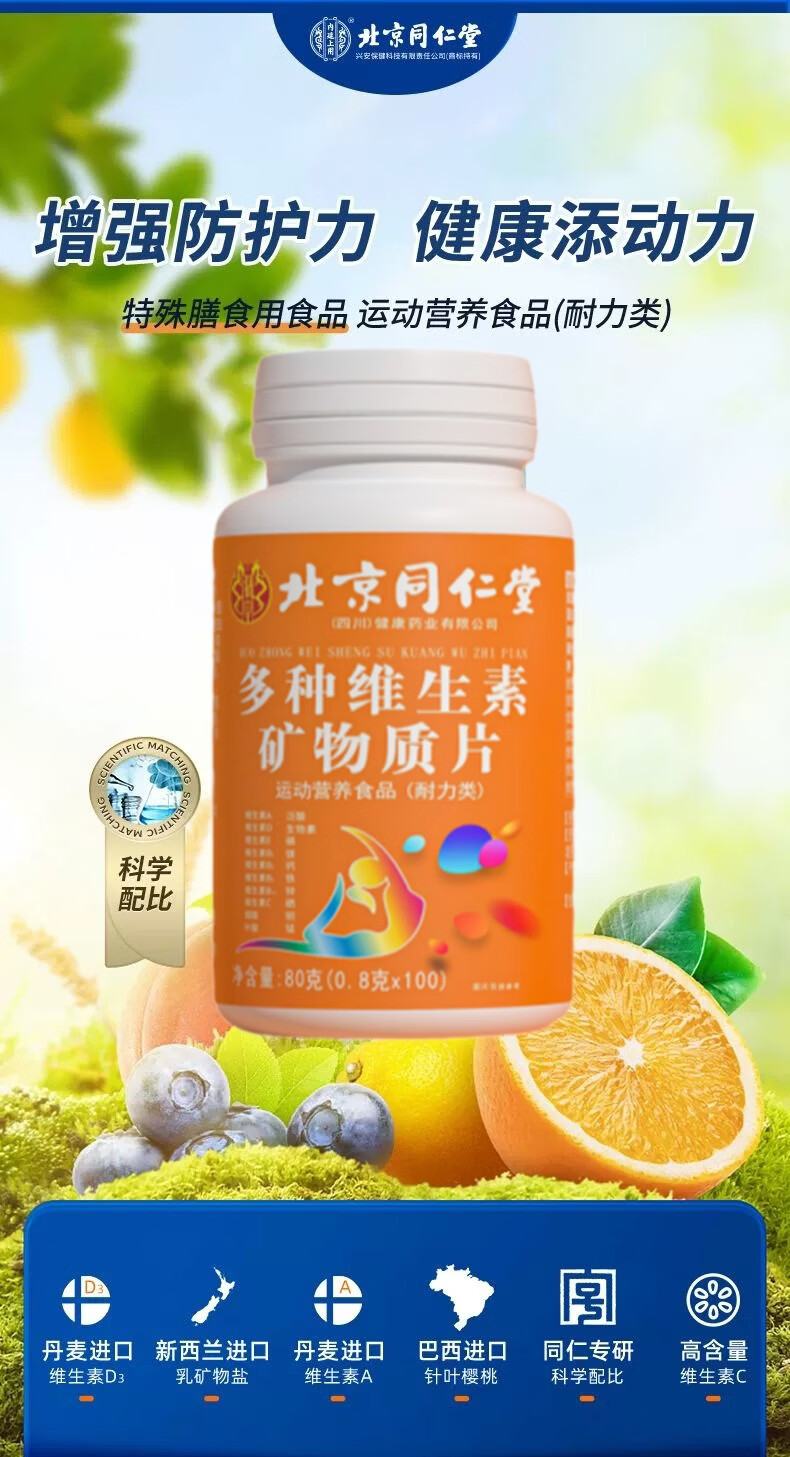 同仁堂(TRT)复合多种维生素b6矿物质片b12成人b2维生素cb3钙铁正品多维吸收 60g*10瓶 家庭装