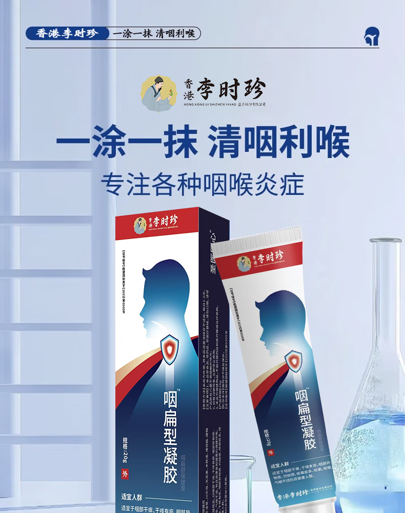 李时珍【官方直售】咽扁凝胶急慢性咽喉炎扁桃体发炎医用口干咳嗽痒正品 【3盒疗程装】93%客户所选