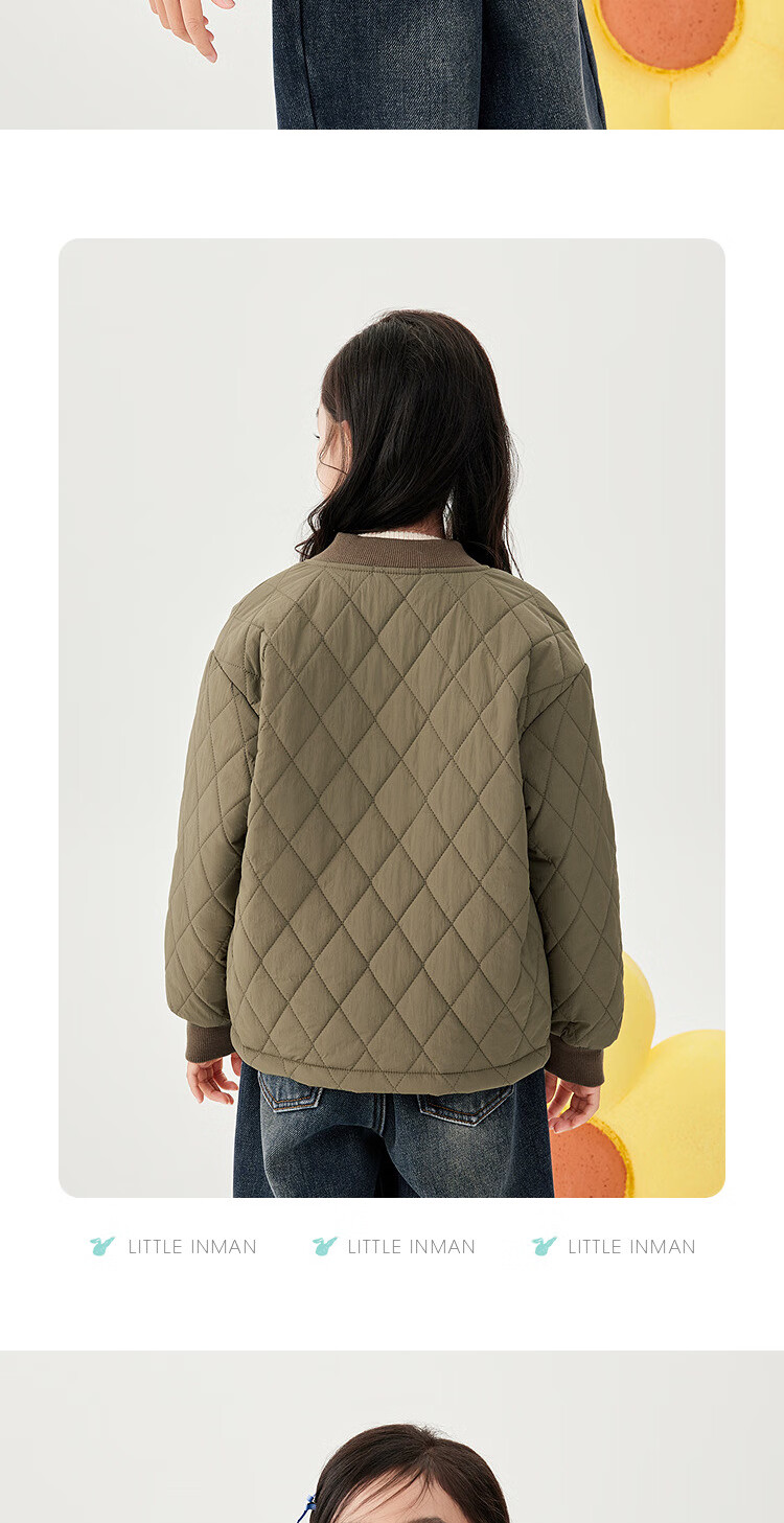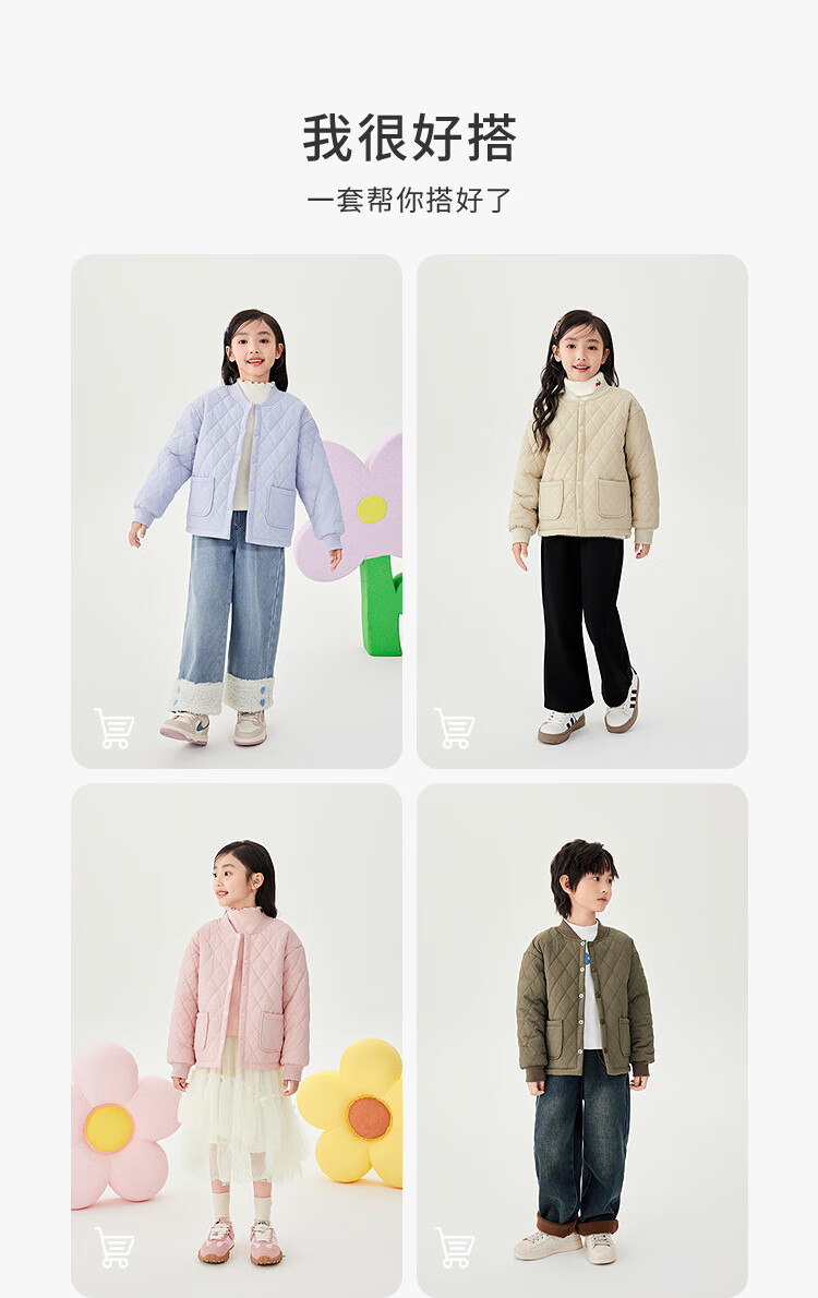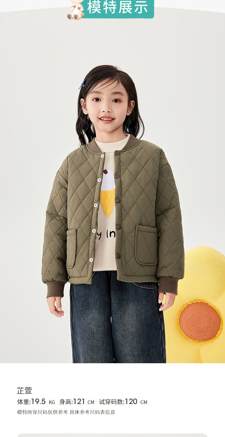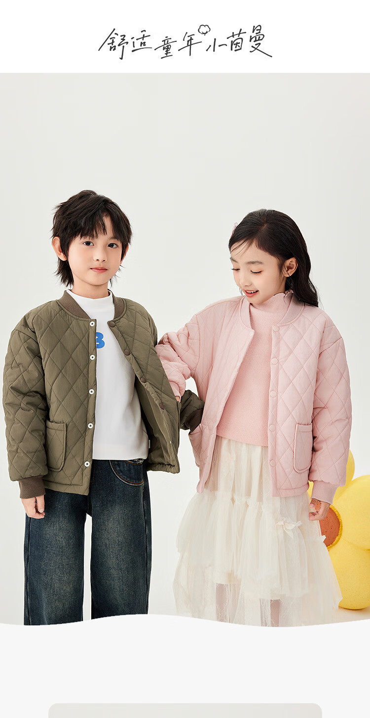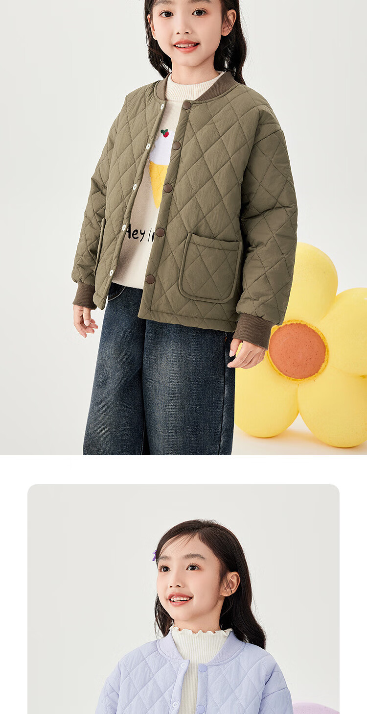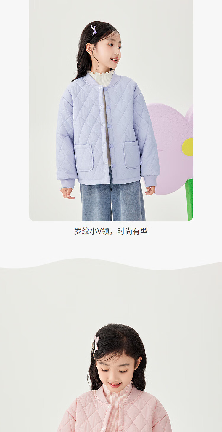 摩芭米男女童轻薄棉服外套棒球服2026秋冬中大童V领休闲外套棉衣 紫色 110