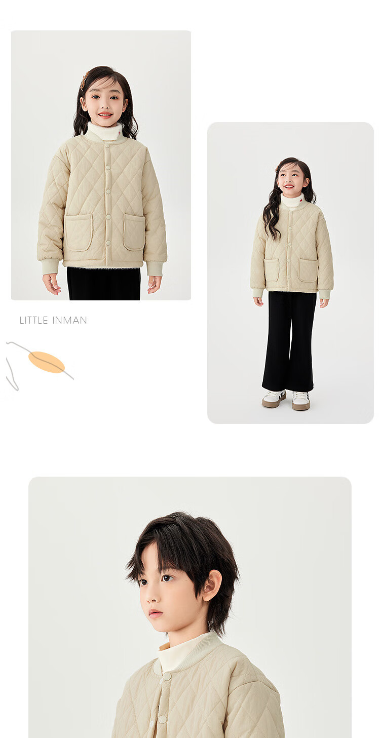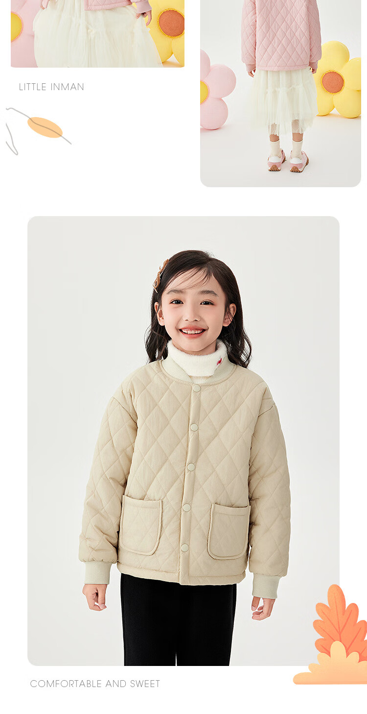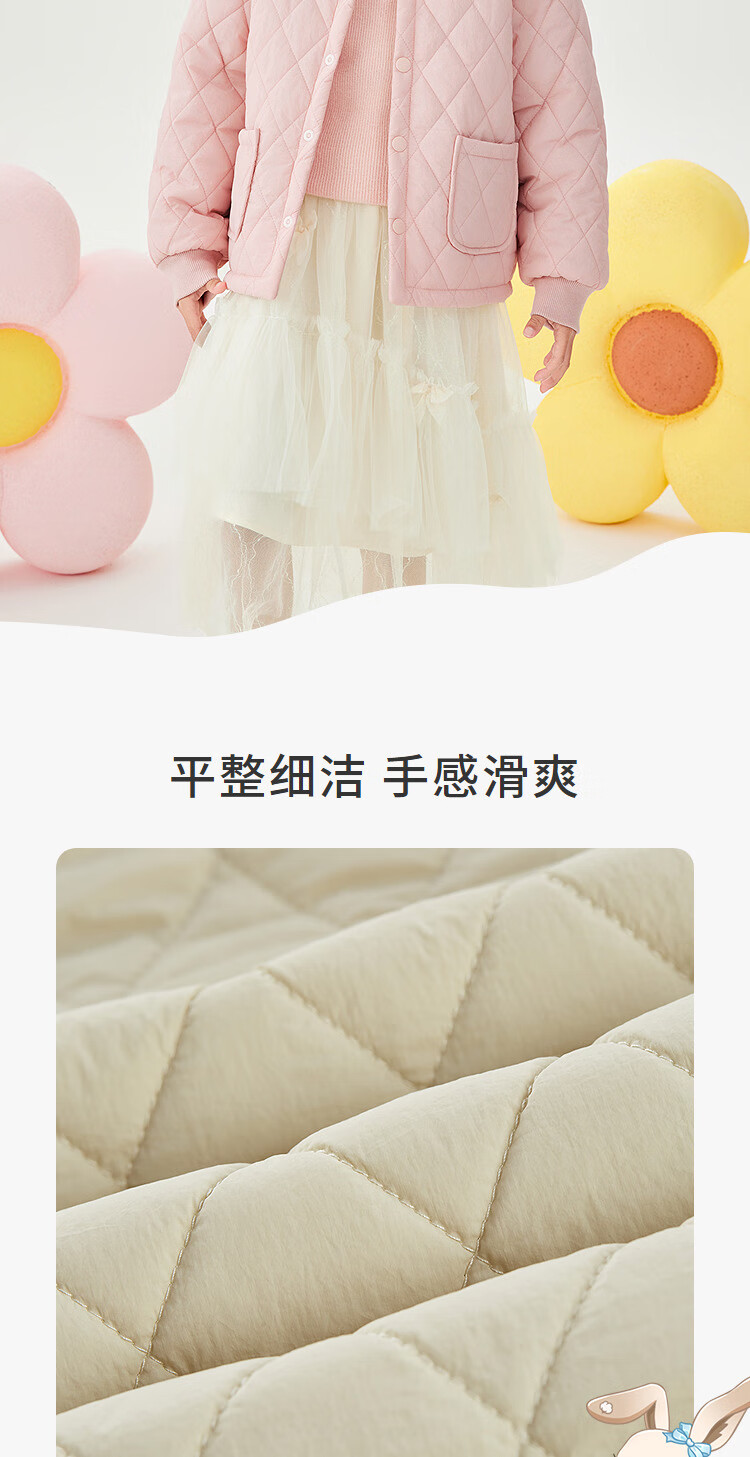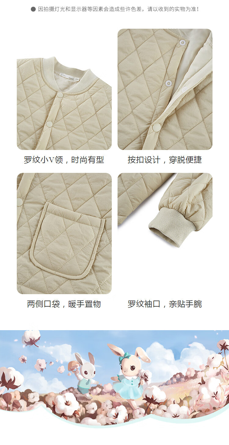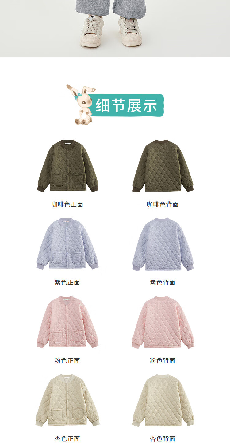 摩芭米男女童轻薄棉服外套棒球服2026秋冬中大童V领休闲外套棉衣 紫色 110