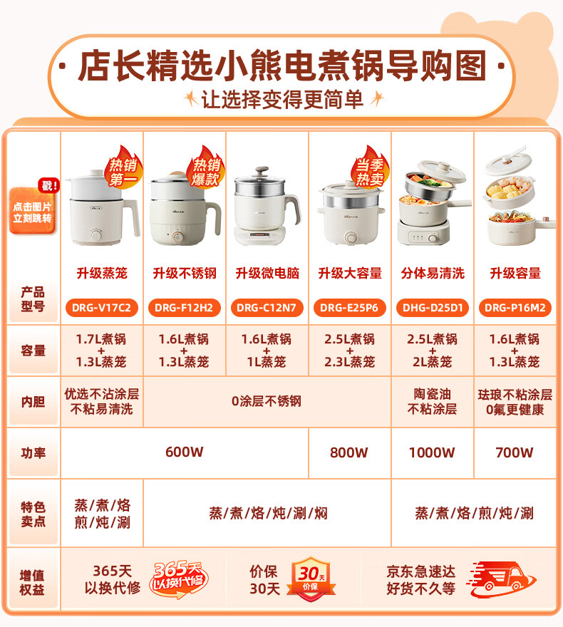 小熊(Bear)电煮锅 小电锅 电蒸锅 电火锅 电热锅分体式 学生宿舍多功能锅 蒸煮煎炒2-3人用 配蒸笼2.5L D25D1
