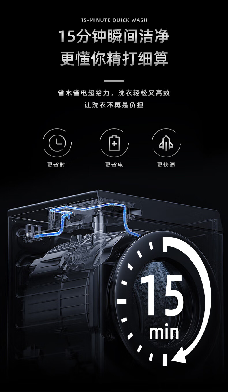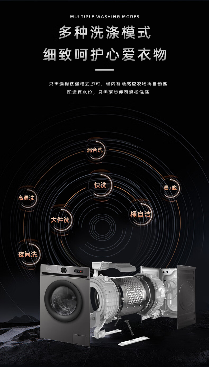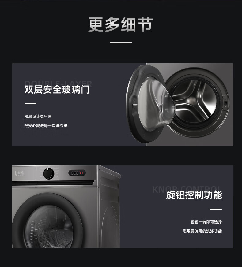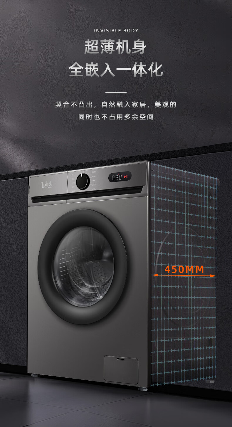乐意RQVA【明星旗舰款】滚筒洗衣机 一级能效变频 全自动超薄节能省电省水家用大容量高端洗脱一体机 8KG钛金灰【上门安装+洗脱一体+节能速净洗】