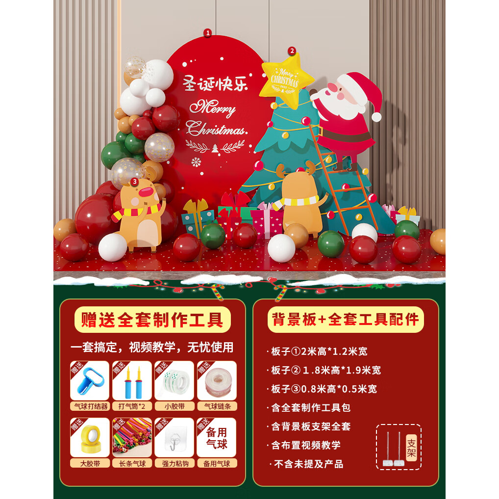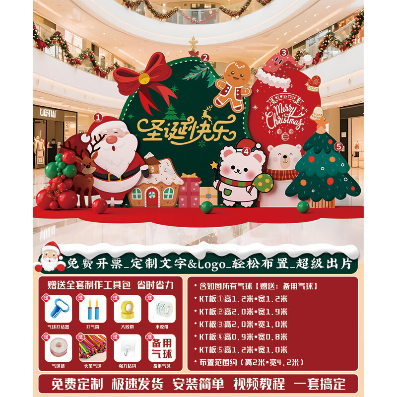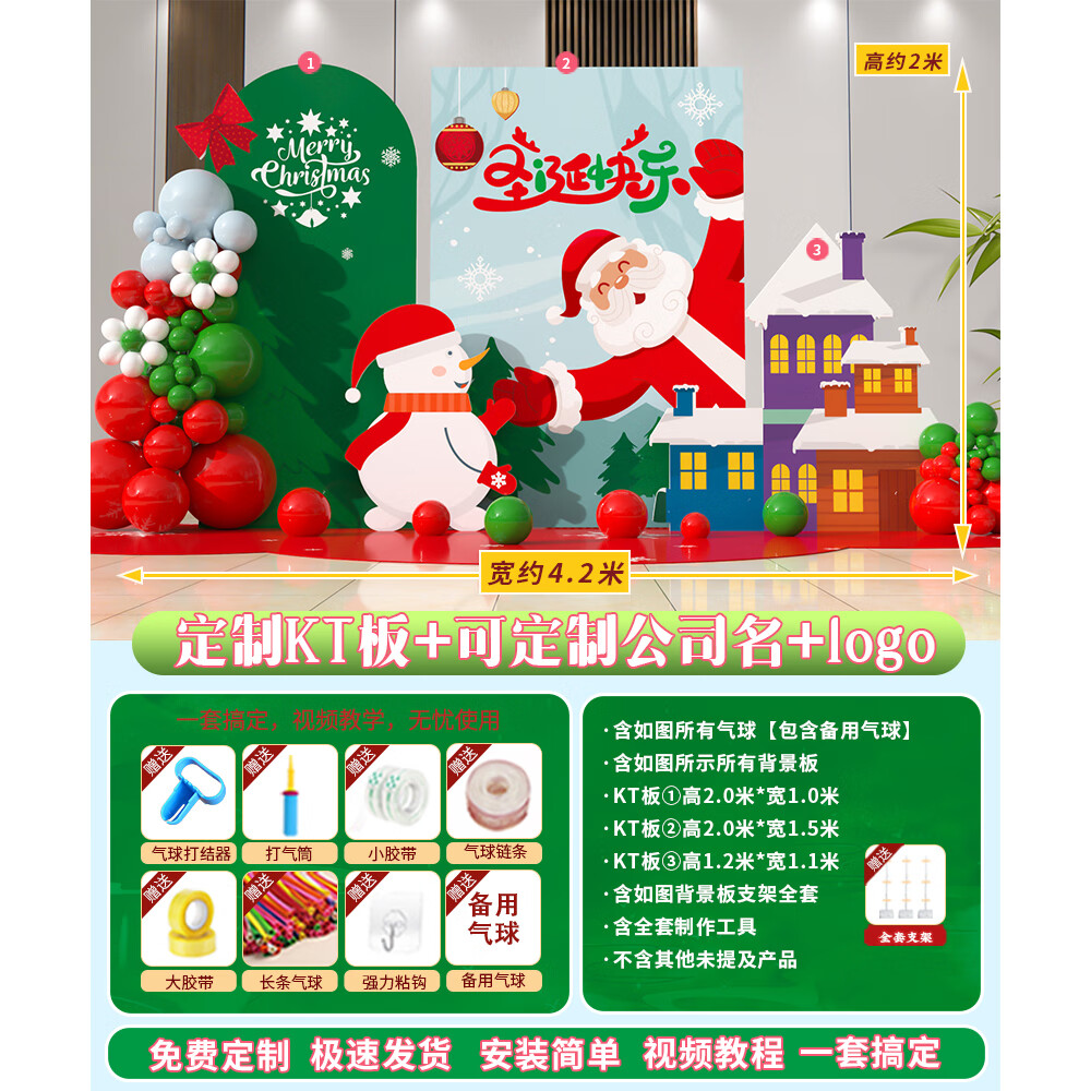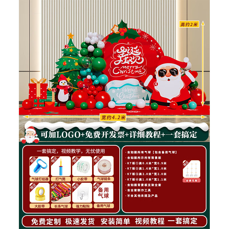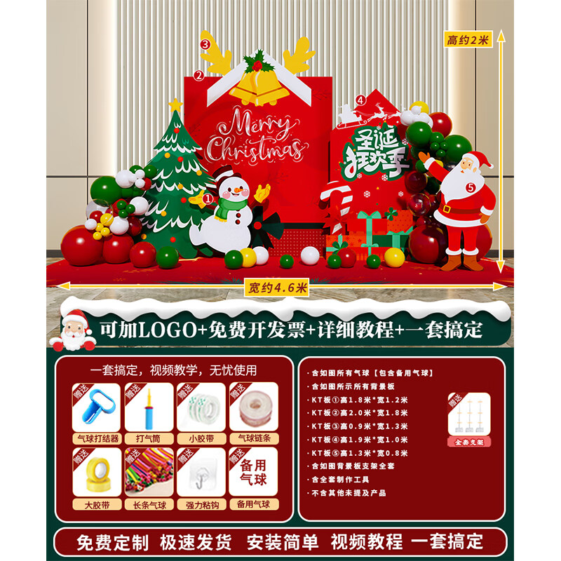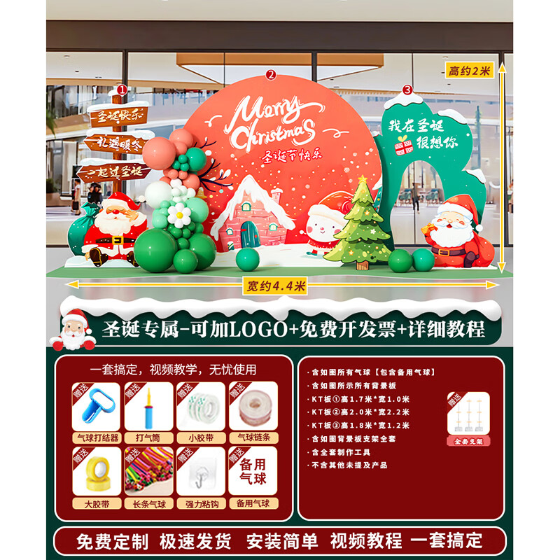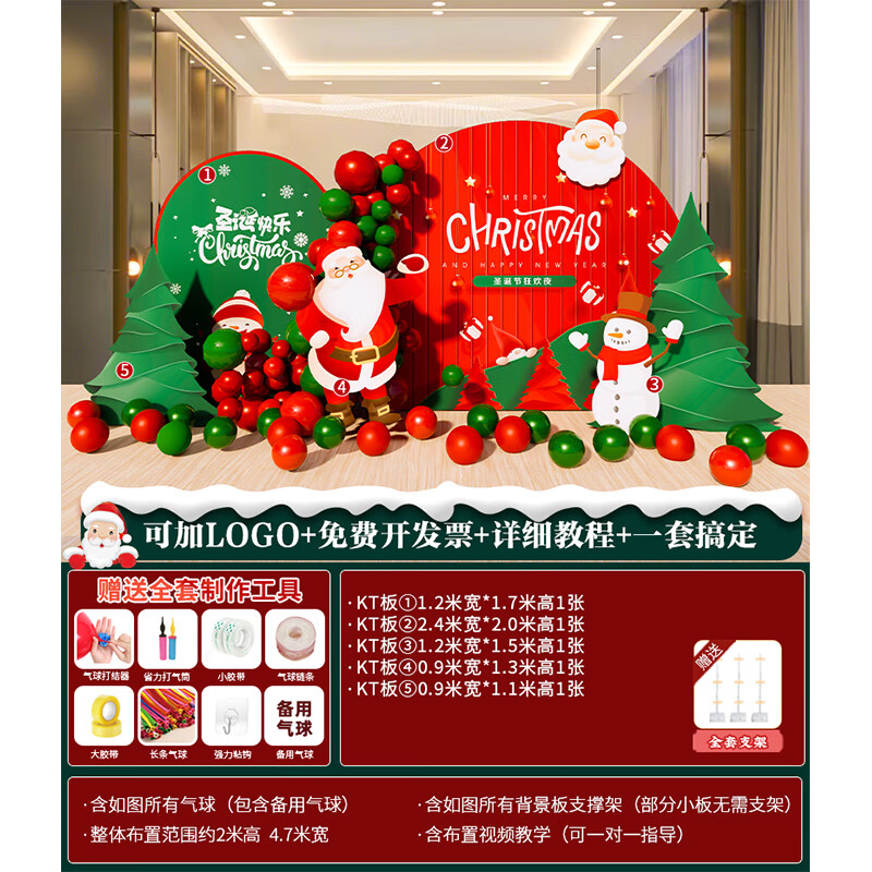 圣诞节KT板装饰品气球场景商场4S店学校派对氛围装扮布置拍照背景 当日发/115款圣诞节背景墙【高2*宽4.2】
