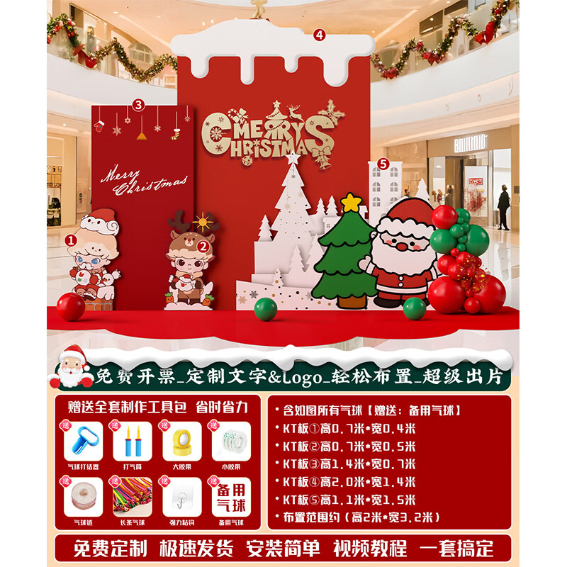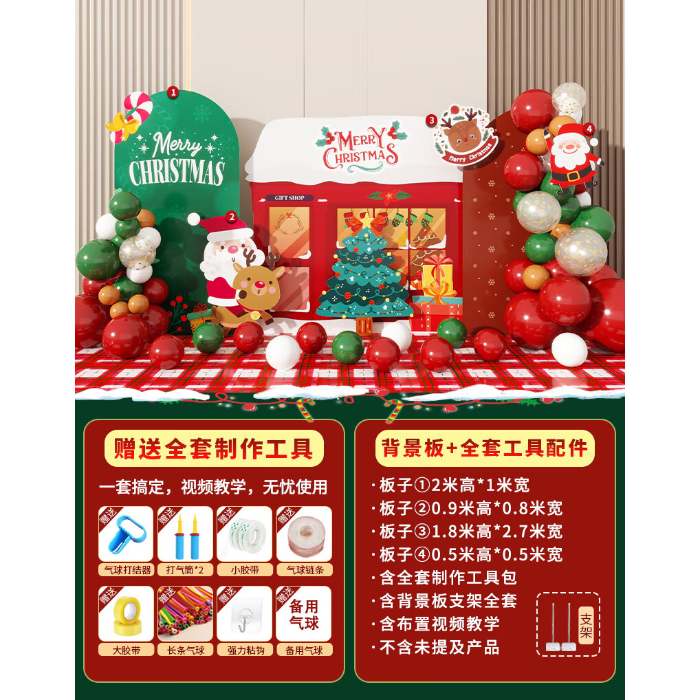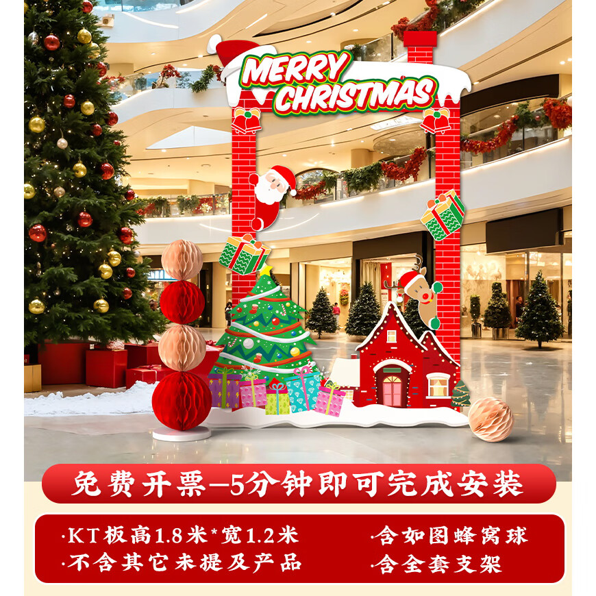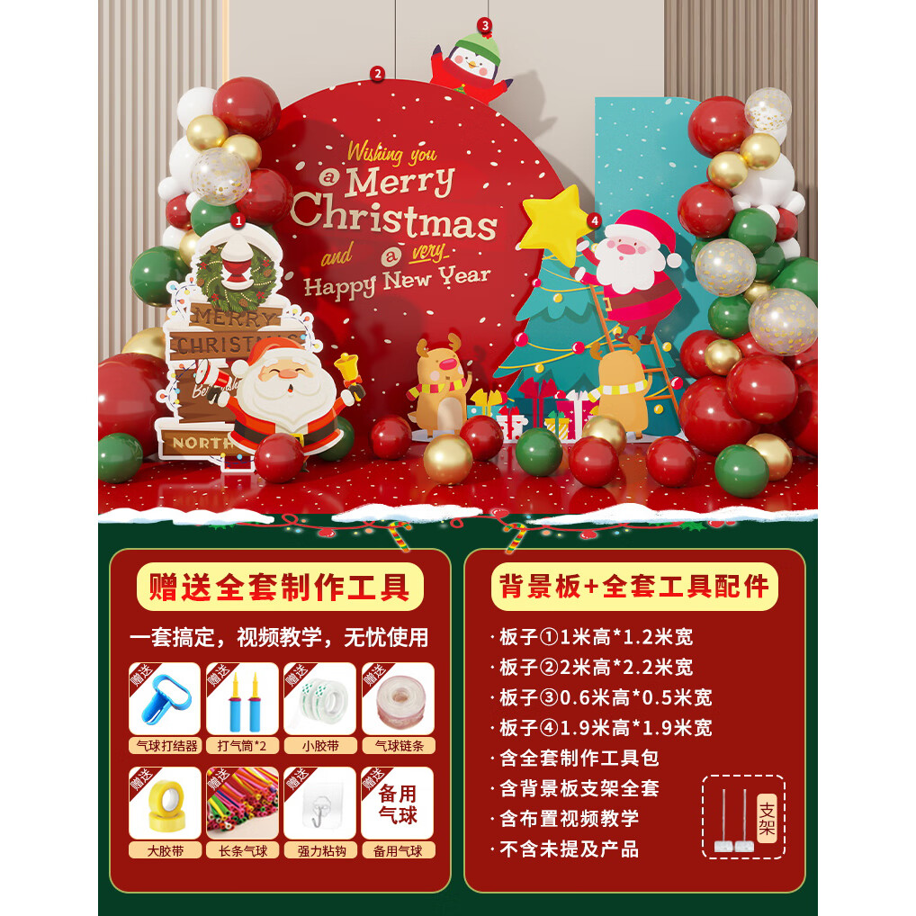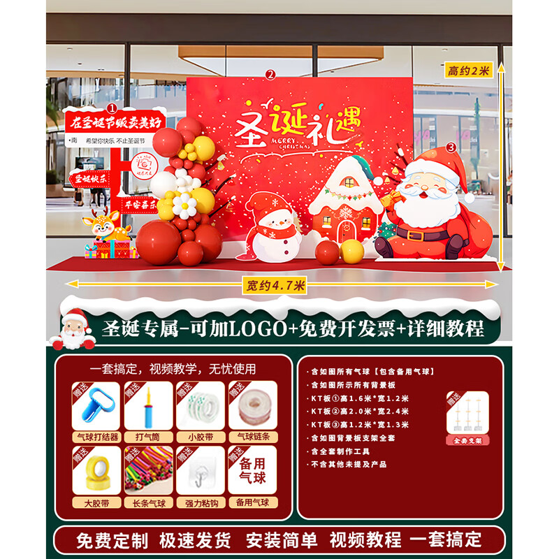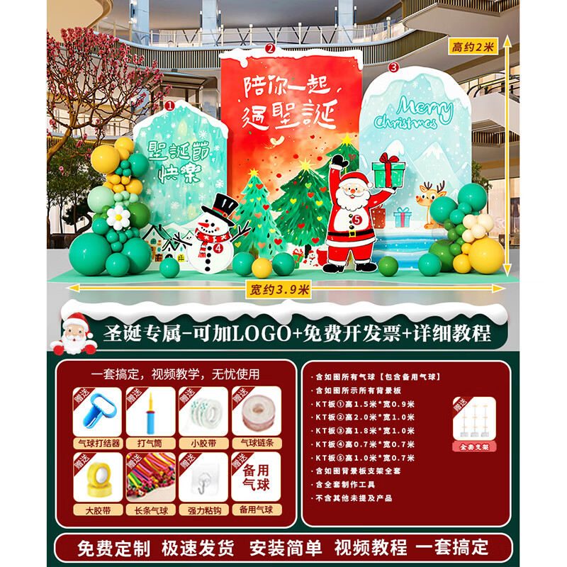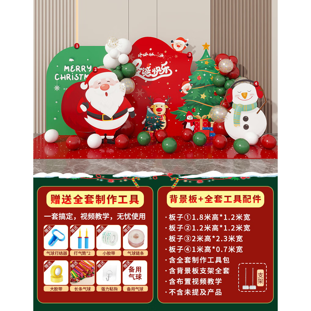 圣诞节KT板装饰品气球场景商场4S店学校派对氛围装扮布置拍照背景 当日发/115款圣诞节背景墙【高2*宽4.2】
