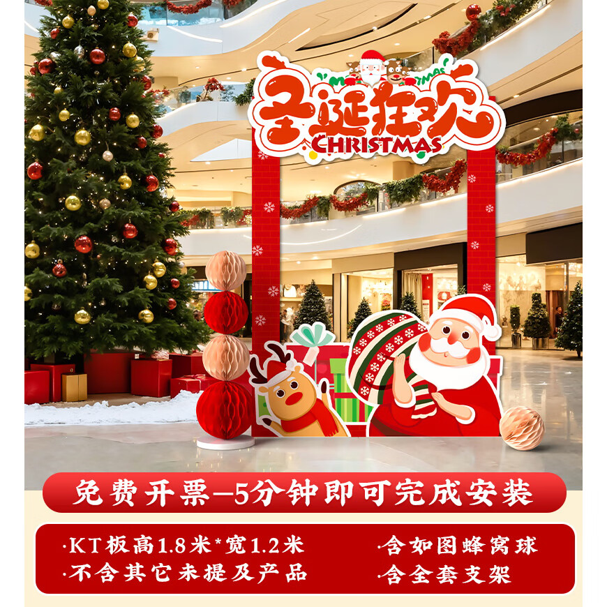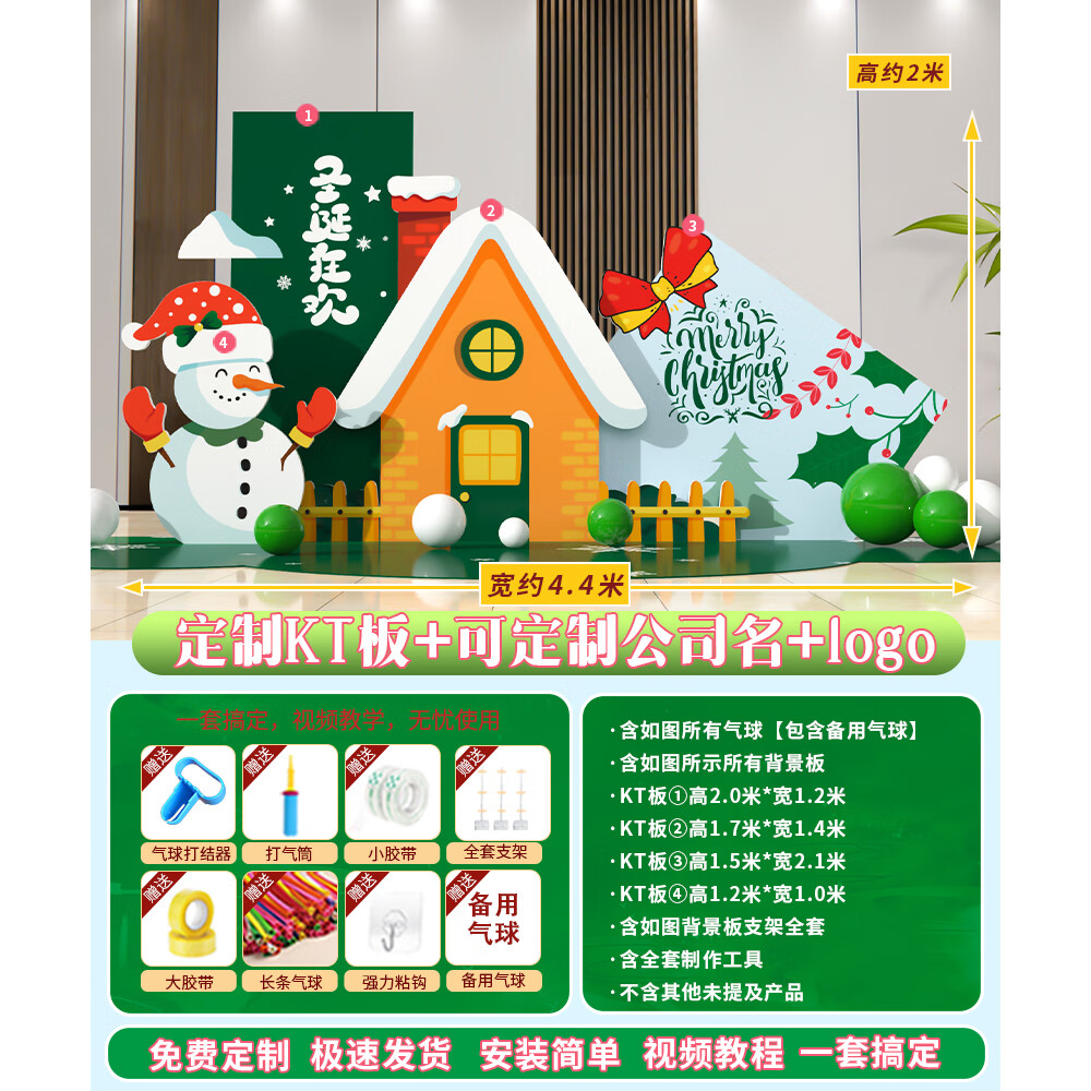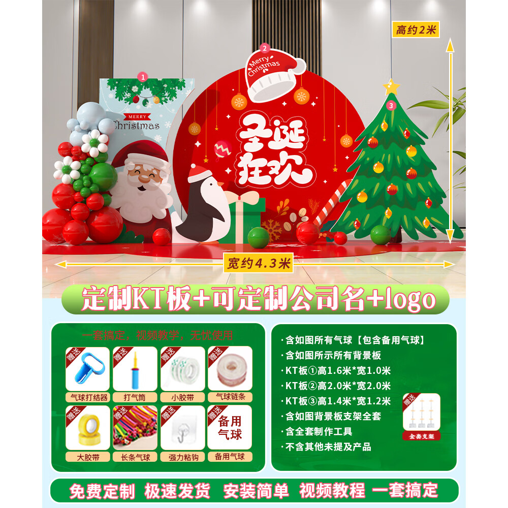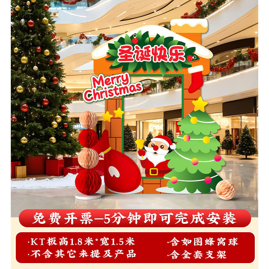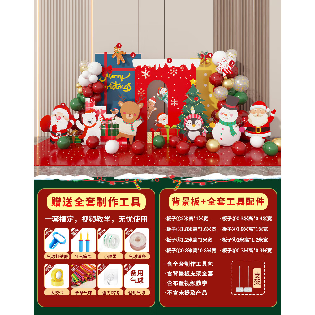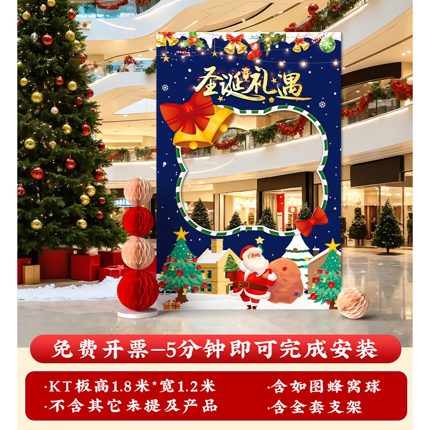 圣诞节KT板装饰品气球场景商场4S店学校派对氛围装扮布置拍照背景 当日发/115款圣诞节背景墙【高2*宽4.2】