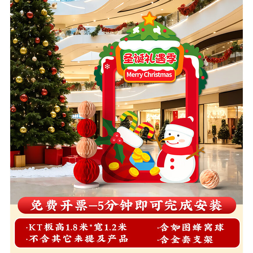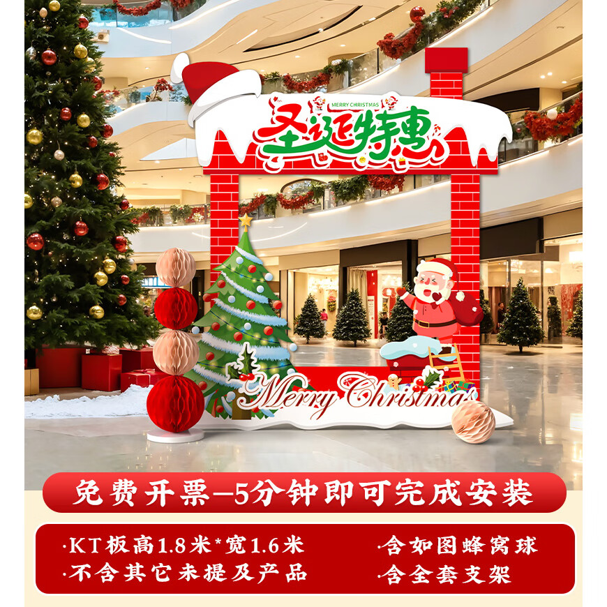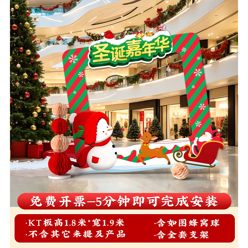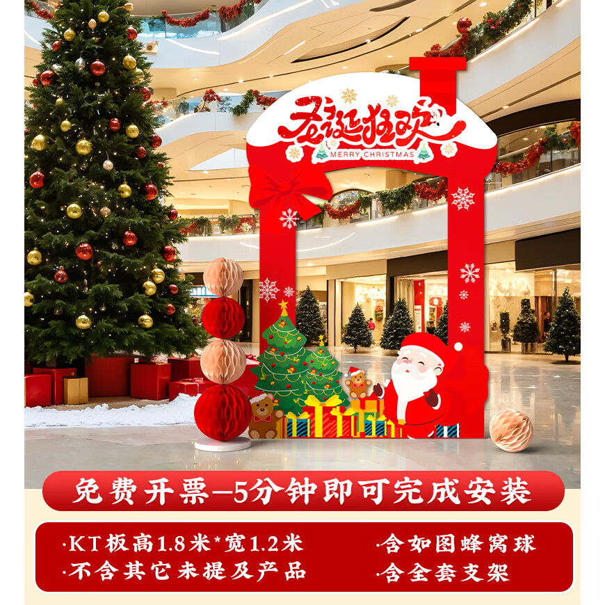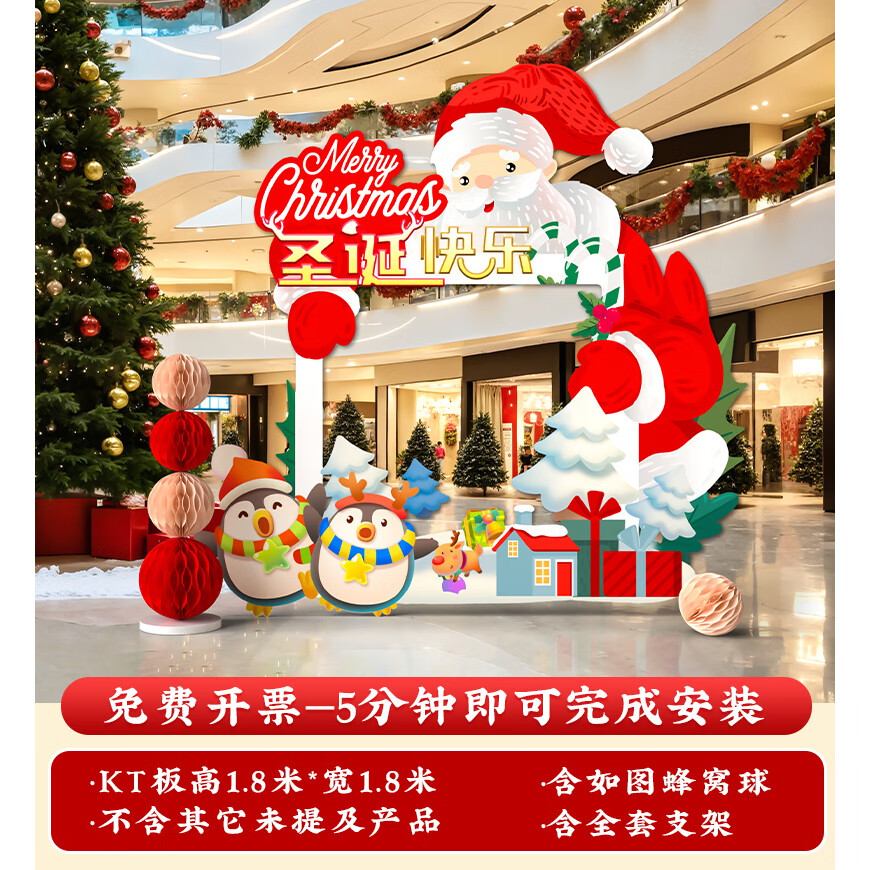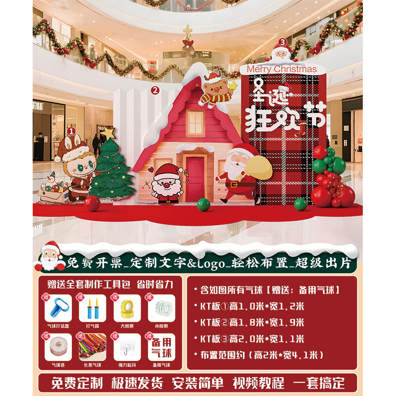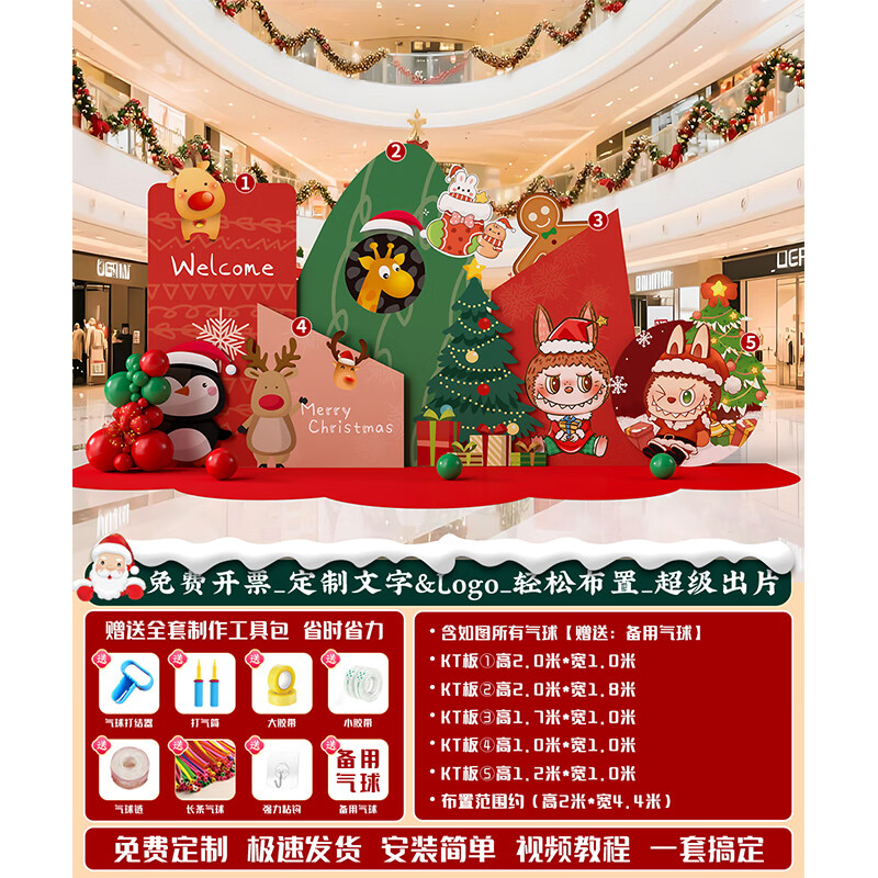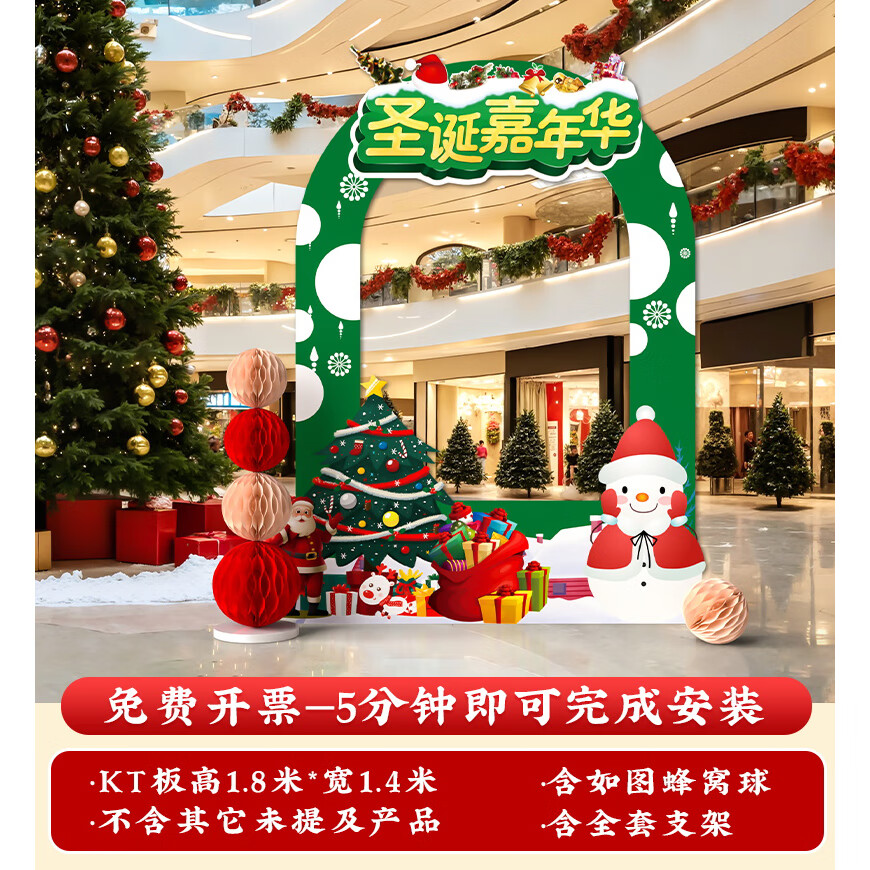 圣诞节KT板装饰品气球场景商场4S店学校派对氛围装扮布置拍照背景 当日发/115款圣诞节背景墙【高2*宽4.2】