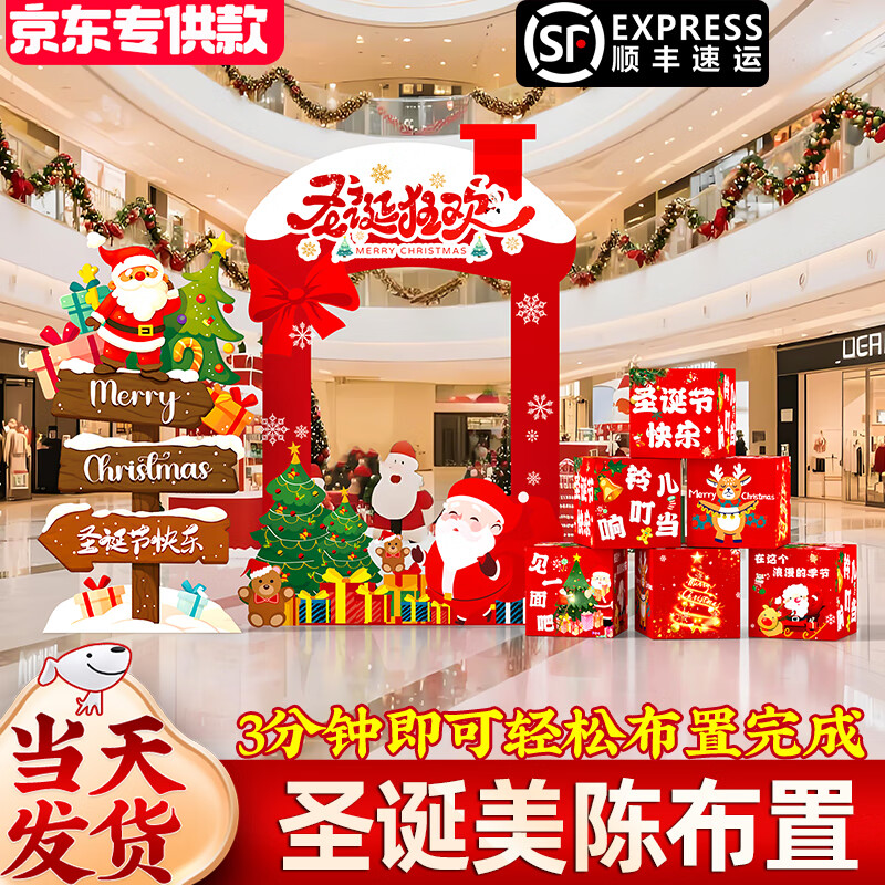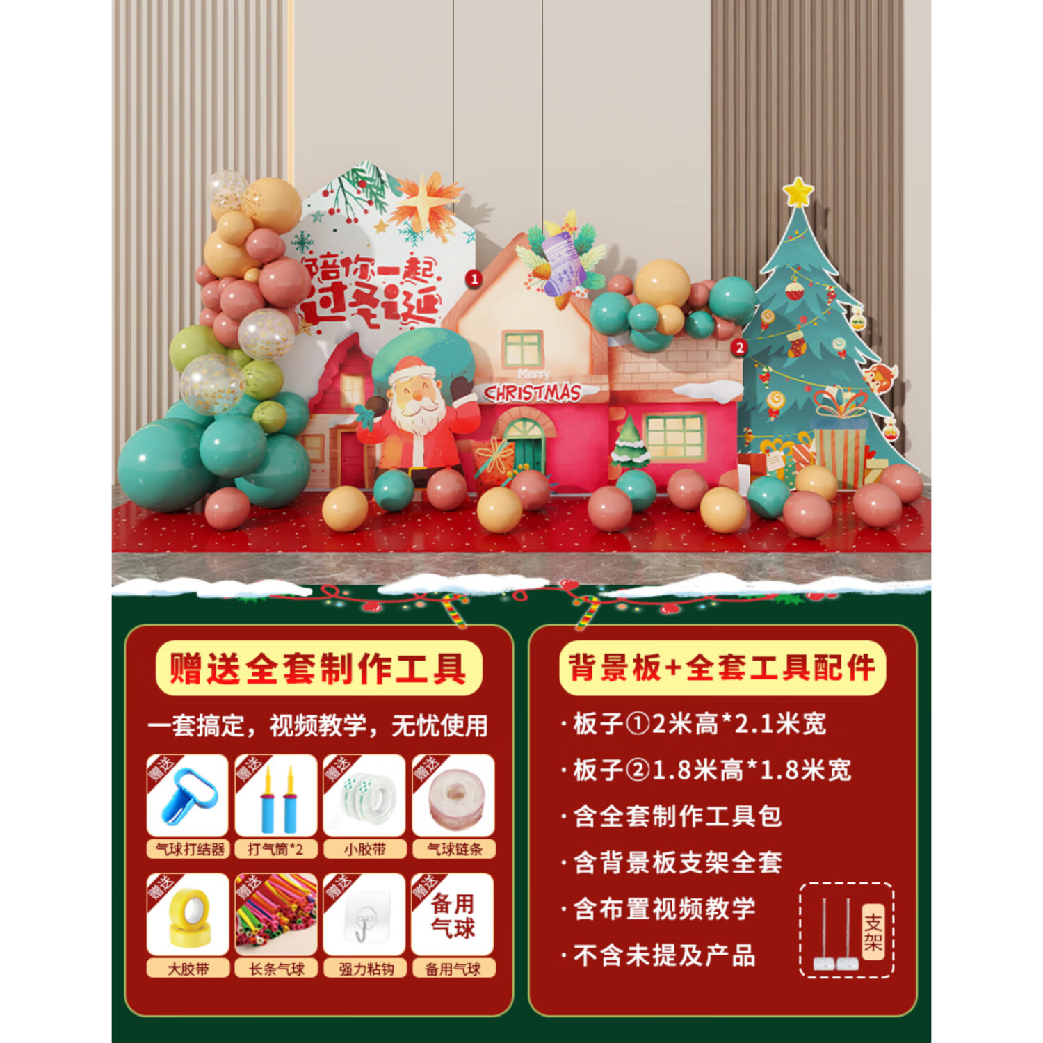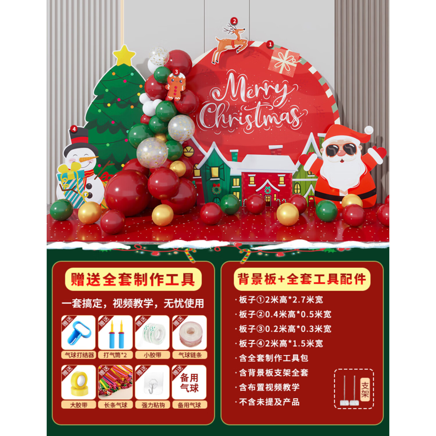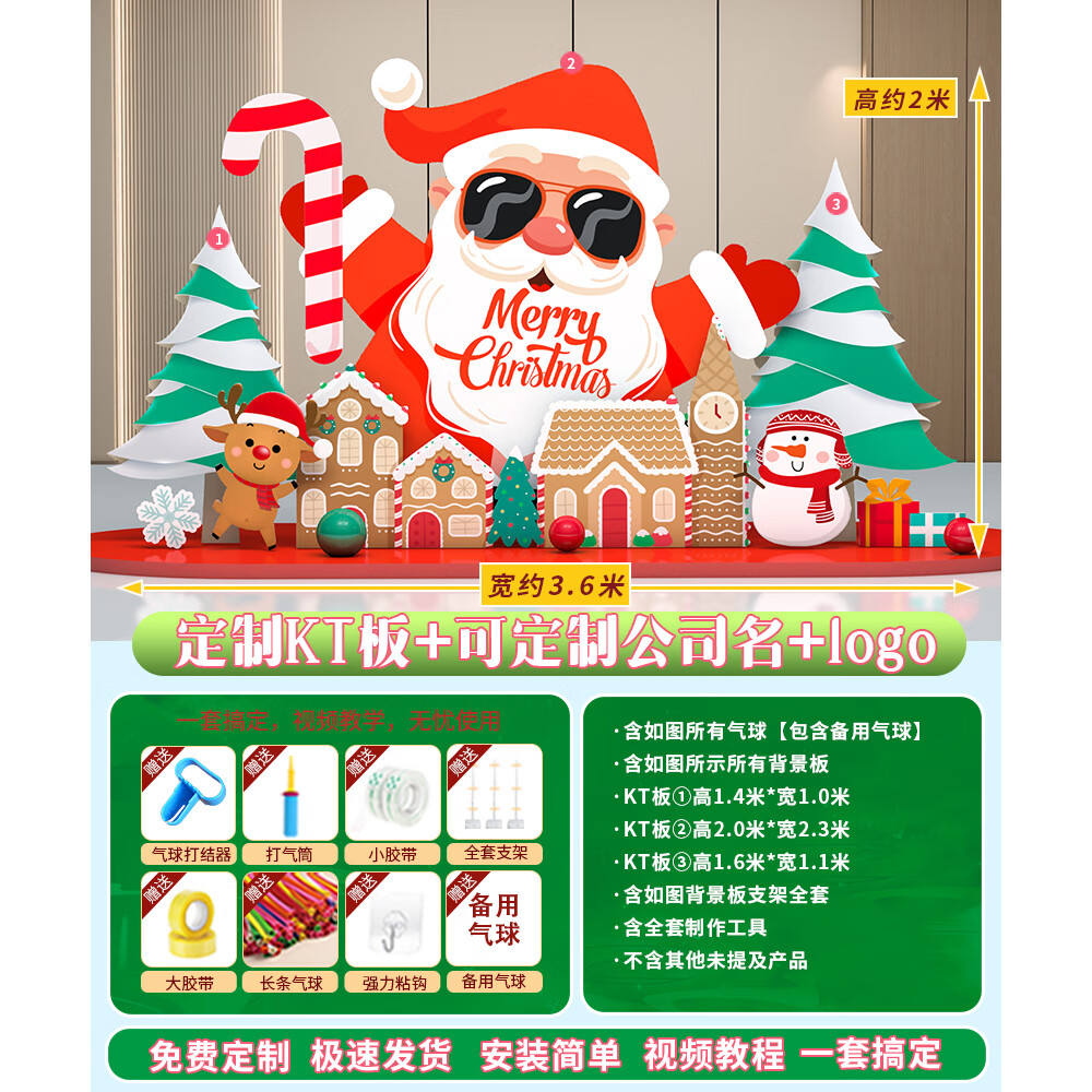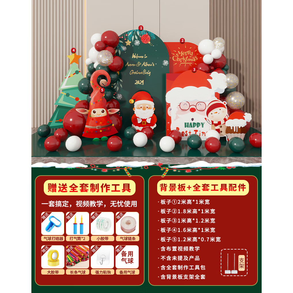 圣诞节KT板装饰品气球场景商场4S店学校派对氛围装扮布置拍照背景 当日发/115款圣诞节背景墙【高2*宽4.2】