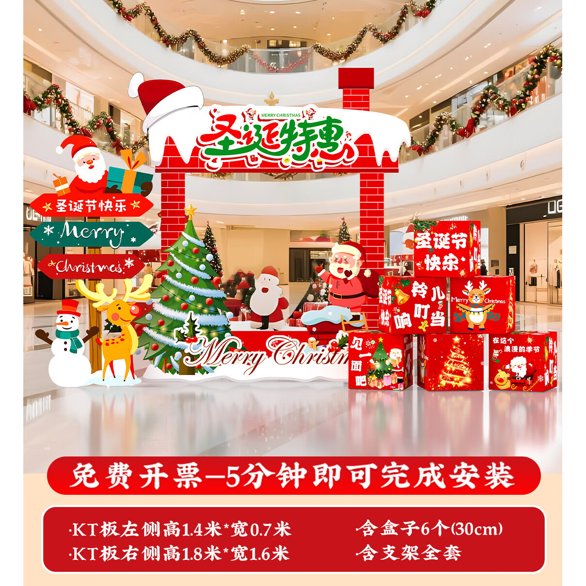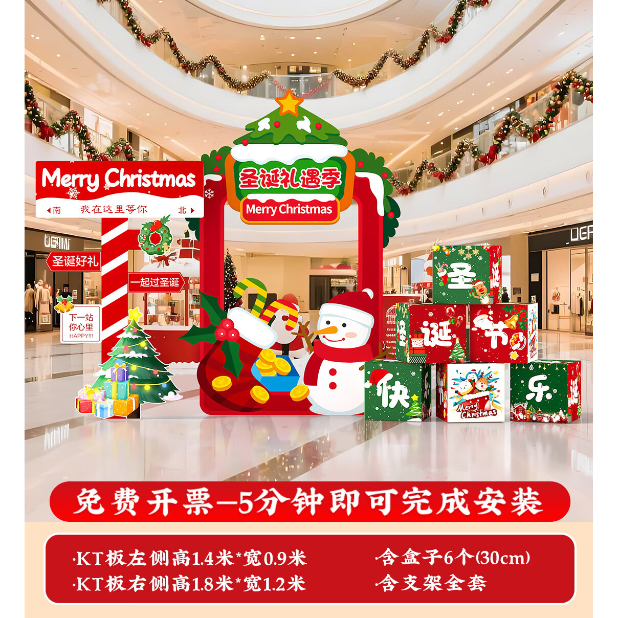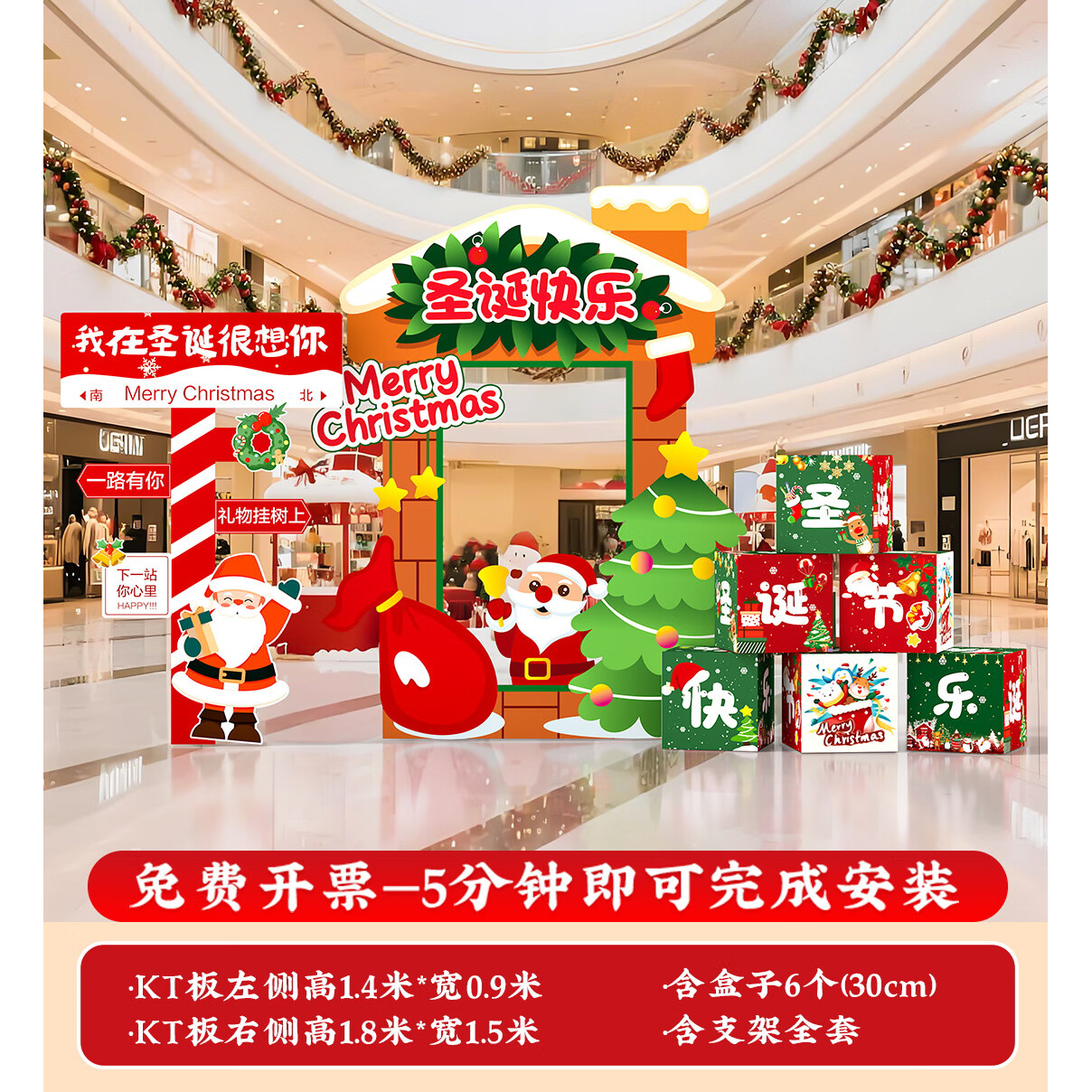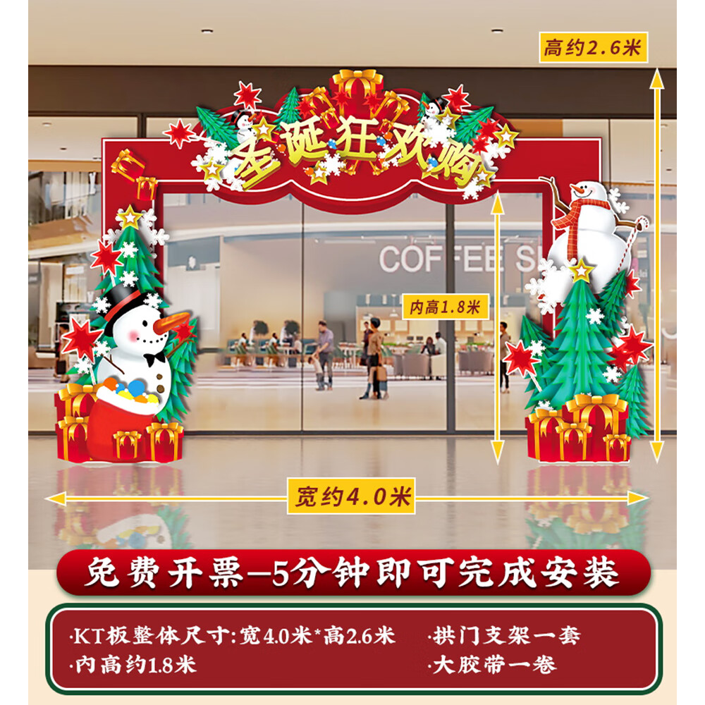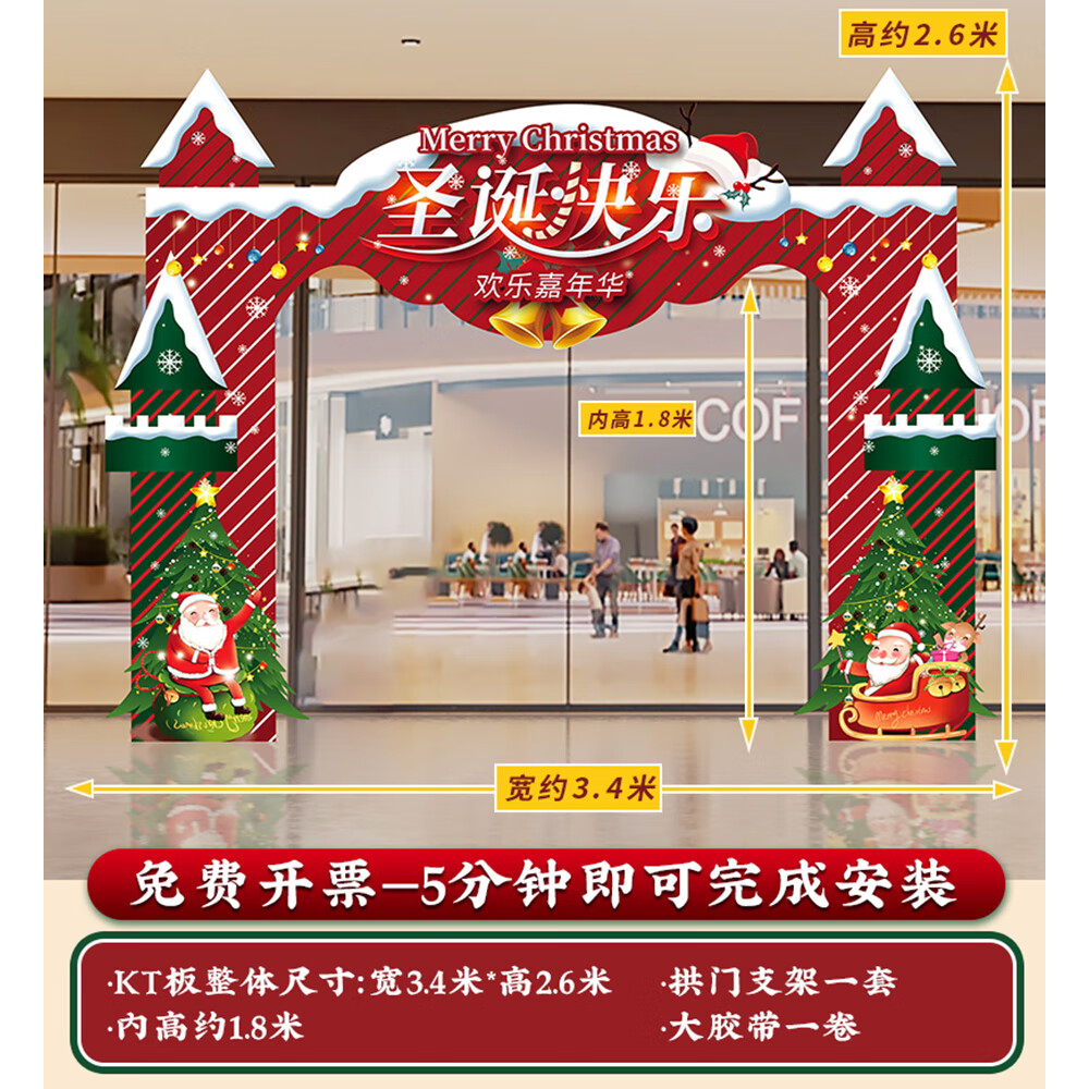 圣诞节KT板装饰品气球场景商场4S店学校派对氛围装扮布置拍照背景 当日发/115款圣诞节背景墙【高2*宽4.2】