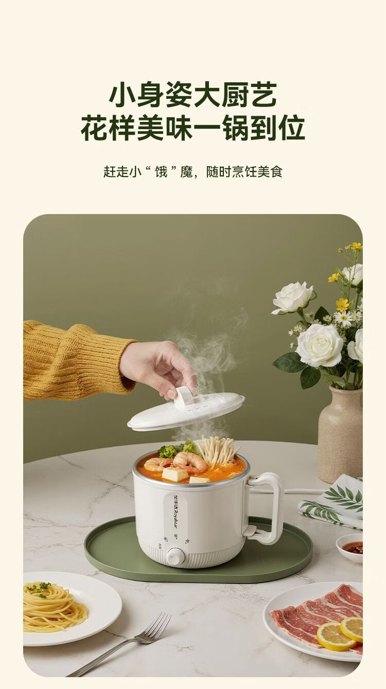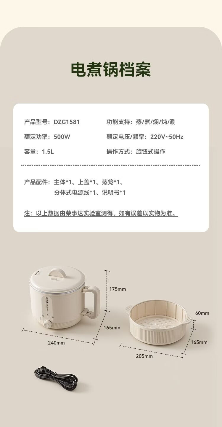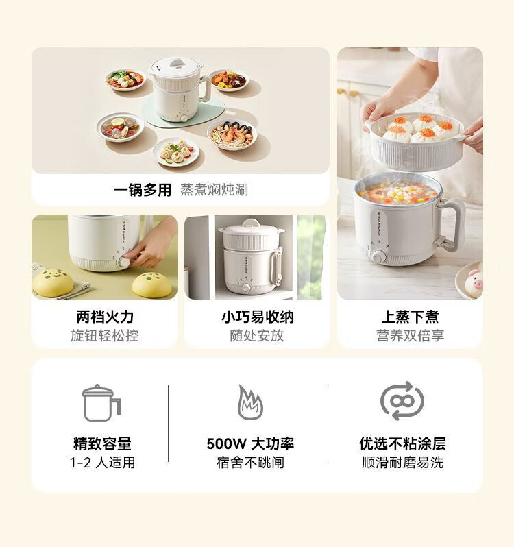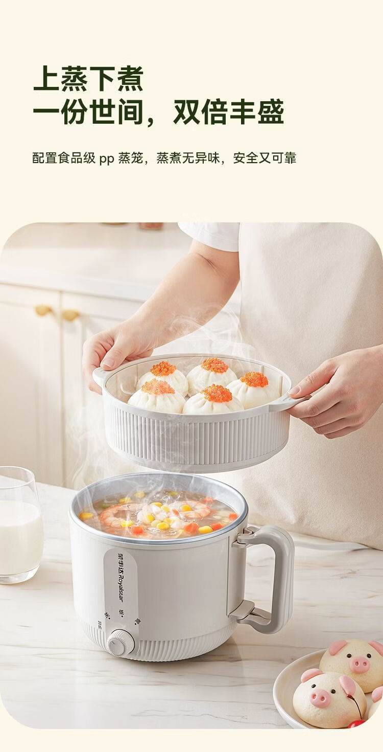 电煮锅多功能迷你泡面锅快煮锅学生宿舍家用泡面锅多功能迷你小型蒸煮折叠手柄火锅 1.5L 升级钛内胆折叠手柄【蒸笼】