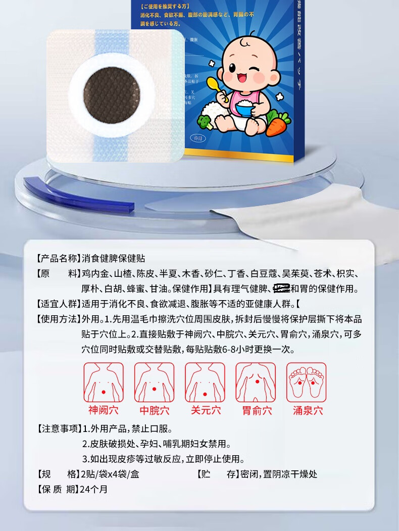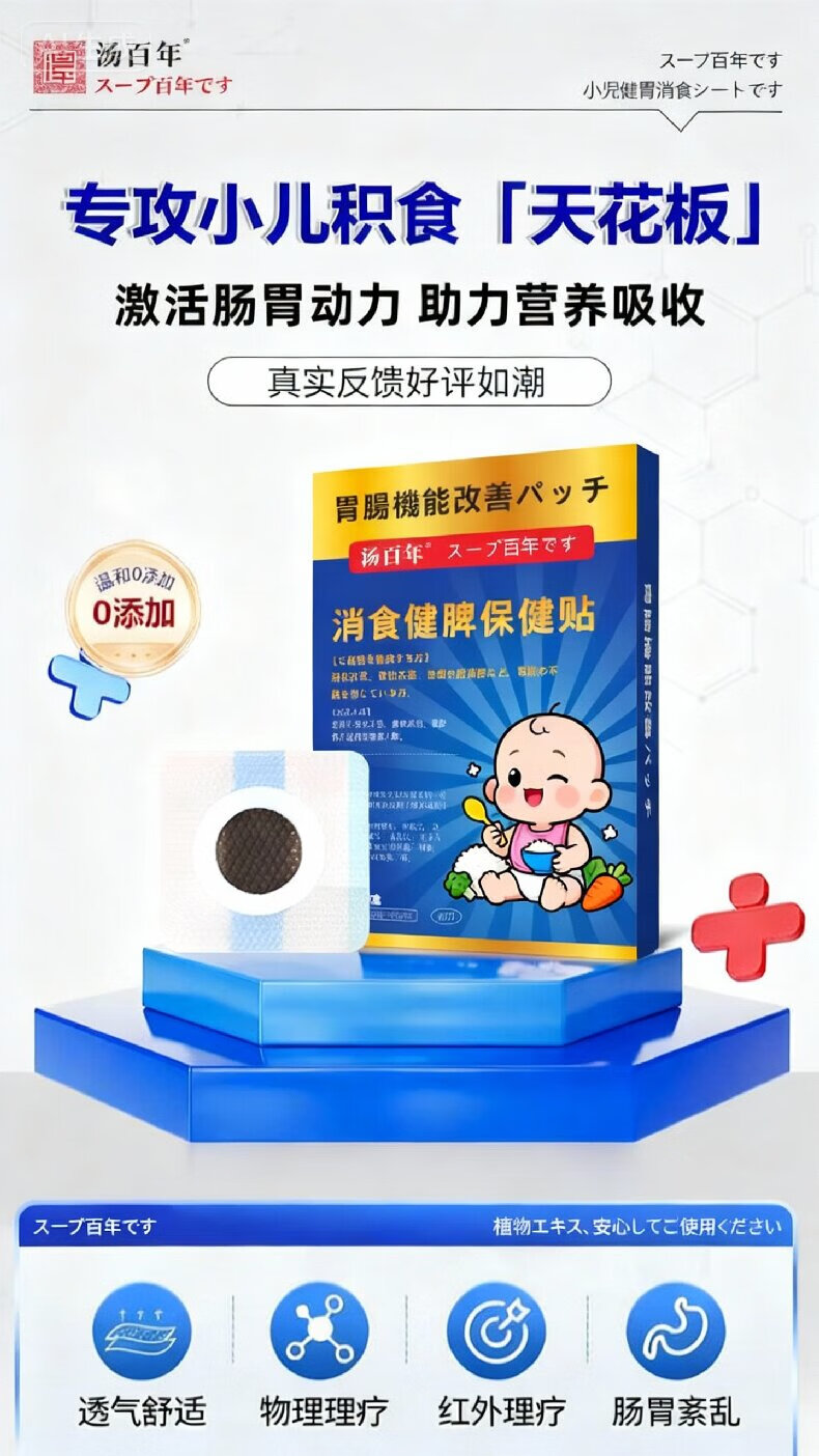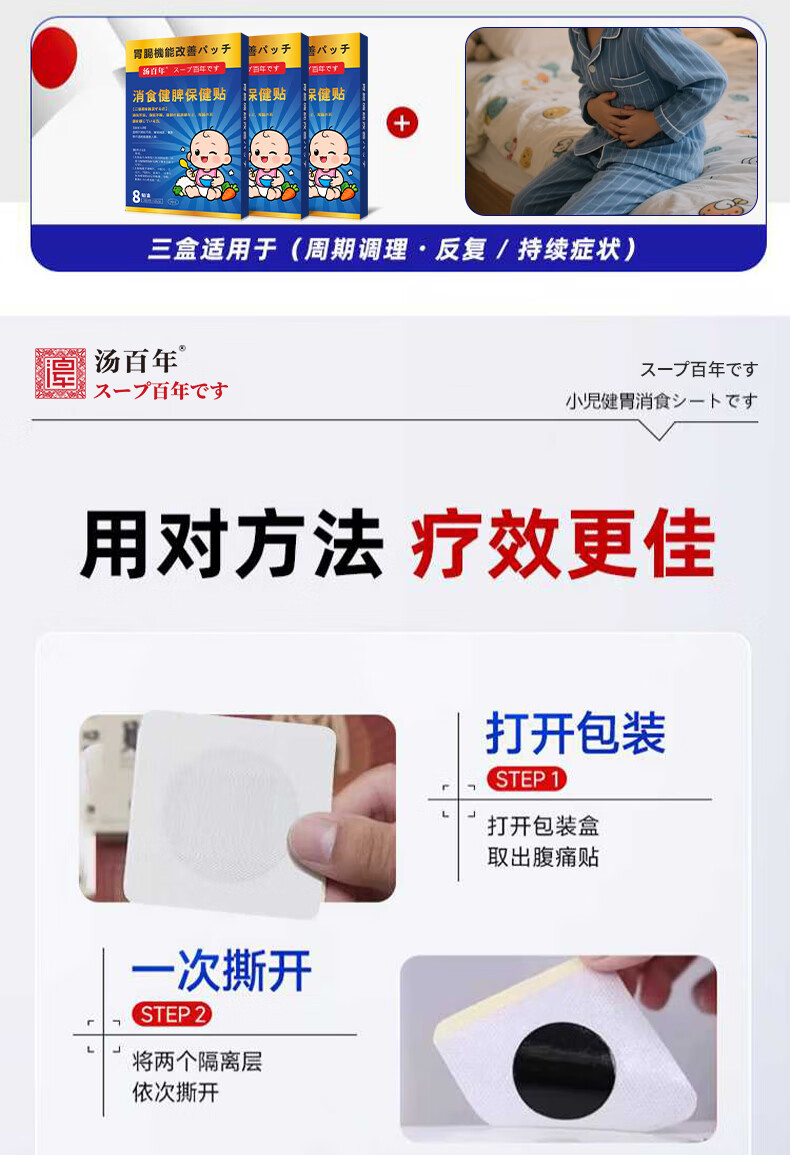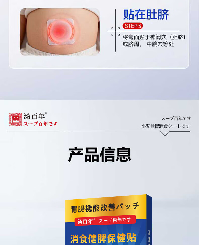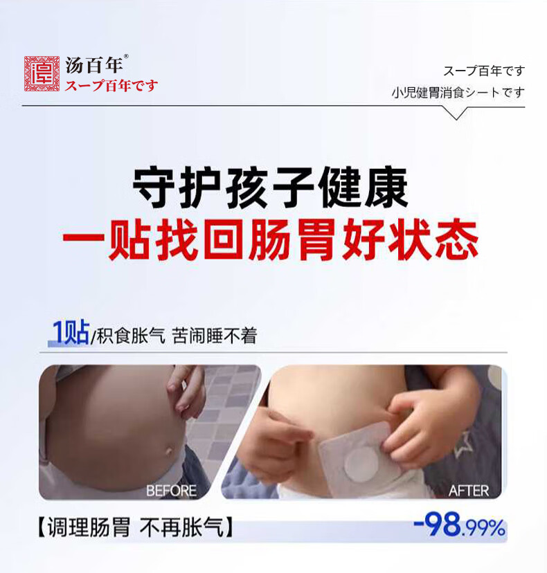 汤百年鸡内金健脾消食贴婴幼儿健胃消化消食贴宝宝肠胃贴消化不良清内热 一盒装【脾胃双调 初见成效】 调理脾胃消化不良肚脐贴