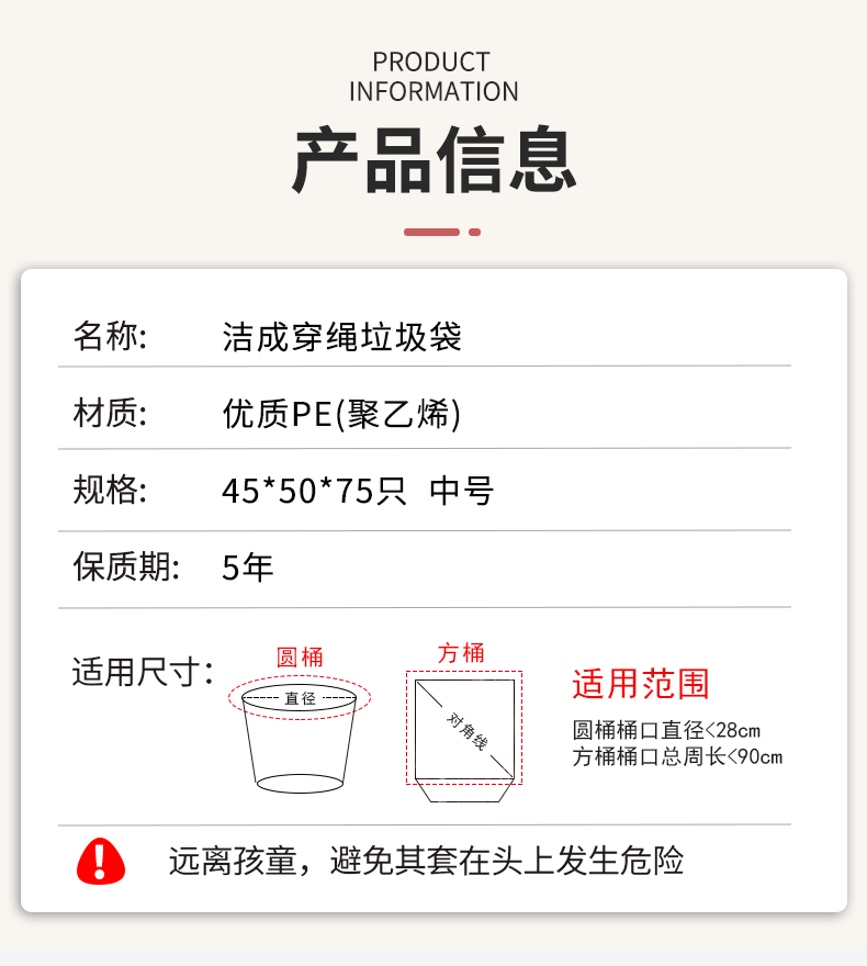 洁成抽绳垃圾袋加厚自动收口45cm*50cm (加厚款)抽绳50cm*45cm*150只