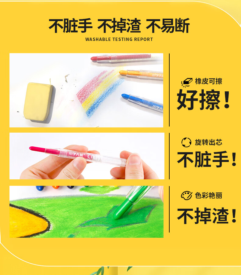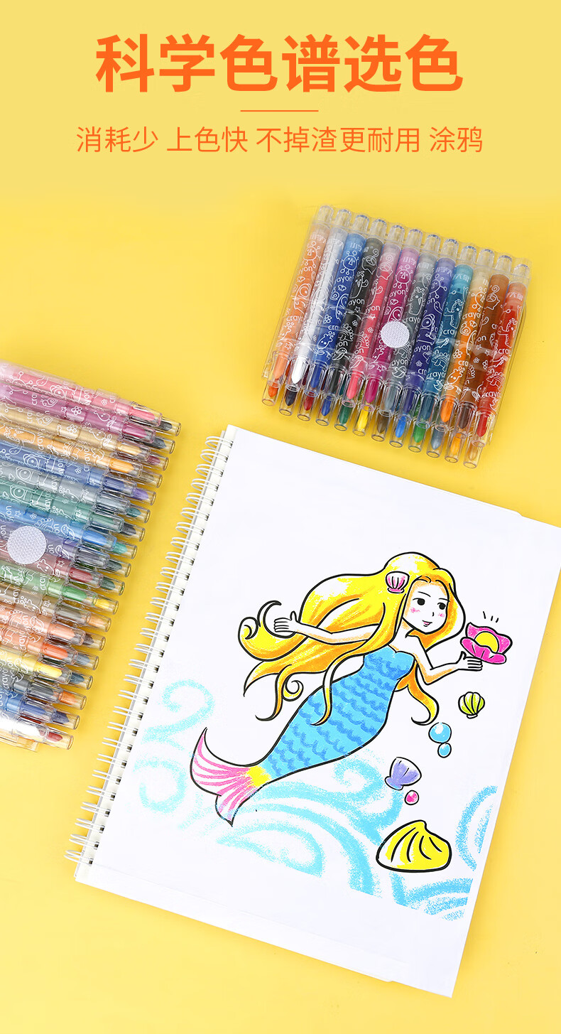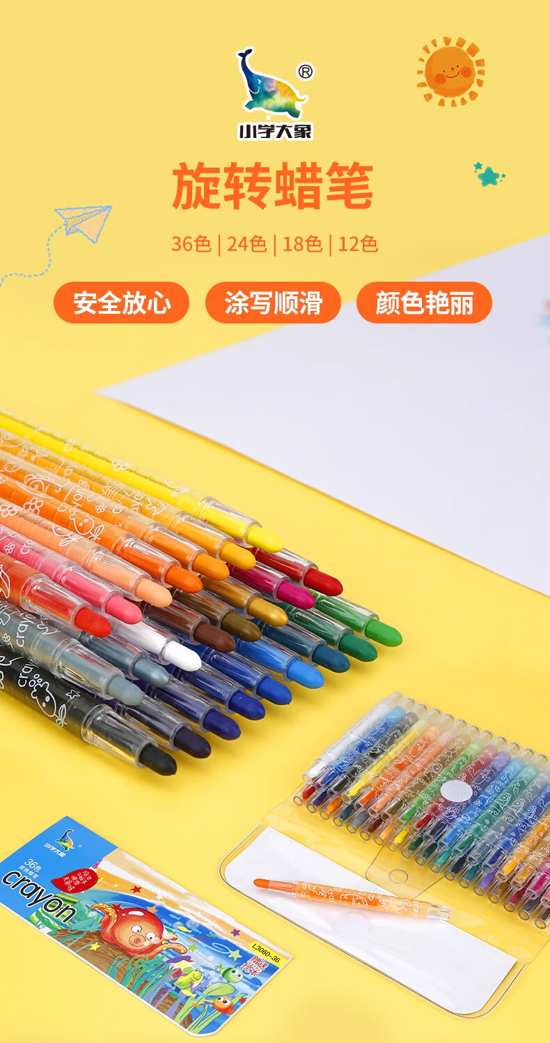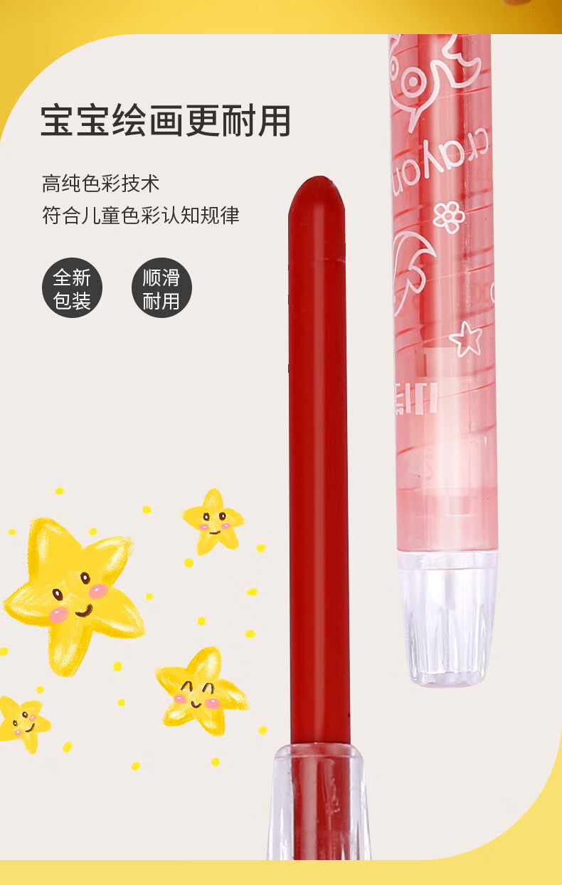 乐普升儿童旋转蜡笔不脏手小学生开学用品美术丝滑油画棒12色旋彩棒 L3007美育工具