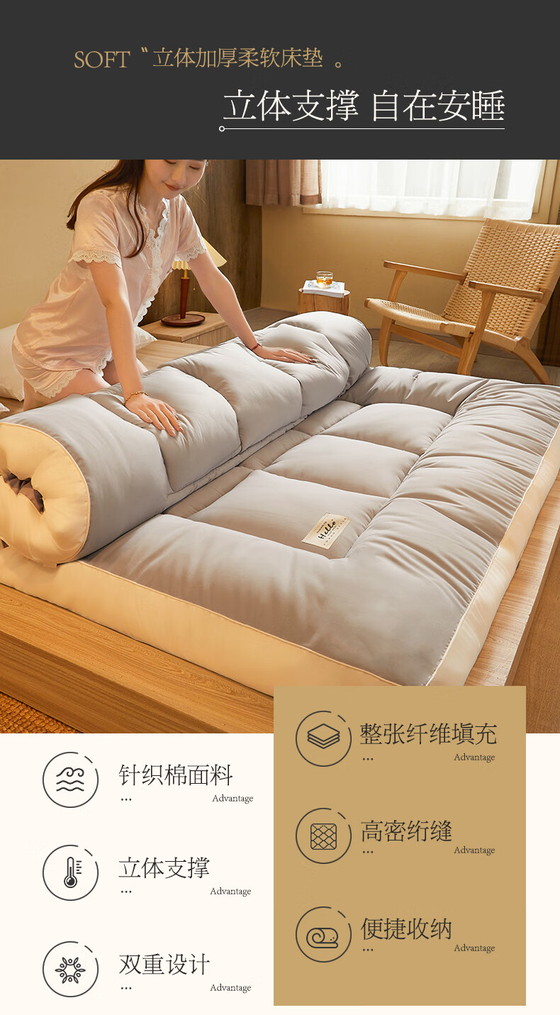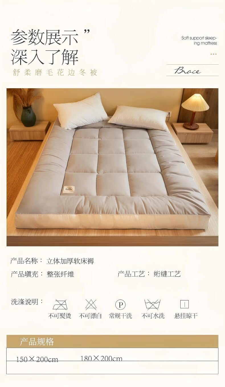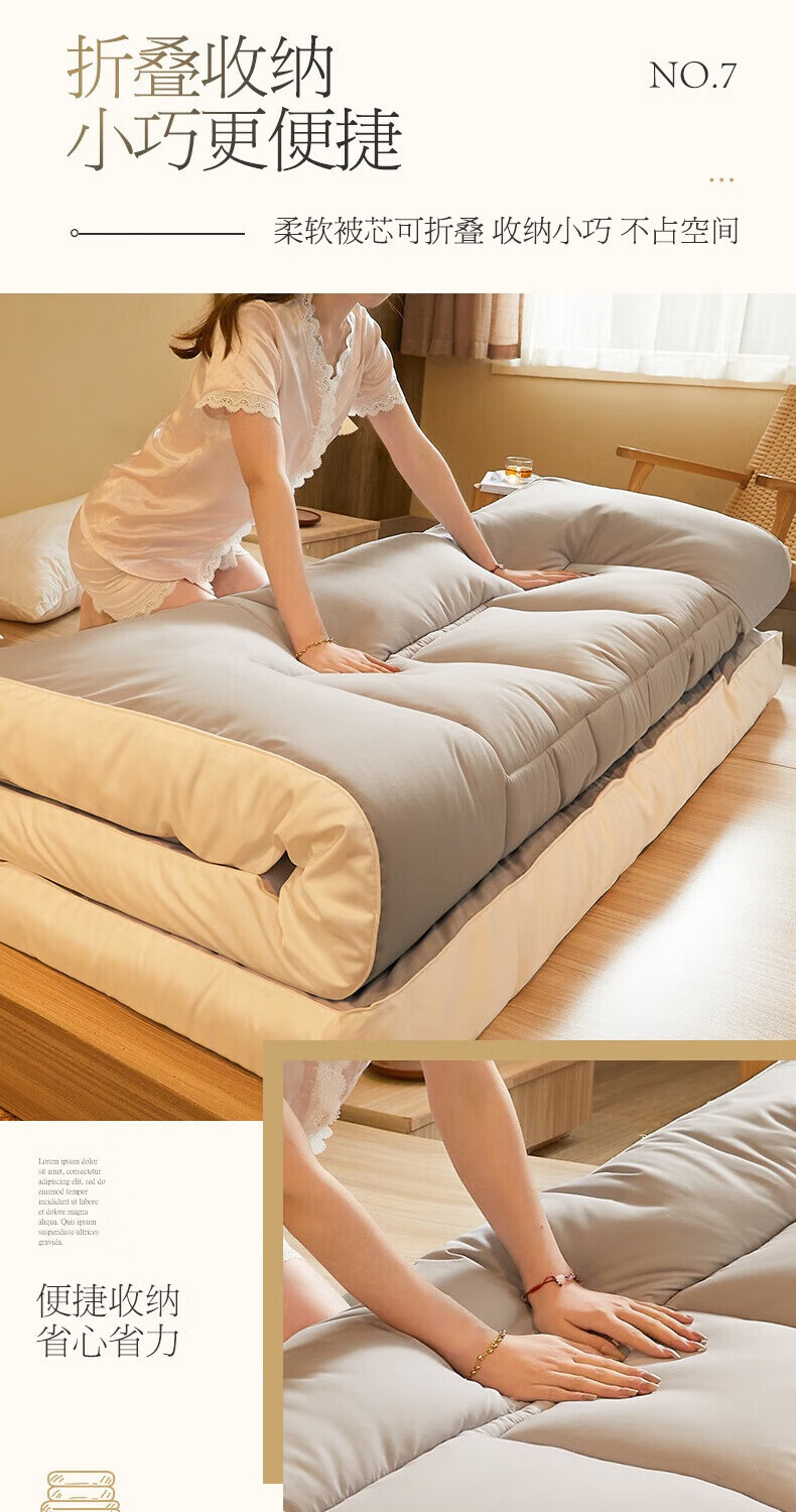 无印良品榻榻米床垫遮盖物床褥子双人学生宿舍家用垫被折叠被褥 白拼深灰【仿羊羔绒面料】 150*200cm
