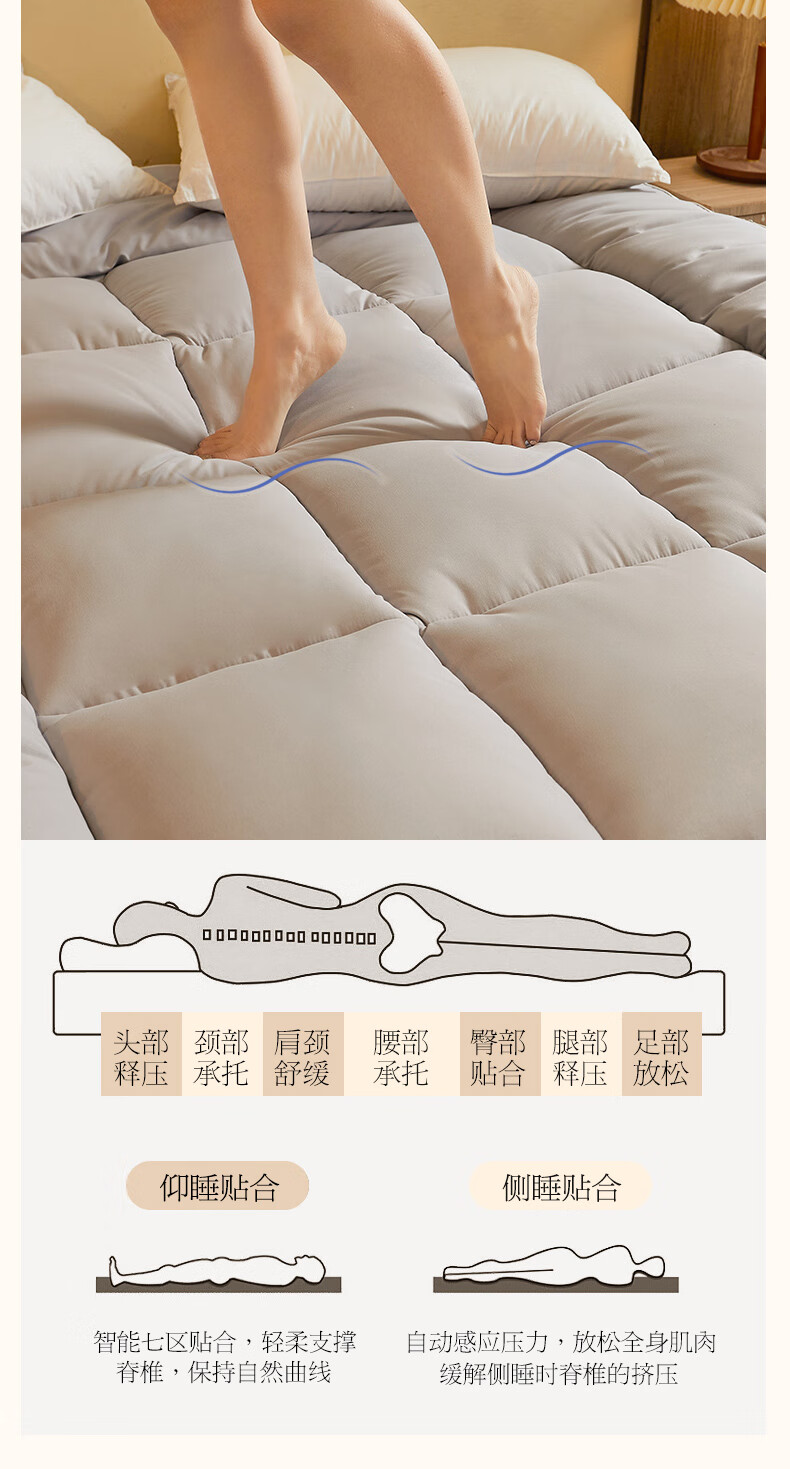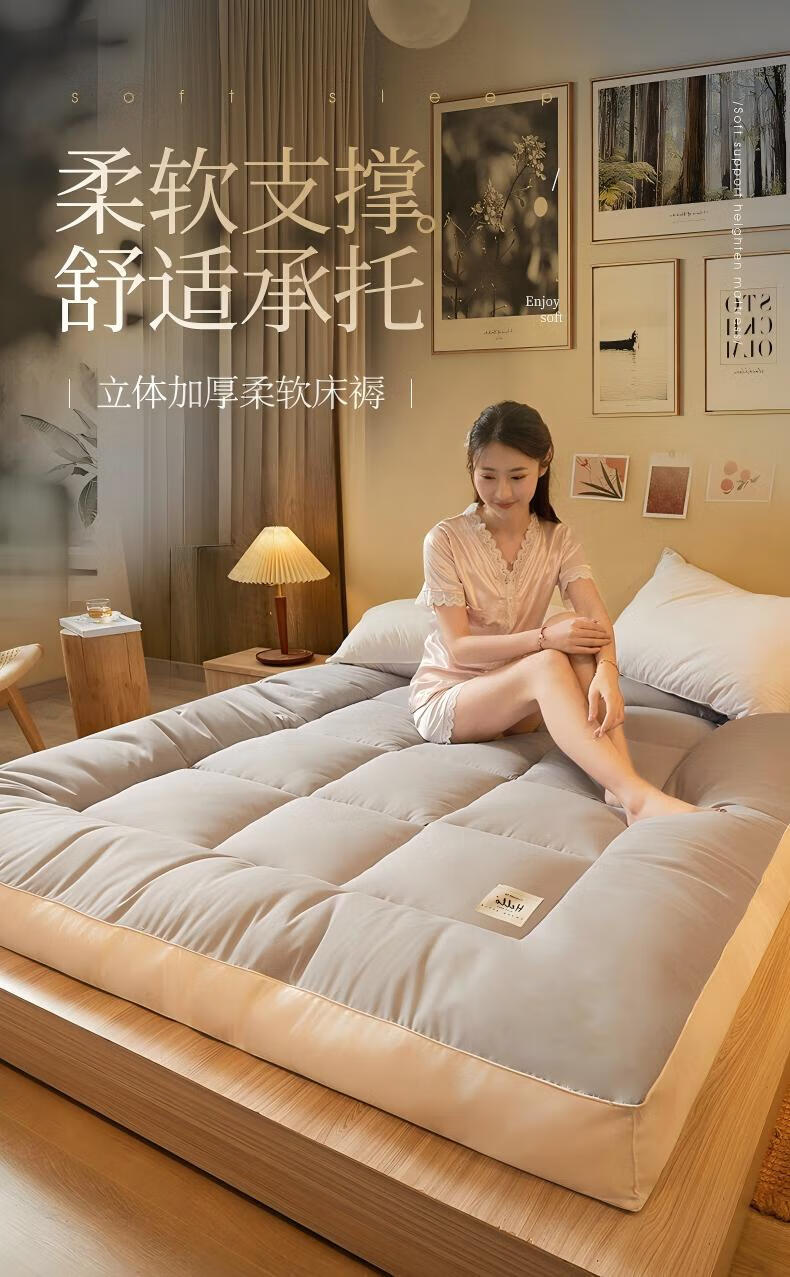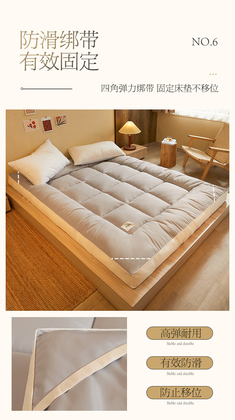 无印良品榻榻米床垫遮盖物床褥子双人学生宿舍家用垫被折叠被褥 白拼深灰【仿羊羔绒面料】 150*200cm