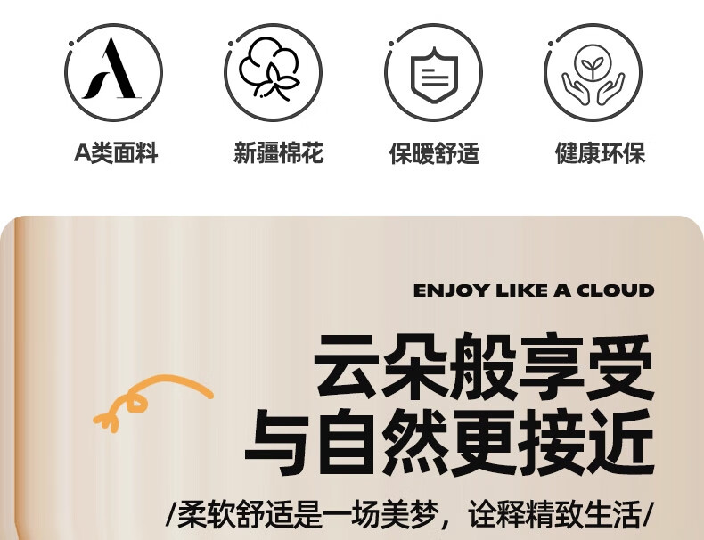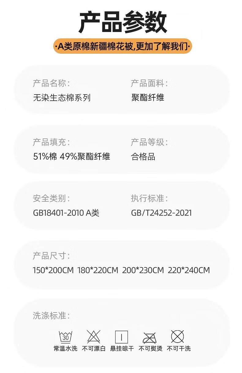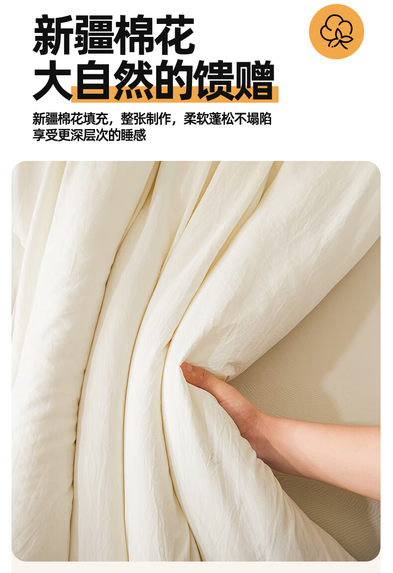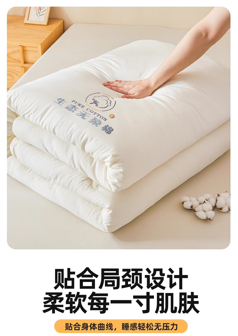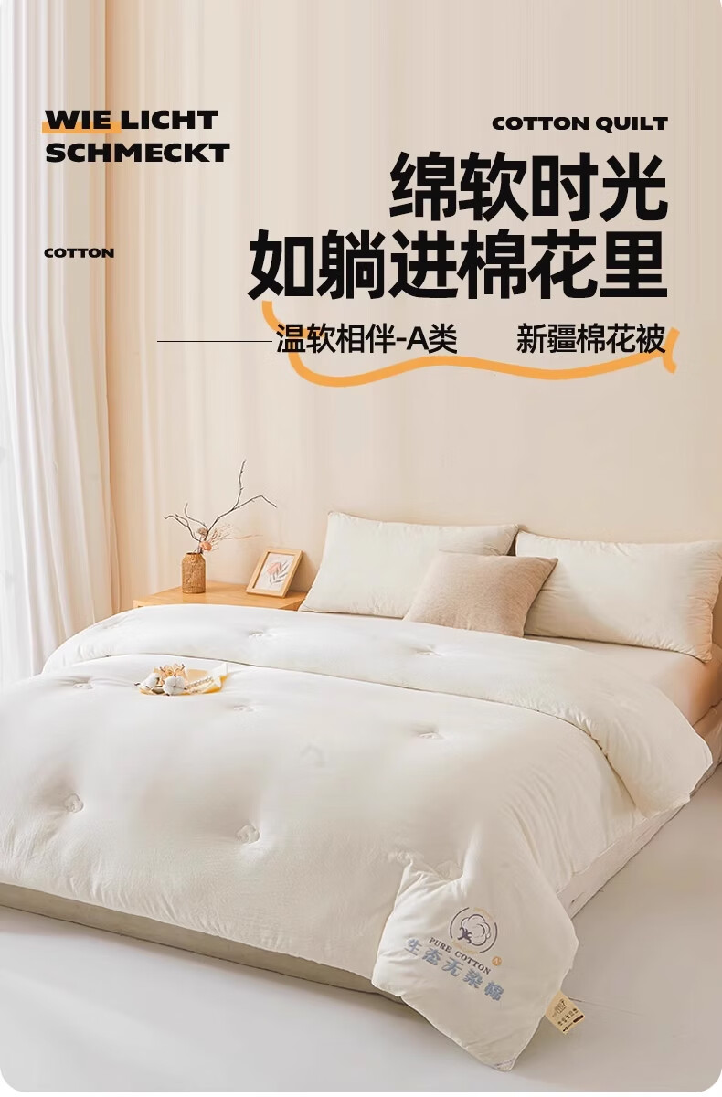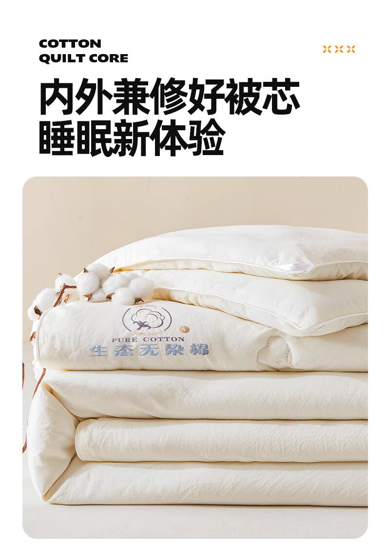 无印良品A类新疆棉花被子被芯冬被加厚保暖全棉纯棉春秋被四季通用 云暖-奶白【A类裸睡】 【春秋被】200*230cm约4斤
