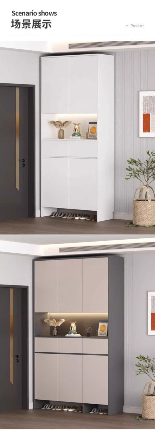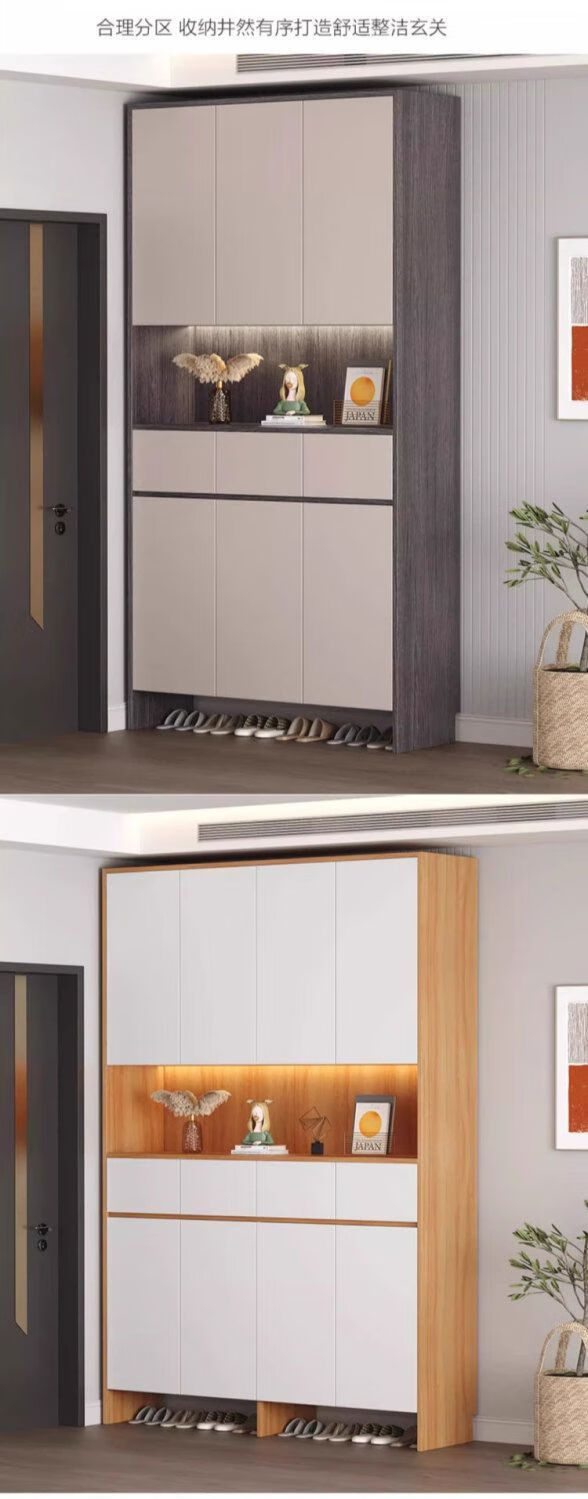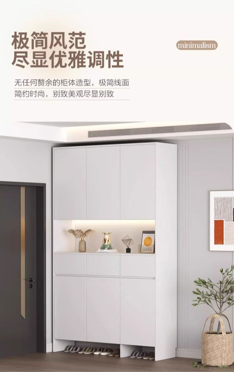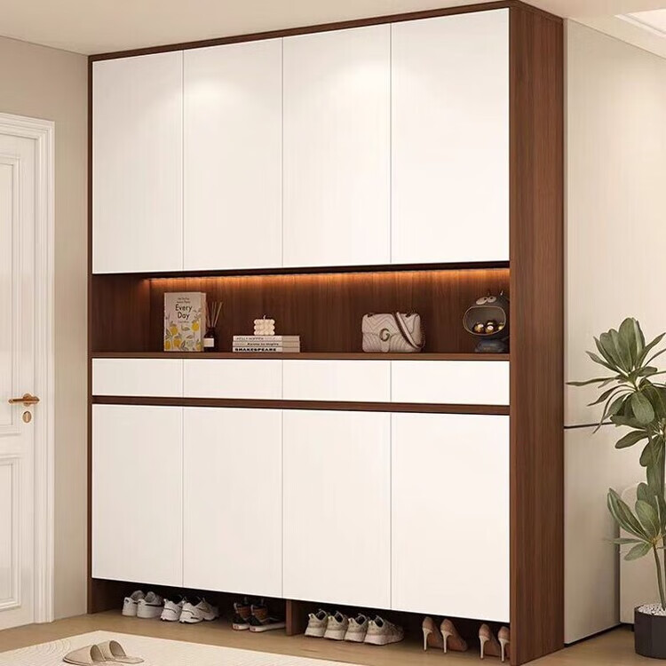 迈途森实木鞋柜入户门口鞋柜一体靠墙高鞋柜储物柜子走廊楼道入户玄关柜 暖白色-(全实木16mm板材)免费送装 80cm长*35cm深*220cm高两门