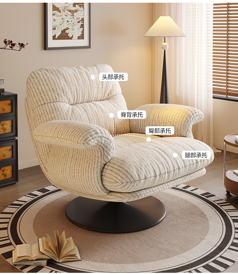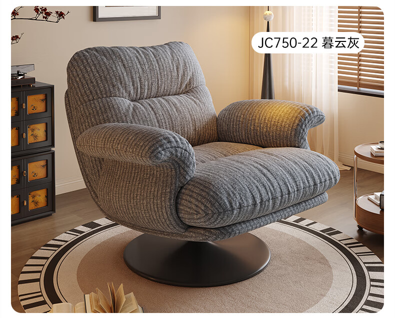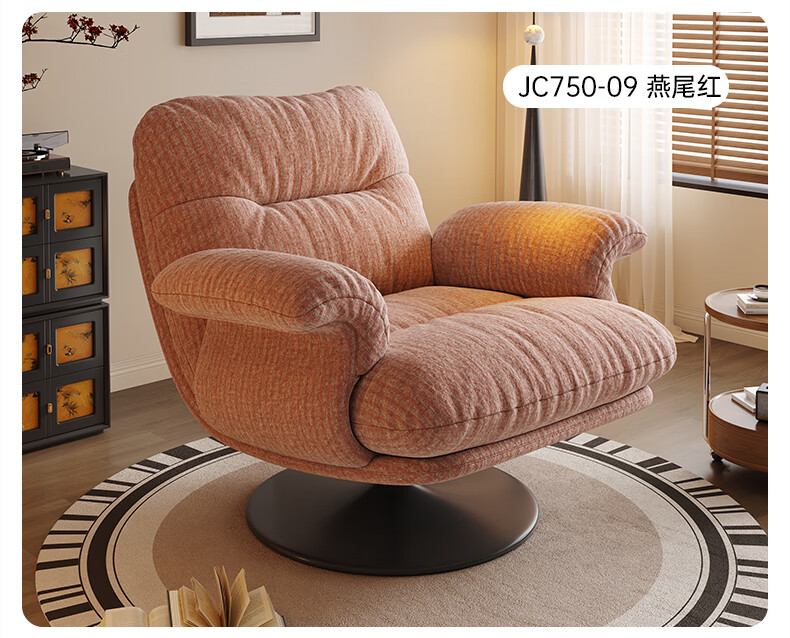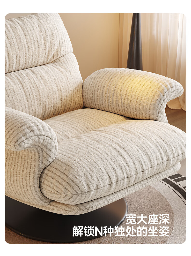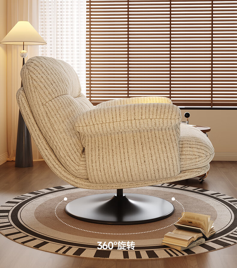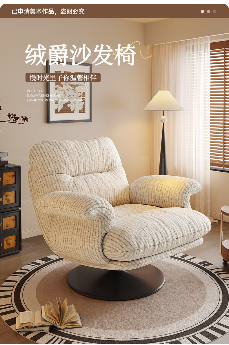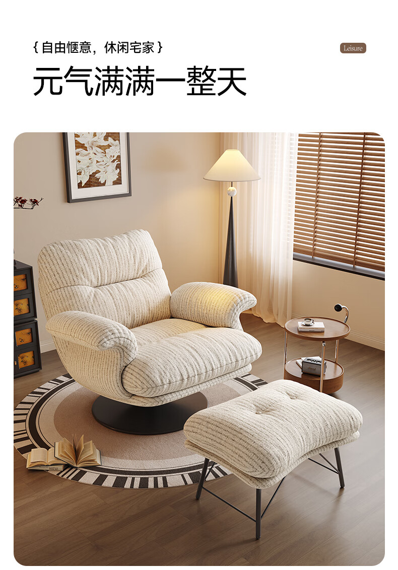 帕沙曼单人沙发客厅阳台中古风可旋转休闲椅家用懒人沙发雪尼尔2928XF 可旋转沙发椅+休闲脚踏 设计师新款