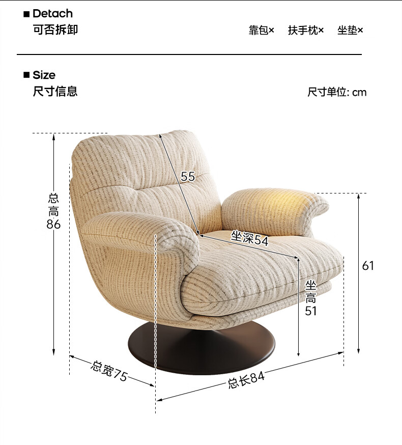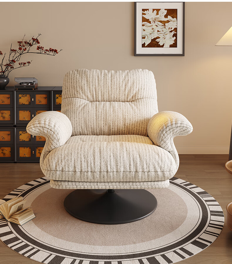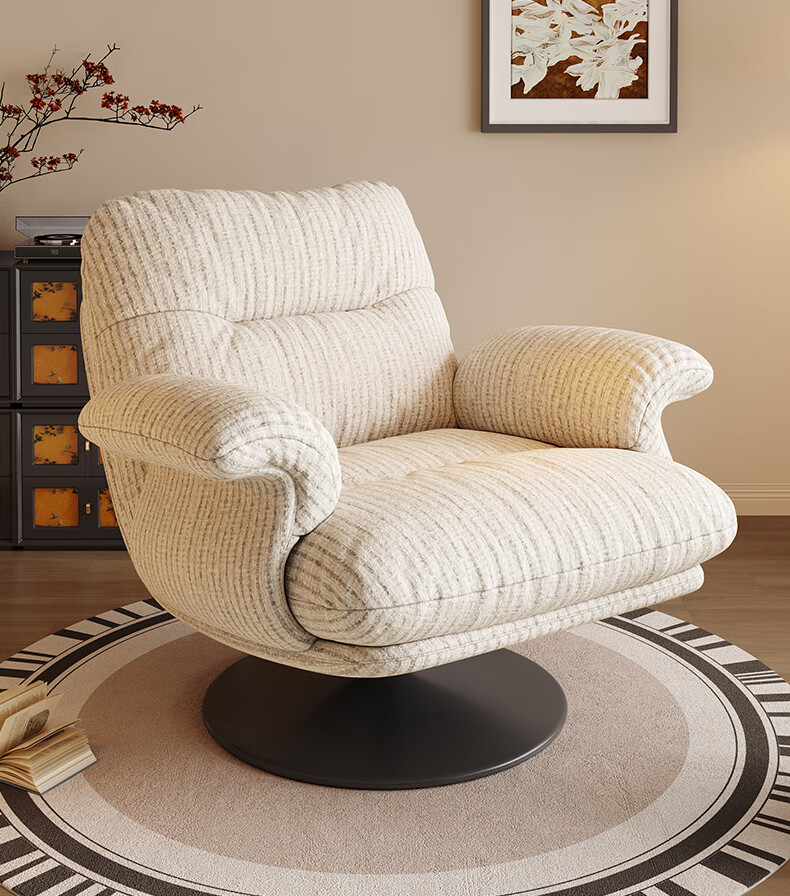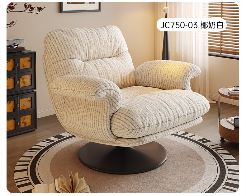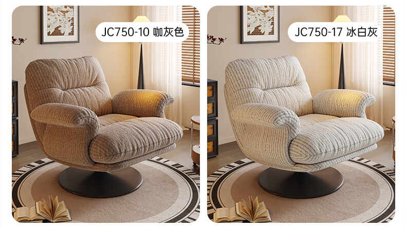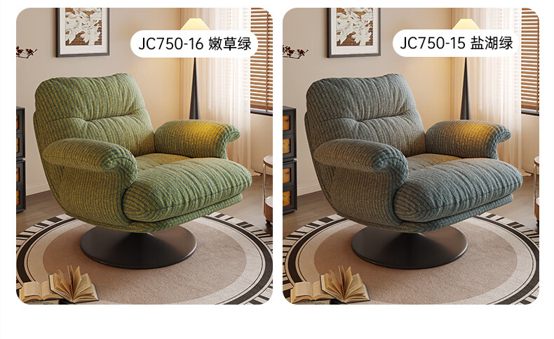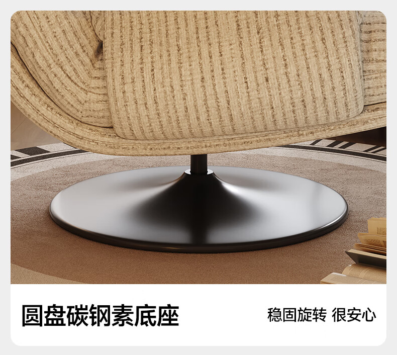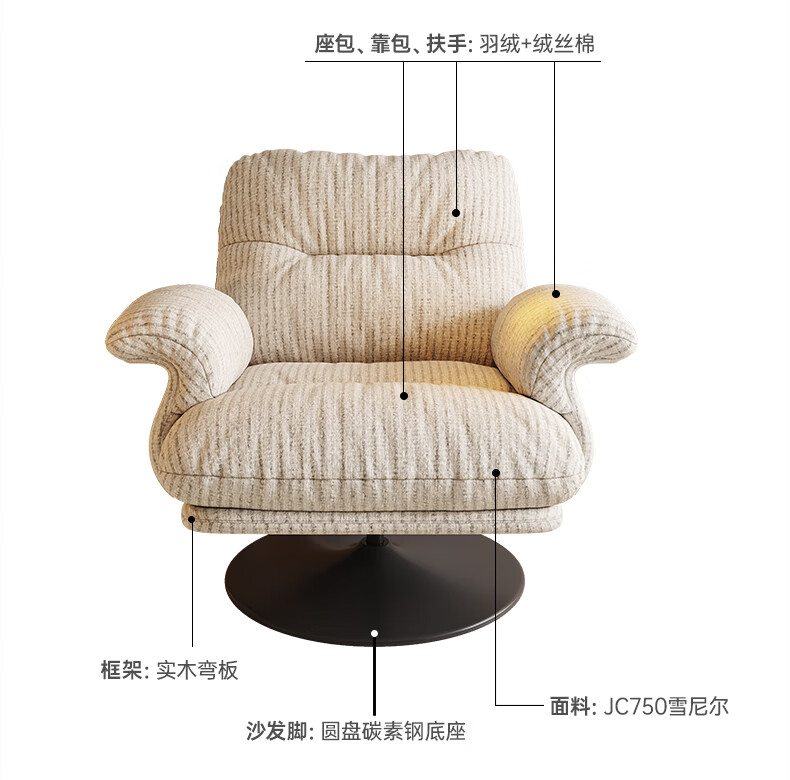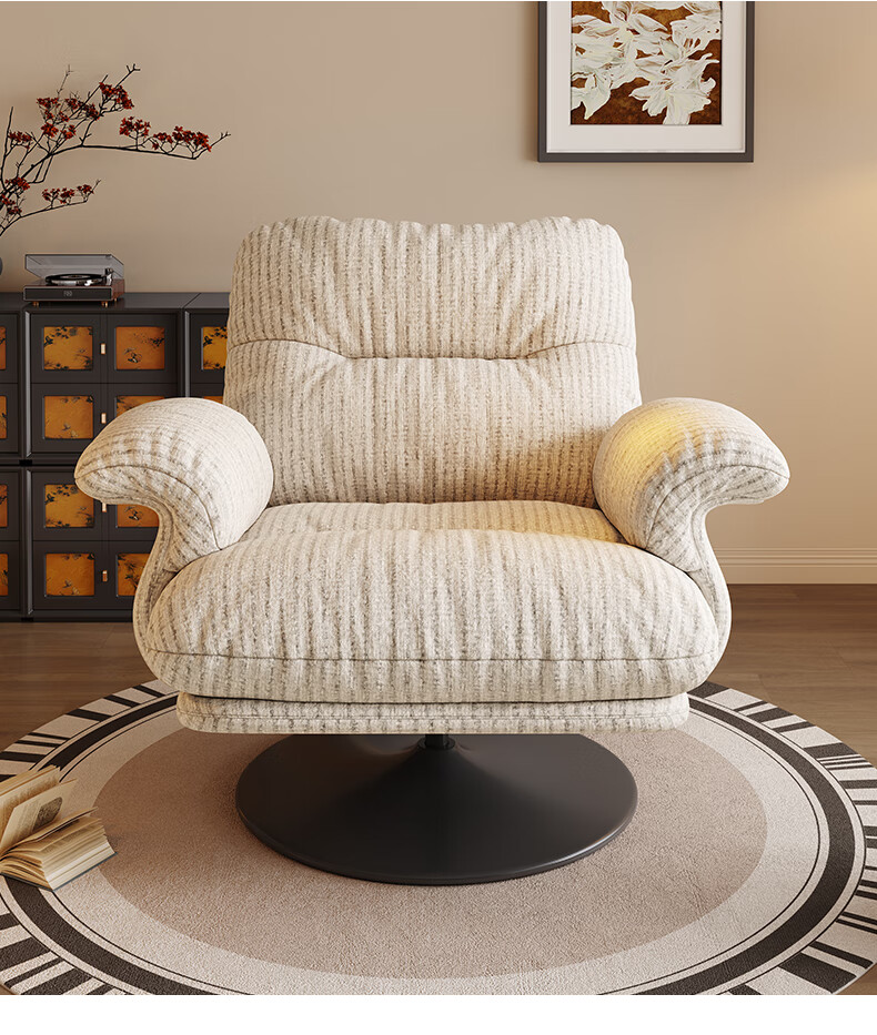 帕沙曼单人沙发客厅阳台中古风可旋转休闲椅家用懒人沙发雪尼尔2928XF 可旋转沙发椅+休闲脚踏 设计师新款