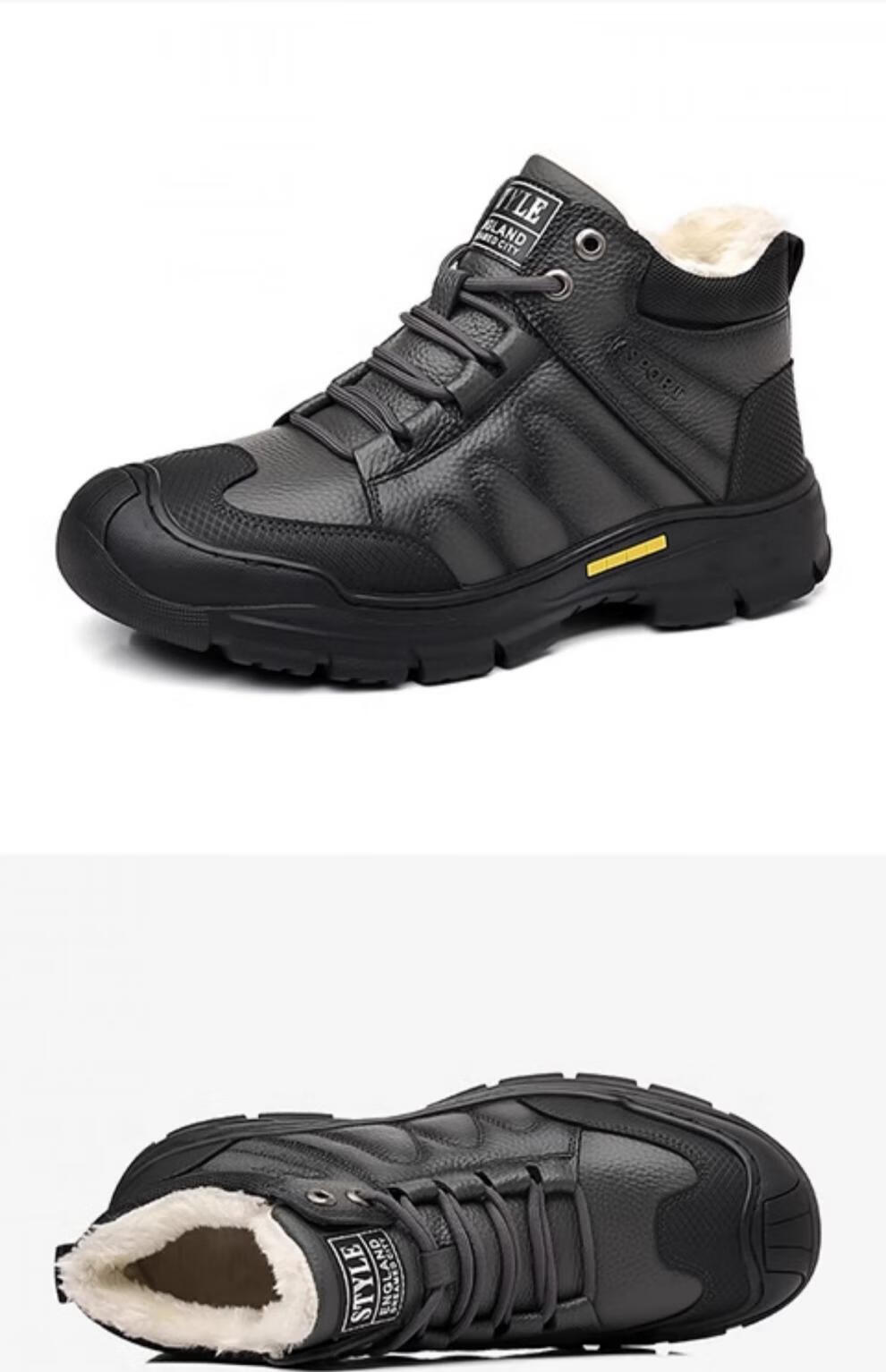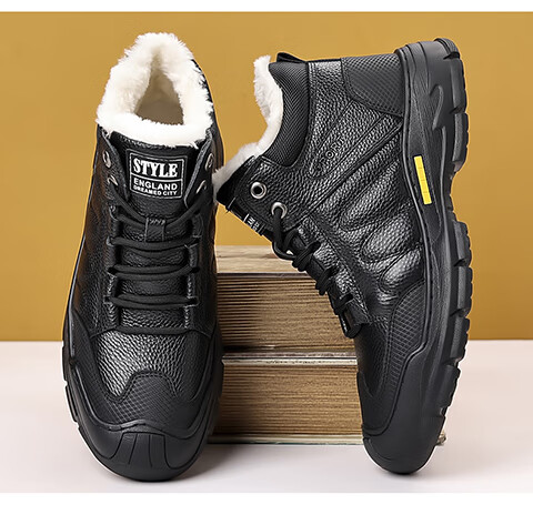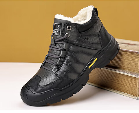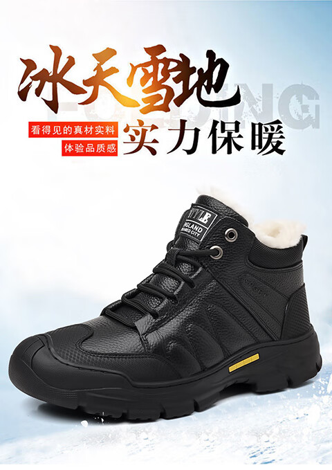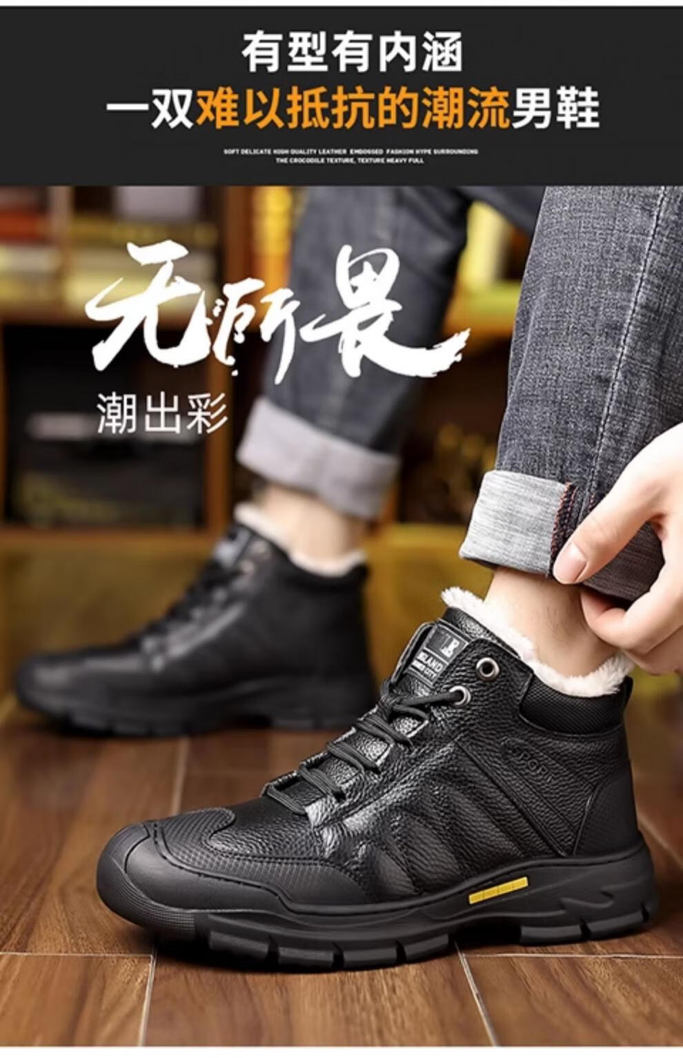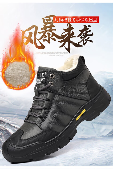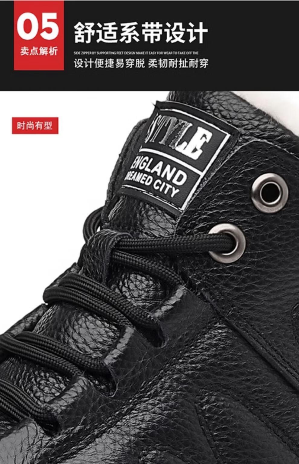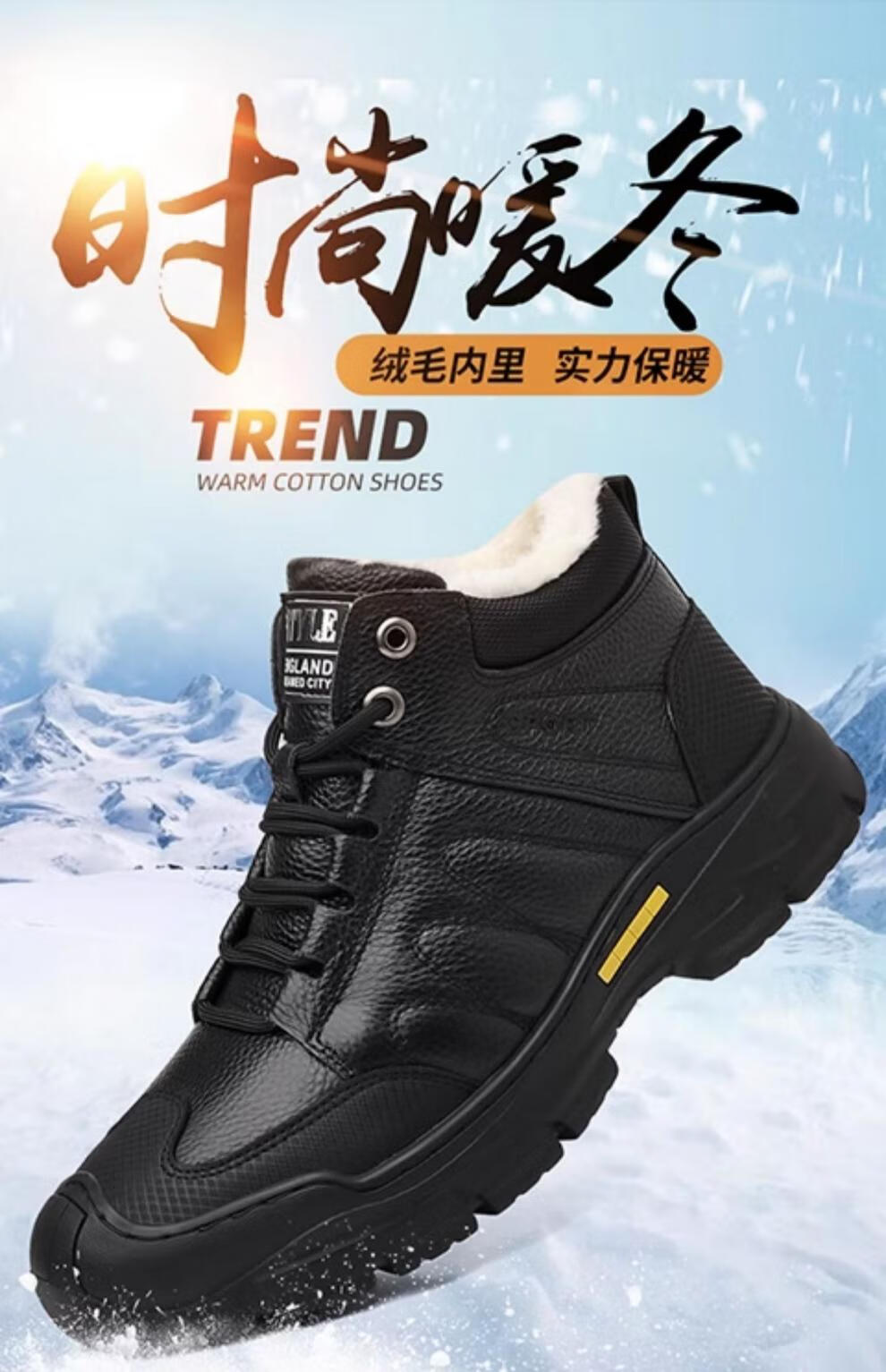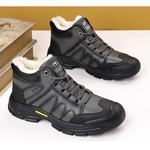 稻草人(MEXICAN)棉鞋男冬季新款头层牛皮高帮休闲皮鞋真皮羊毛加绒保暖东北雪地靴 灰色 39