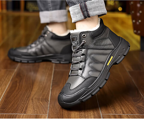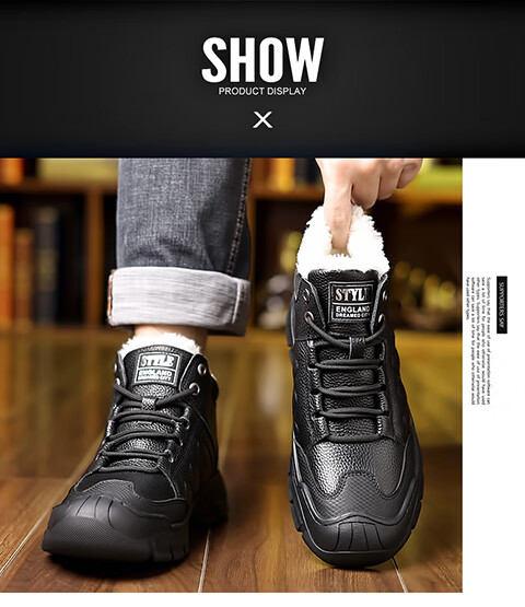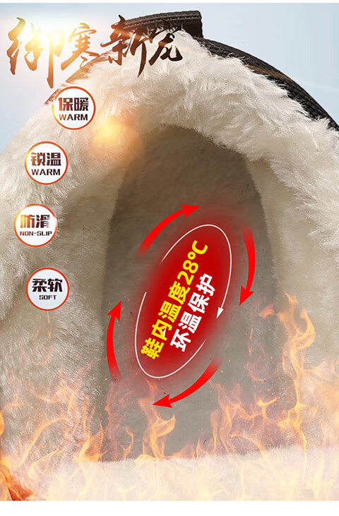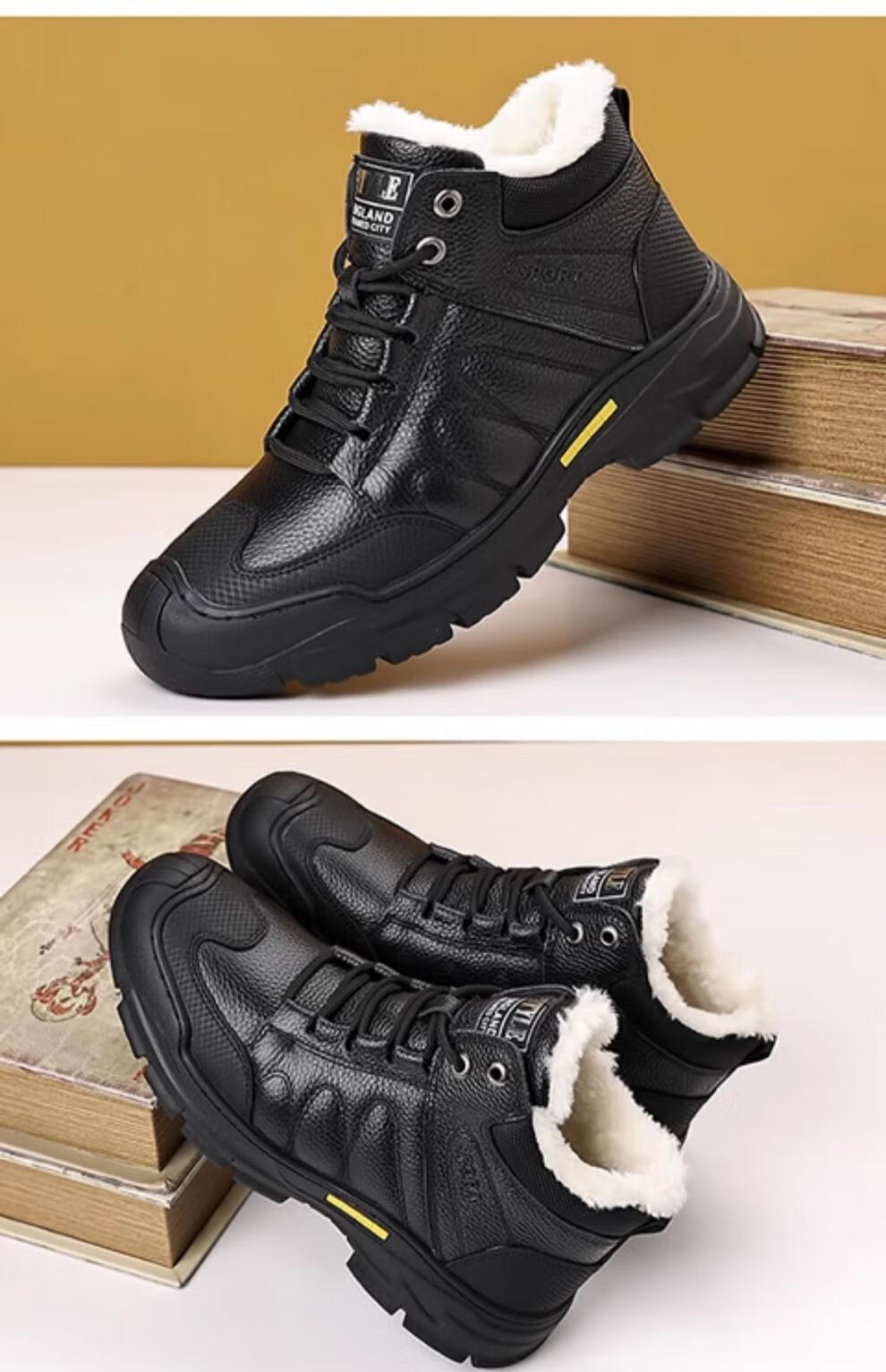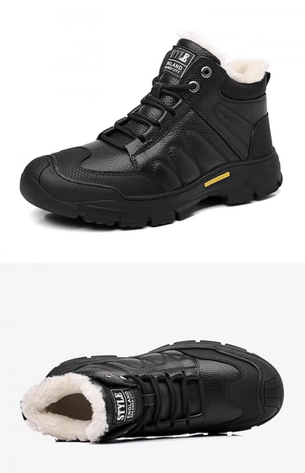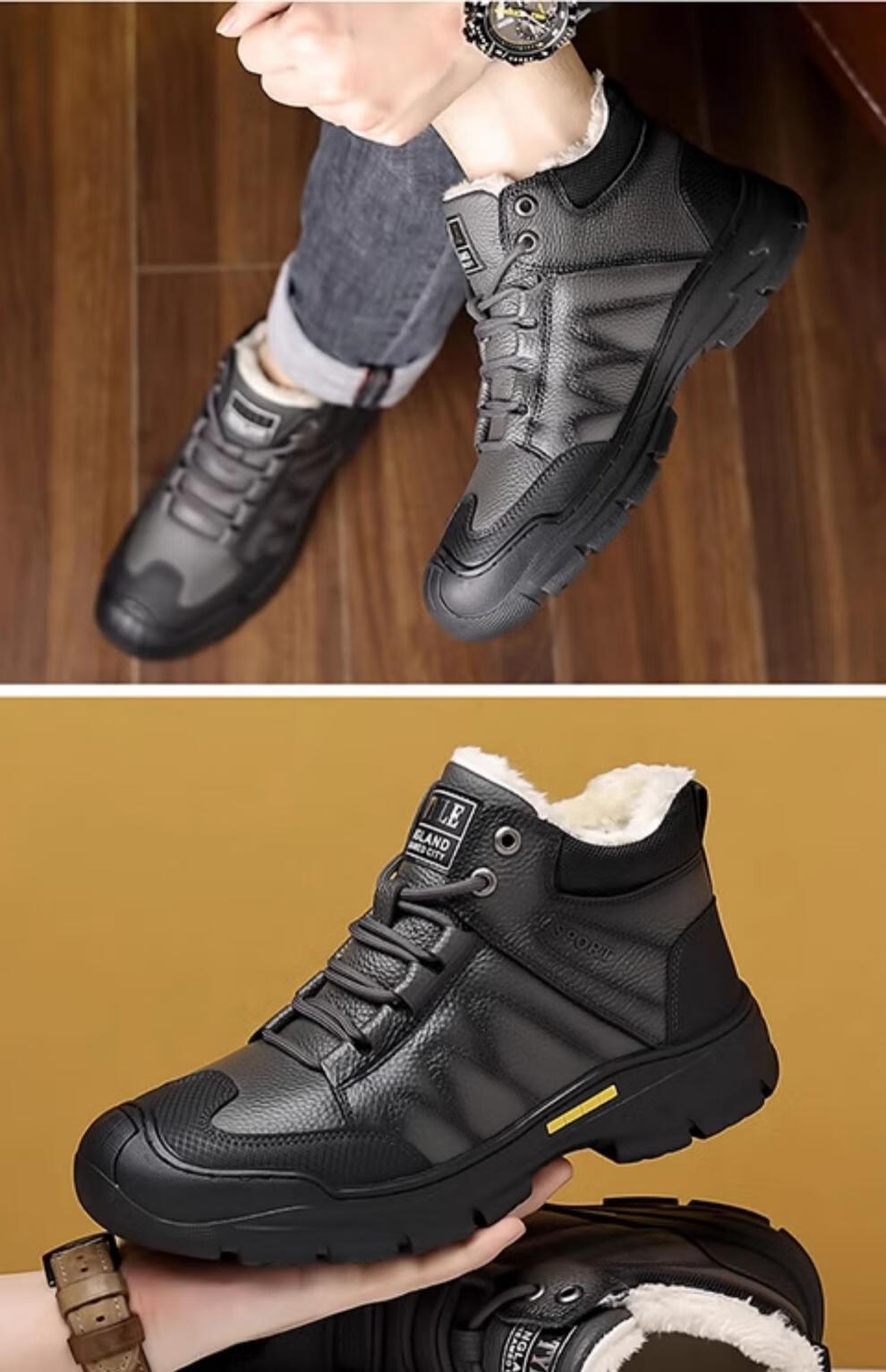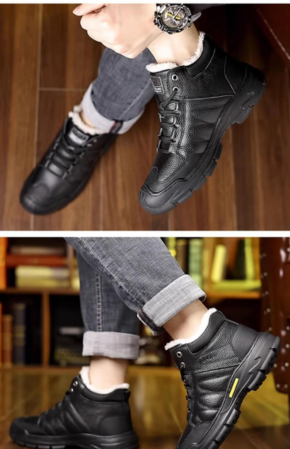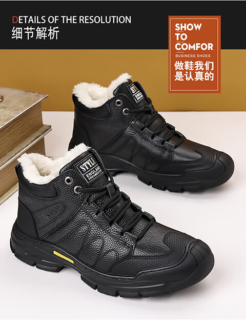 稻草人(MEXICAN)棉鞋男冬季新款头层牛皮高帮休闲皮鞋真皮羊毛加绒保暖东北雪地靴 灰色 39