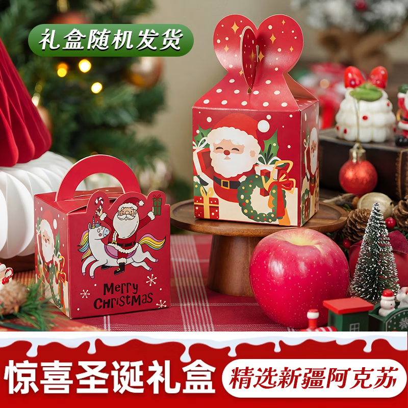 新疆阿克苏冰糖心苹果平安果礼盒直采新鲜大果送情侣浪漫圣诞礼物 圣诞礼盒平安果*2【单果80mm+】