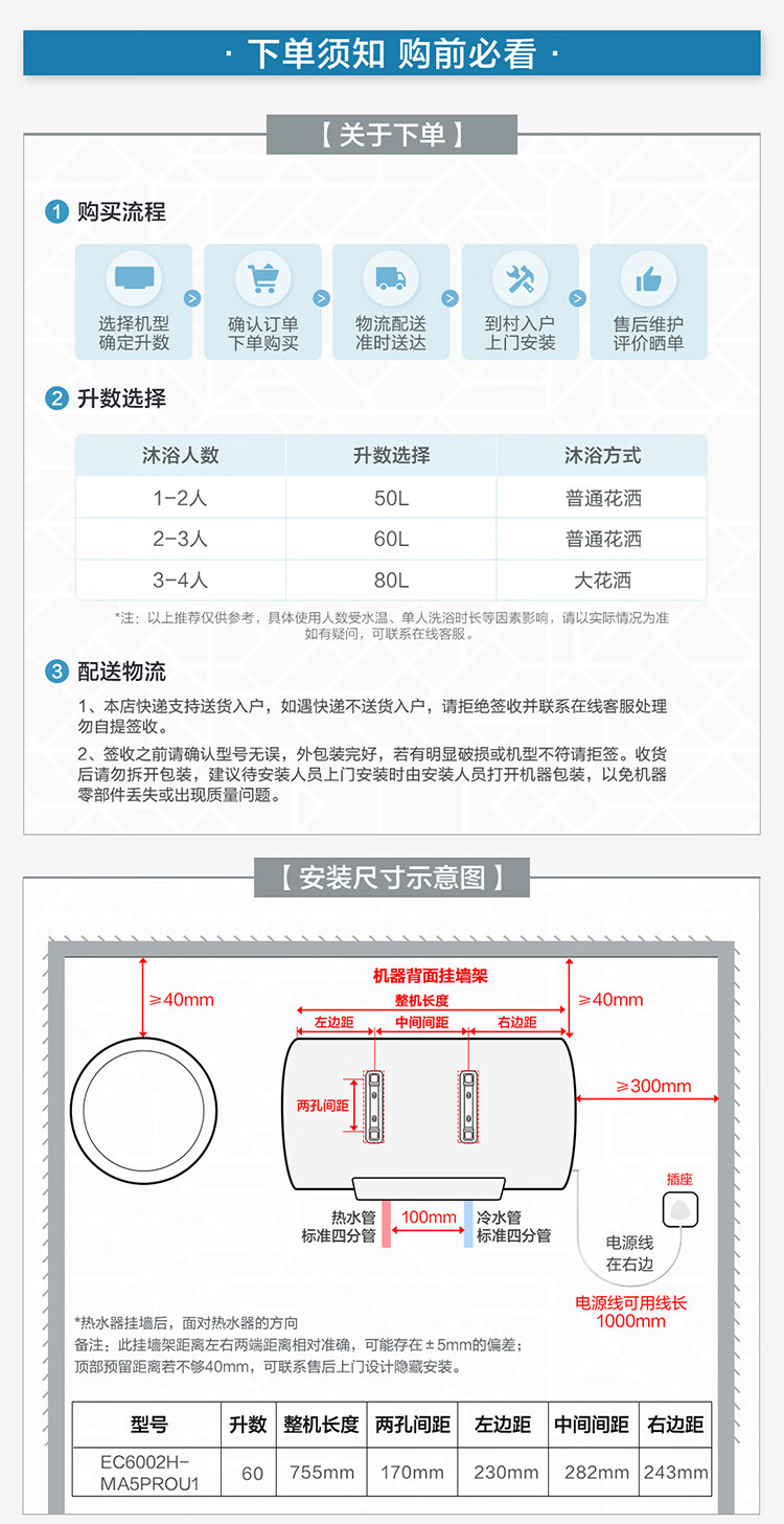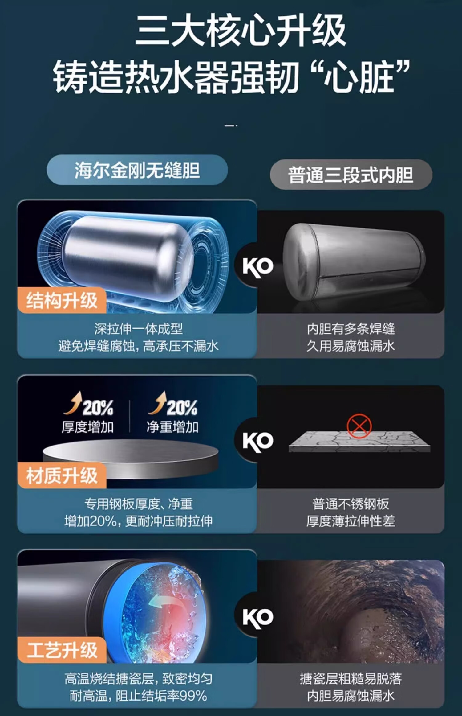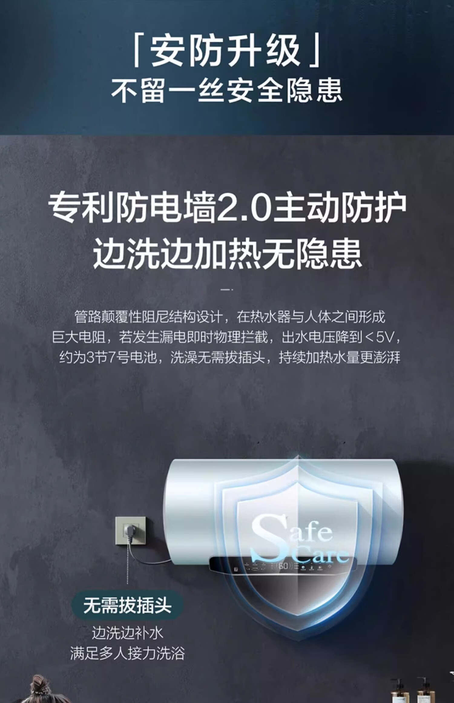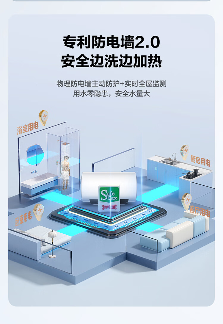海尔(Haier)【咨询立省20%】电热水器60升热水器镁棒免更换超省电MA5/MA5PRO家用储水式超一级能效智能变频 60L 3300W 【出水断电+防电墙】MA5PRO