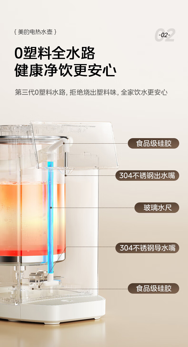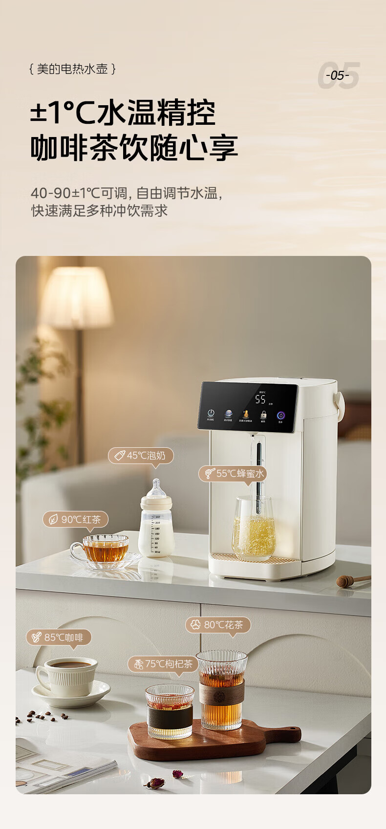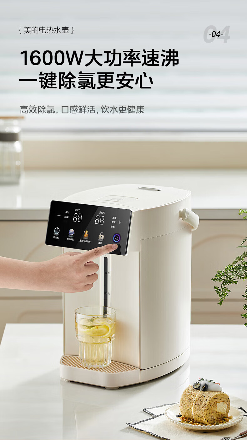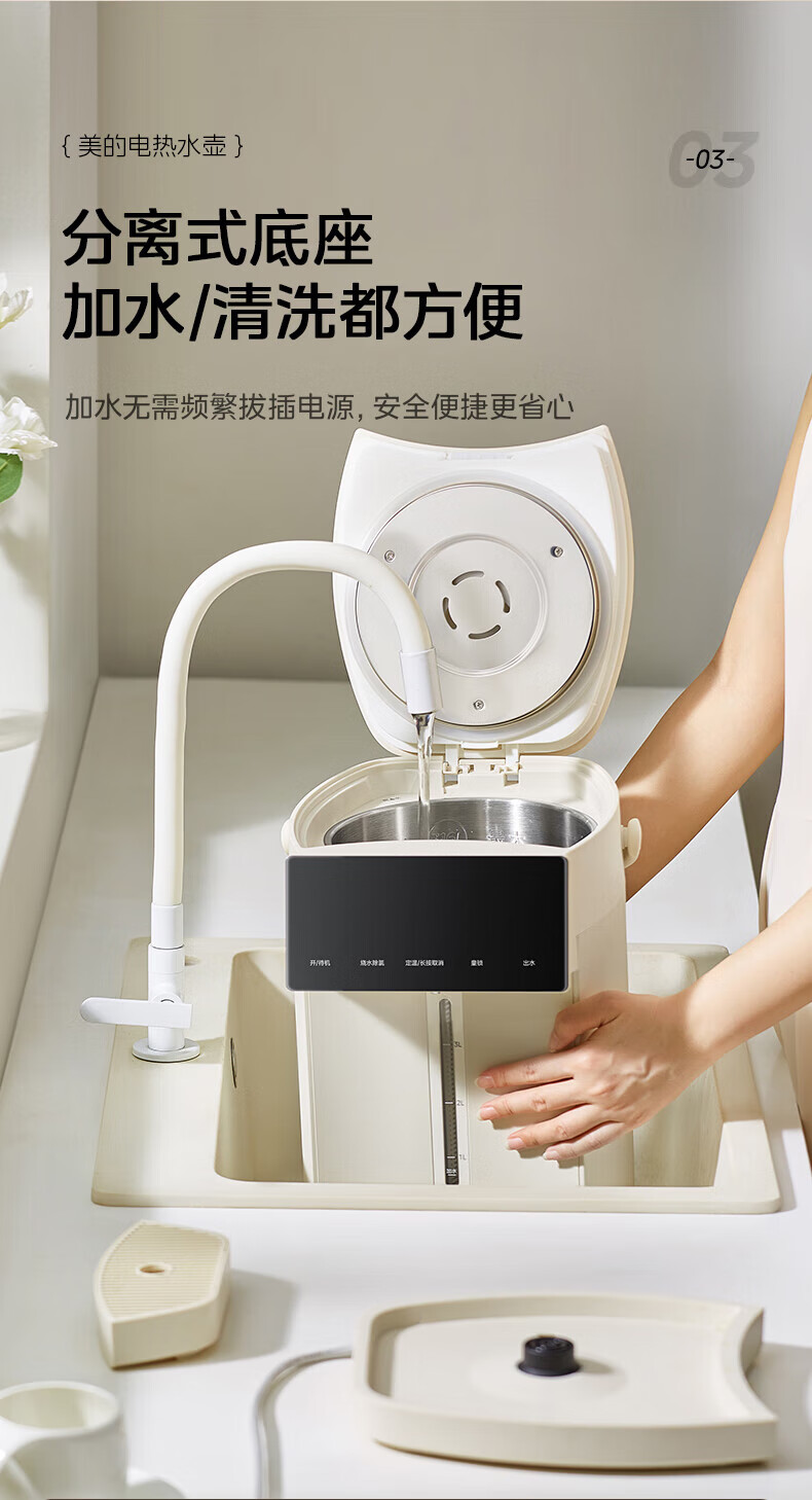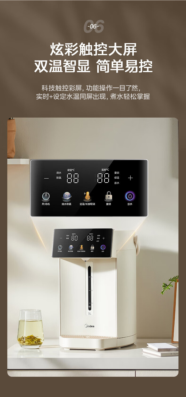 美的(Midea)电热水瓶 5L大容量家用电热水壶 健康0塑料水路饮水机 多段控温烧水壶 速沸除氯 可拆分离式底座 5L 【0塑料水路】SP50E-30Wpro