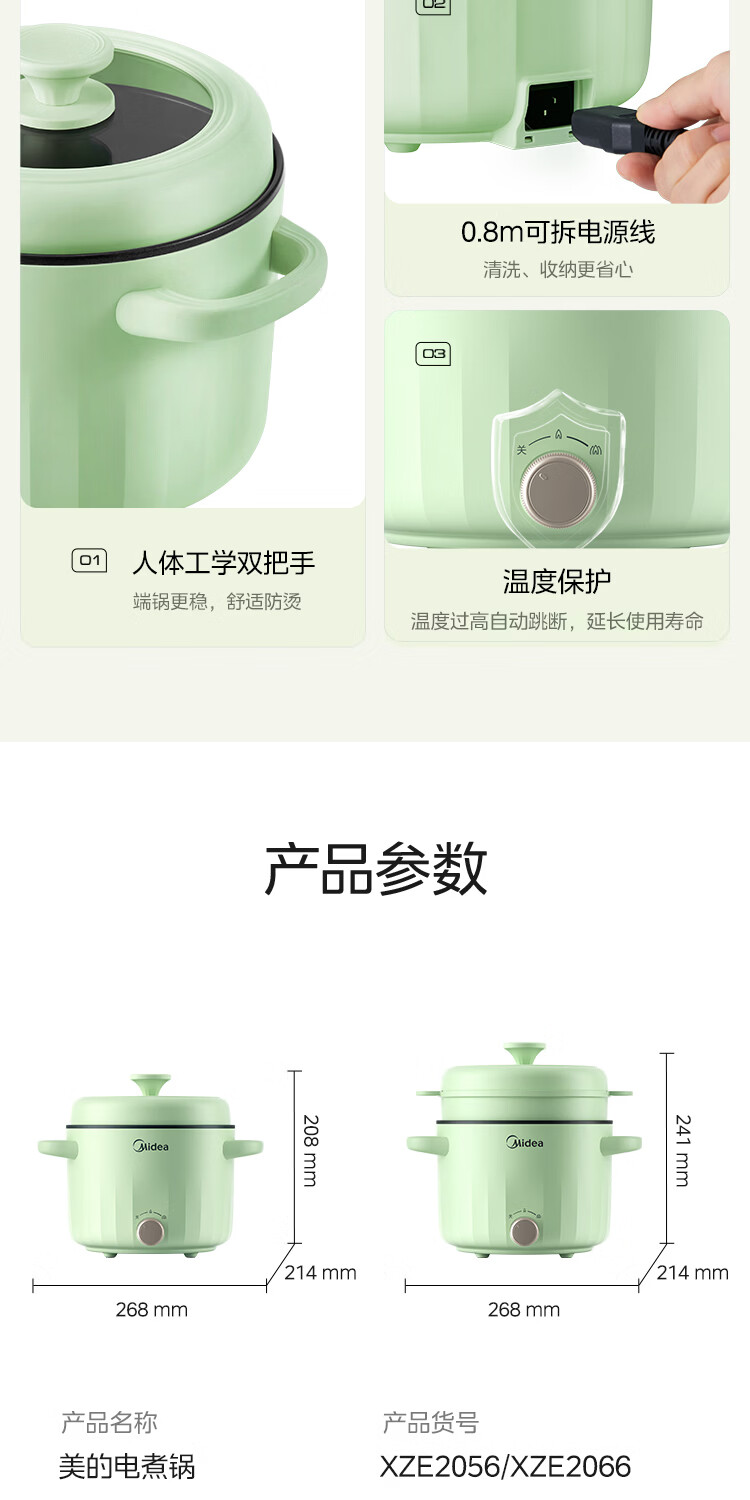 美的(Midea)电煮锅 宿舍小电锅 电蒸锅 多功能家用宿舍泡面小火锅 蒸煮一体电热锅2.6L多功能锅XZE2066 配蒸笼