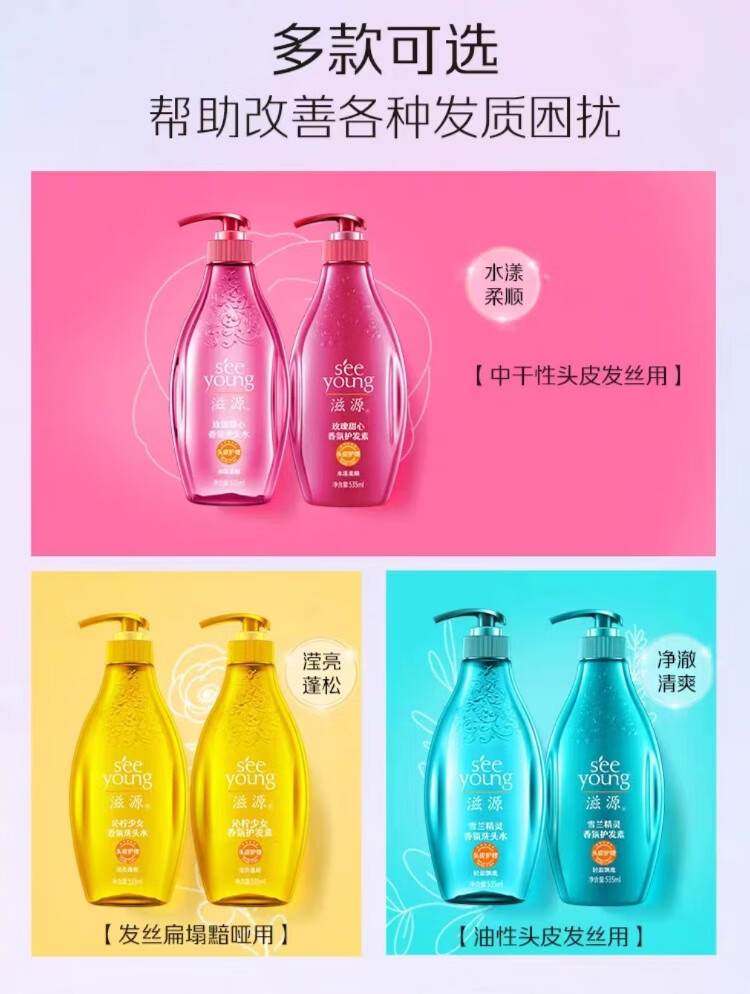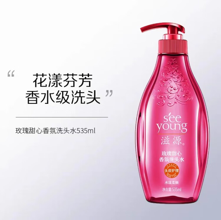 滋源洗发水茶树无患子控油清屑樱花修复香氛玫瑰柔顺修护无硅油精 535ml玫瑰甜心香氛水漾柔顺新包装